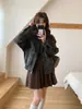 [Bencu] Chaqueta Retro Holgada Estilo Granja 25 Colores de Invierno Bloques de Color Solapa Cuadros Abrigo Corto de Lana para Mujer