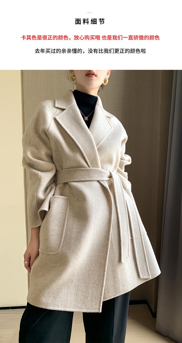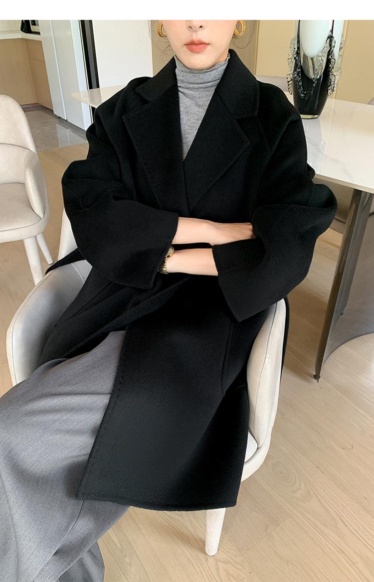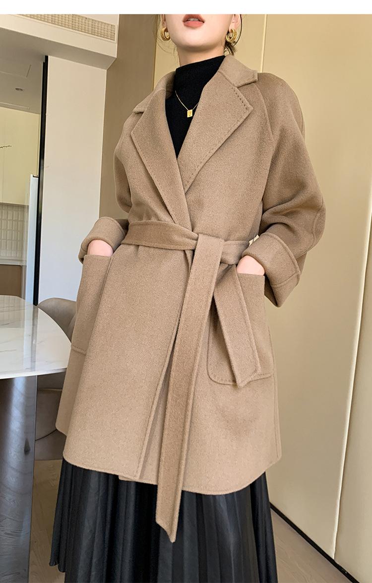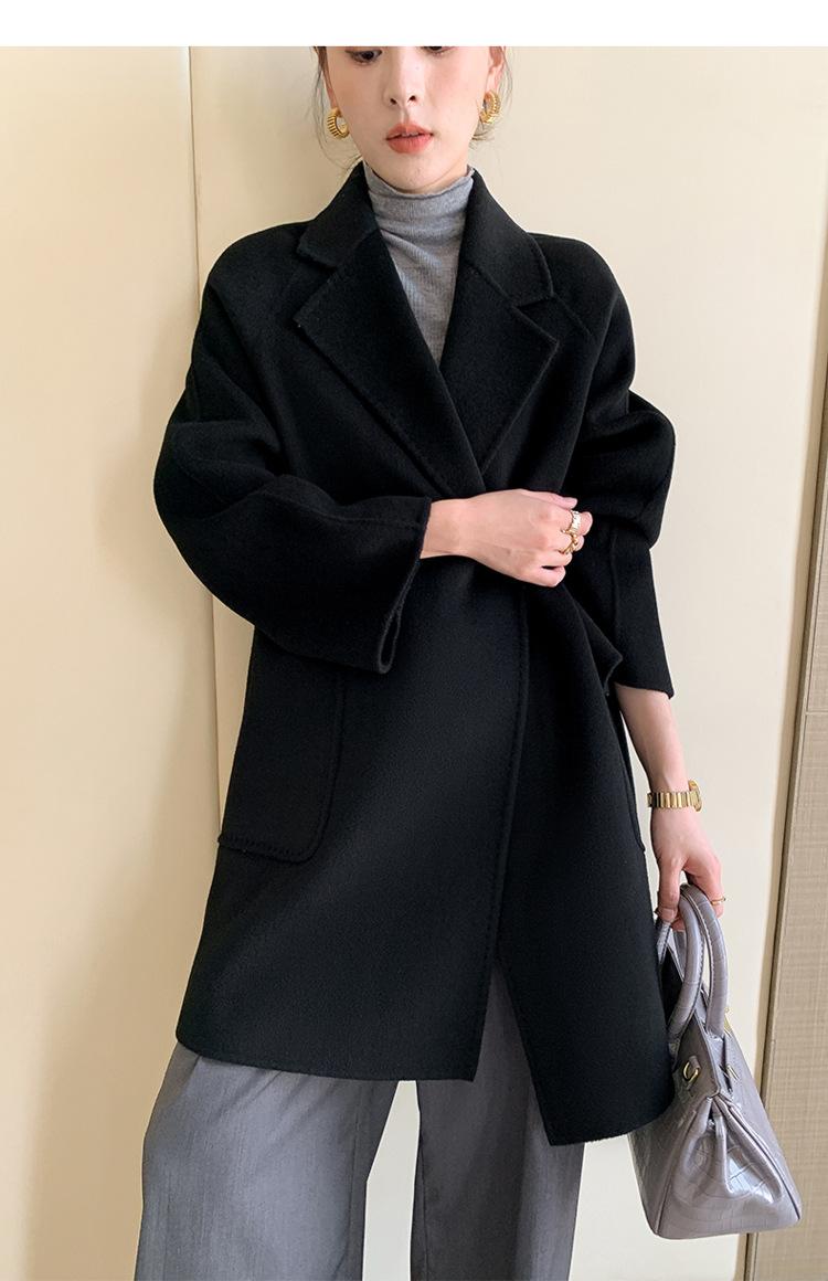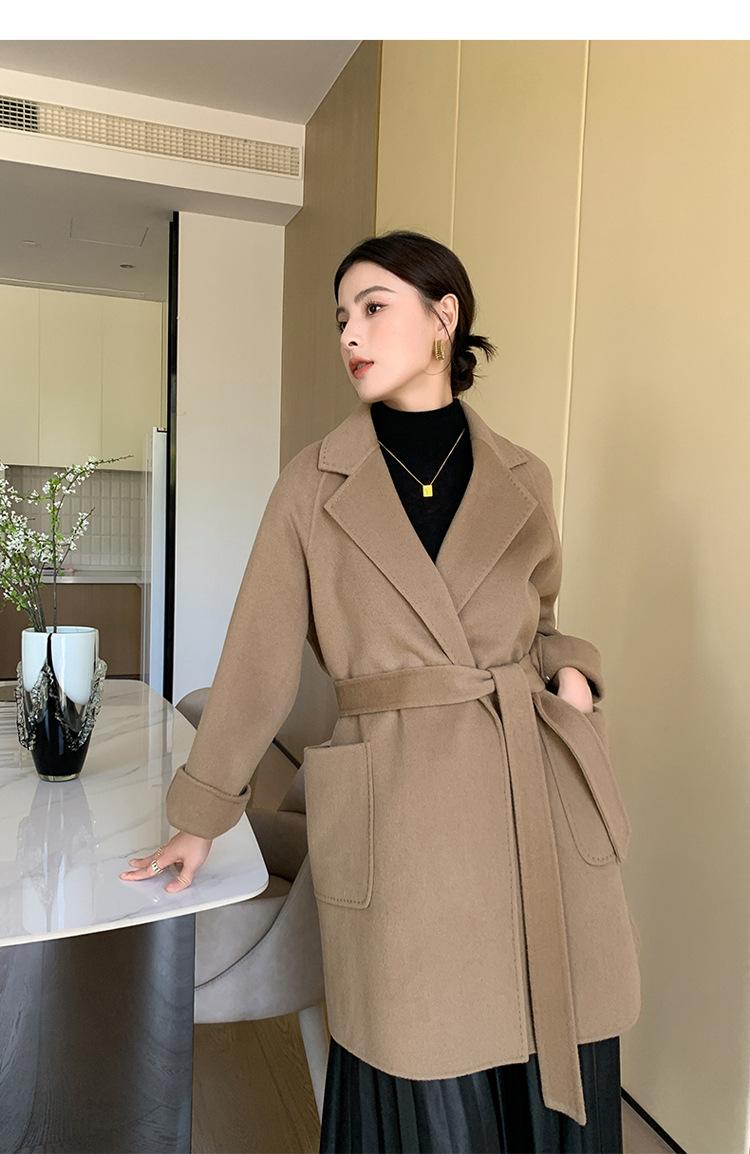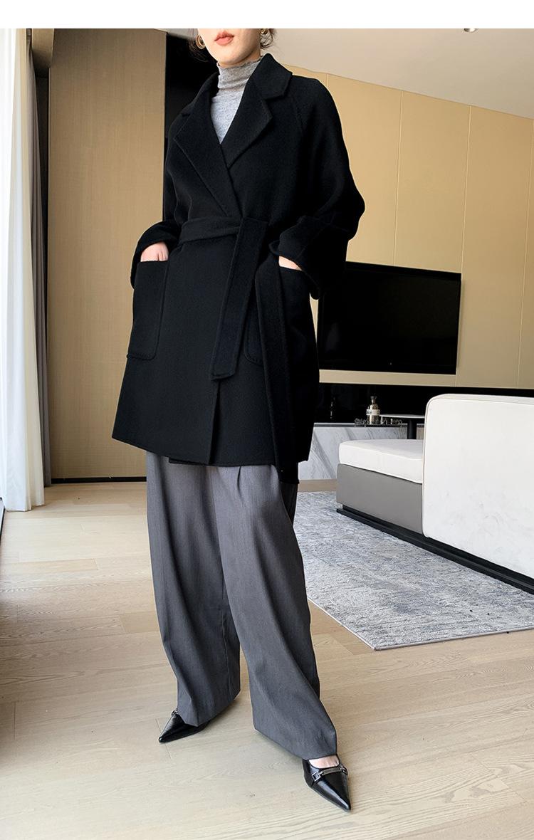 Abrigo de lana de doble cara de alta gama para mujer, otoño e invierno, nuevo, holgado, de longitud media, con cordones, 100% lana, abrigo de lana de moda