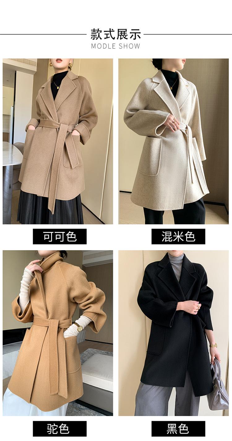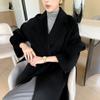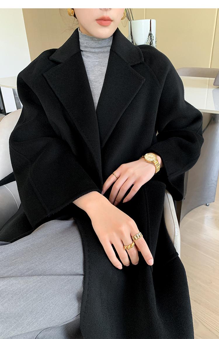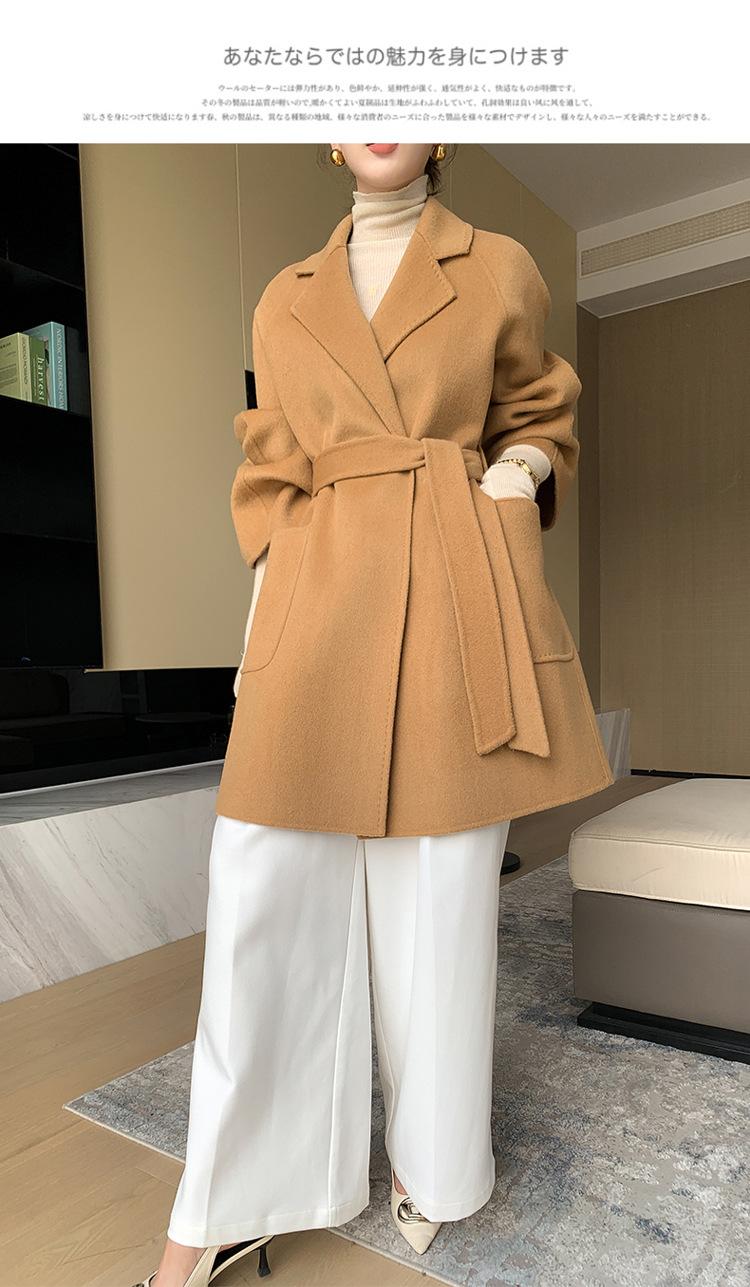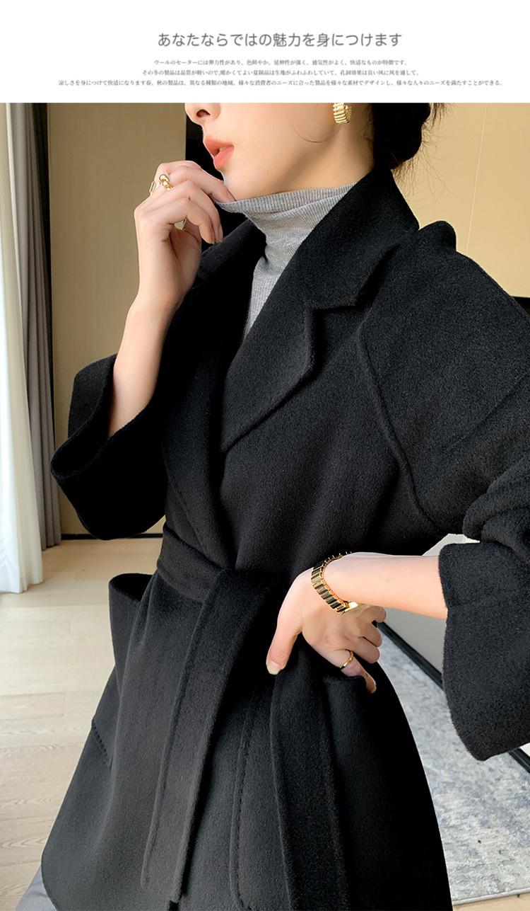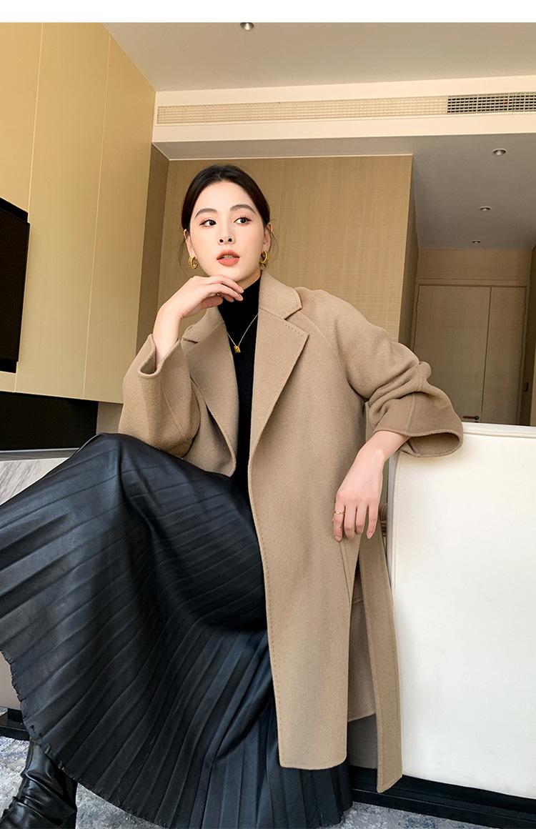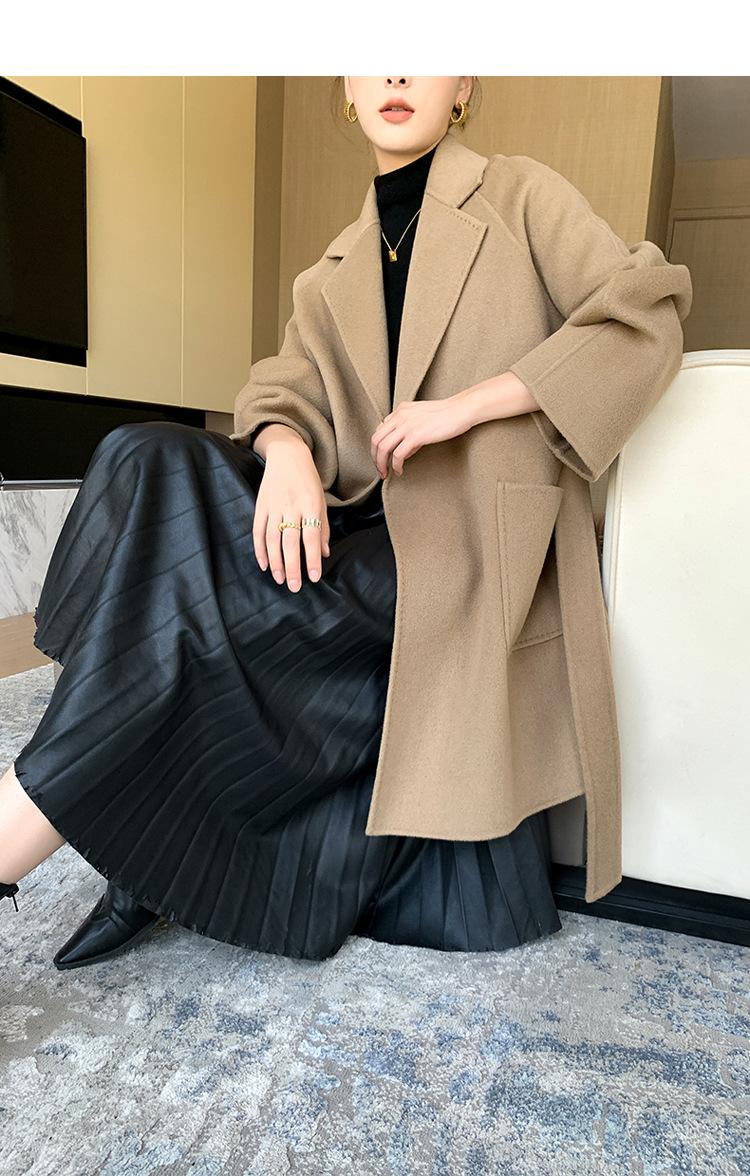 Abrigo de lana de doble cara de alta gama para mujer, otoño e invierno, nuevo, holgado, de longitud media, con cordones, 100% lana, abrigo de lana de moda