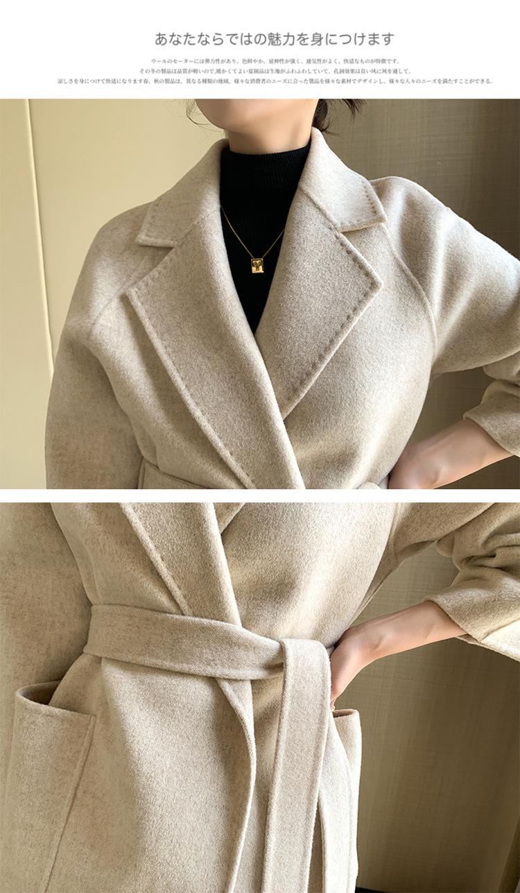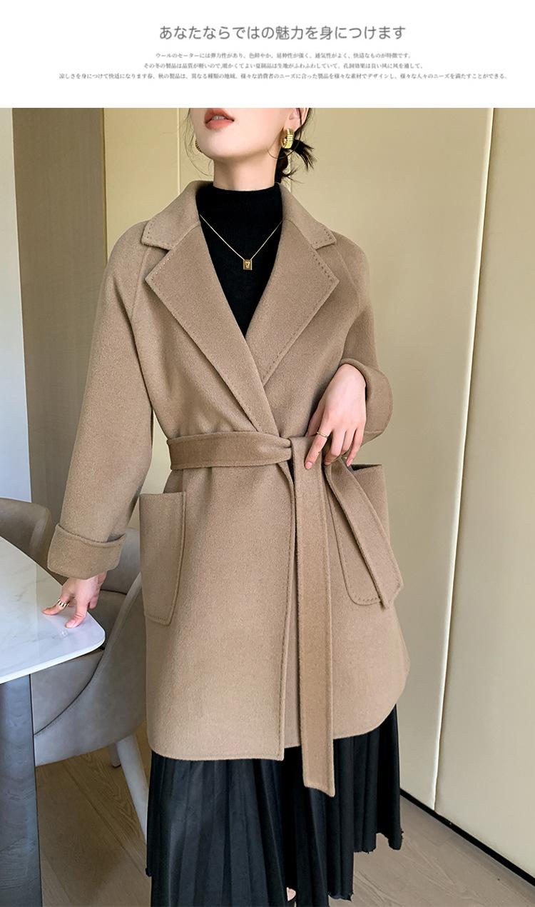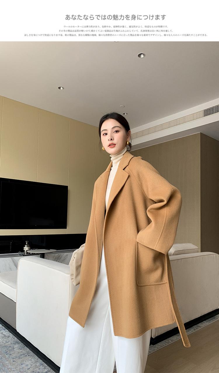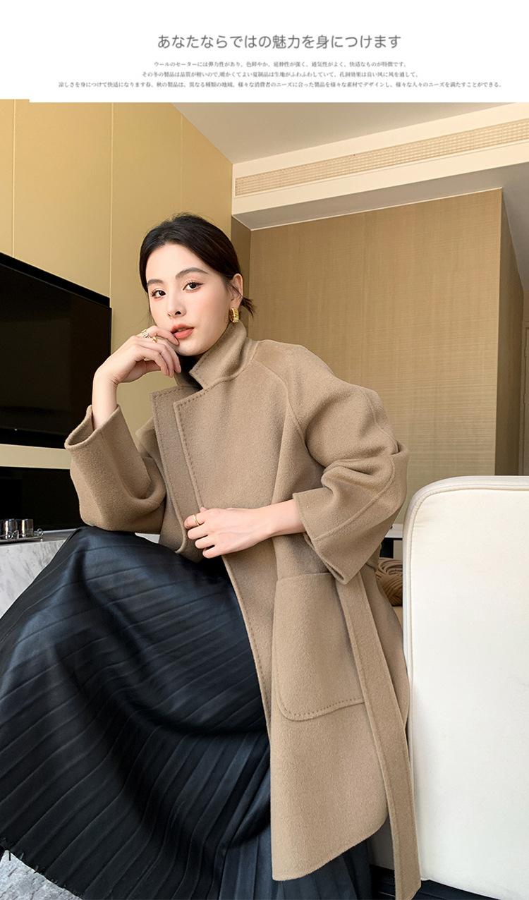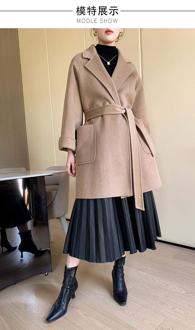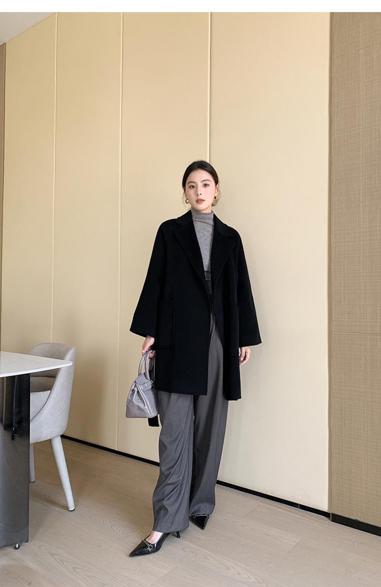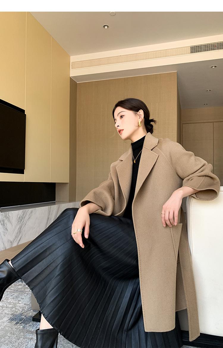 Abrigo de lana de doble cara de alta gama para mujer, otoño e invierno, nuevo, holgado, de longitud media, con cordones, 100% lana, abrigo de lana de moda