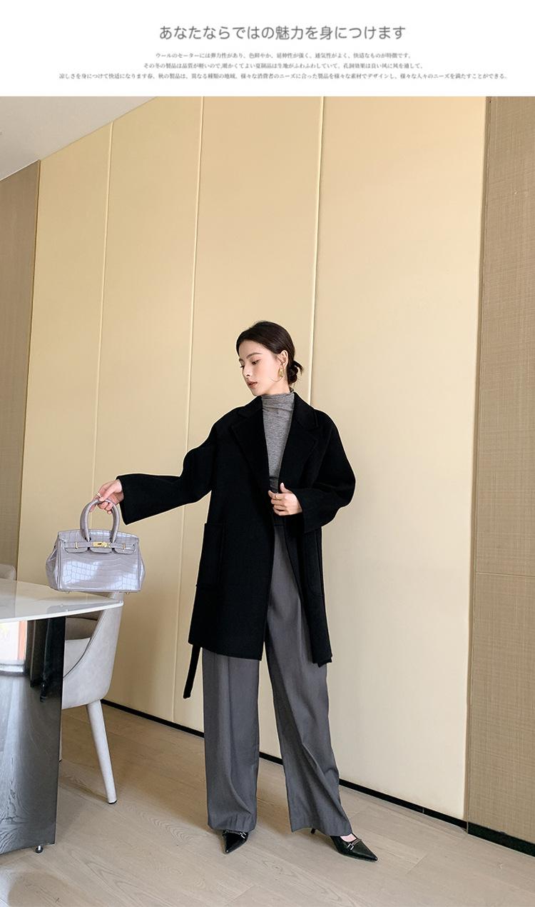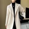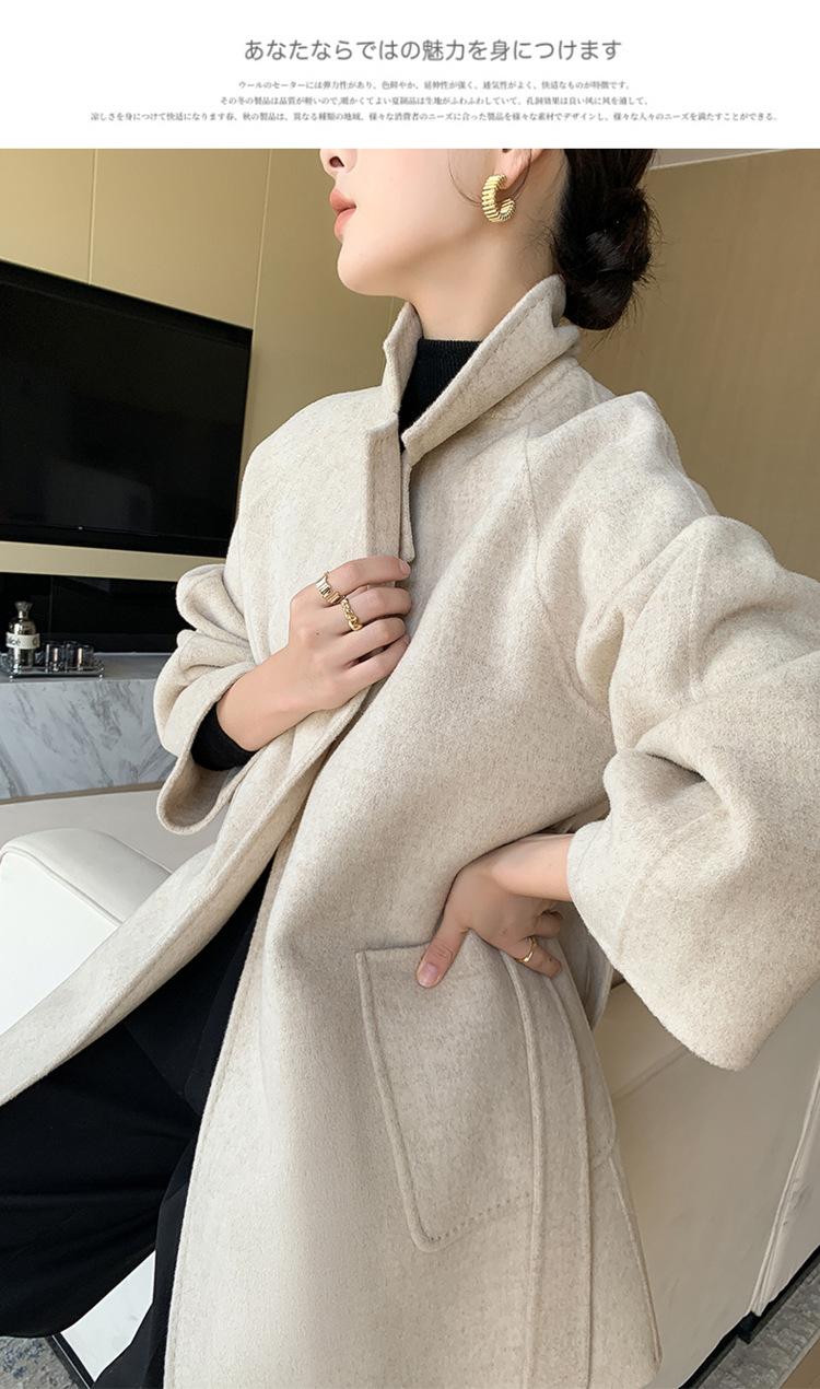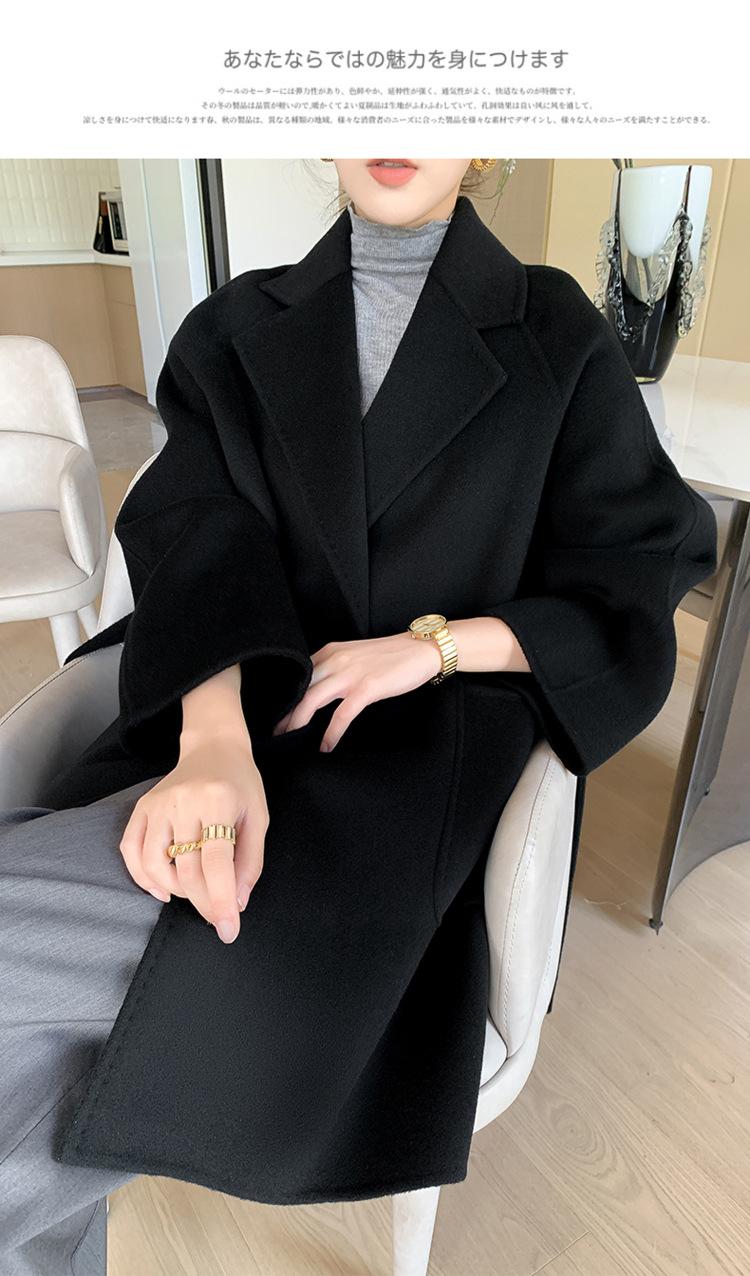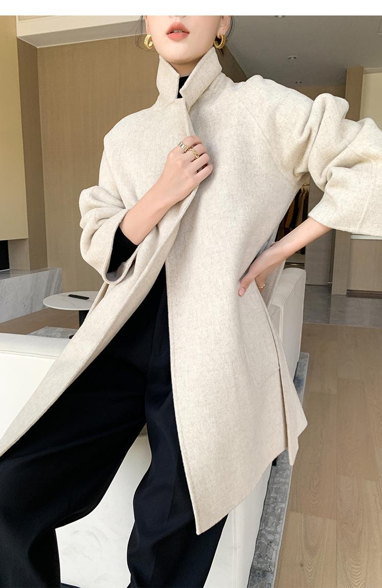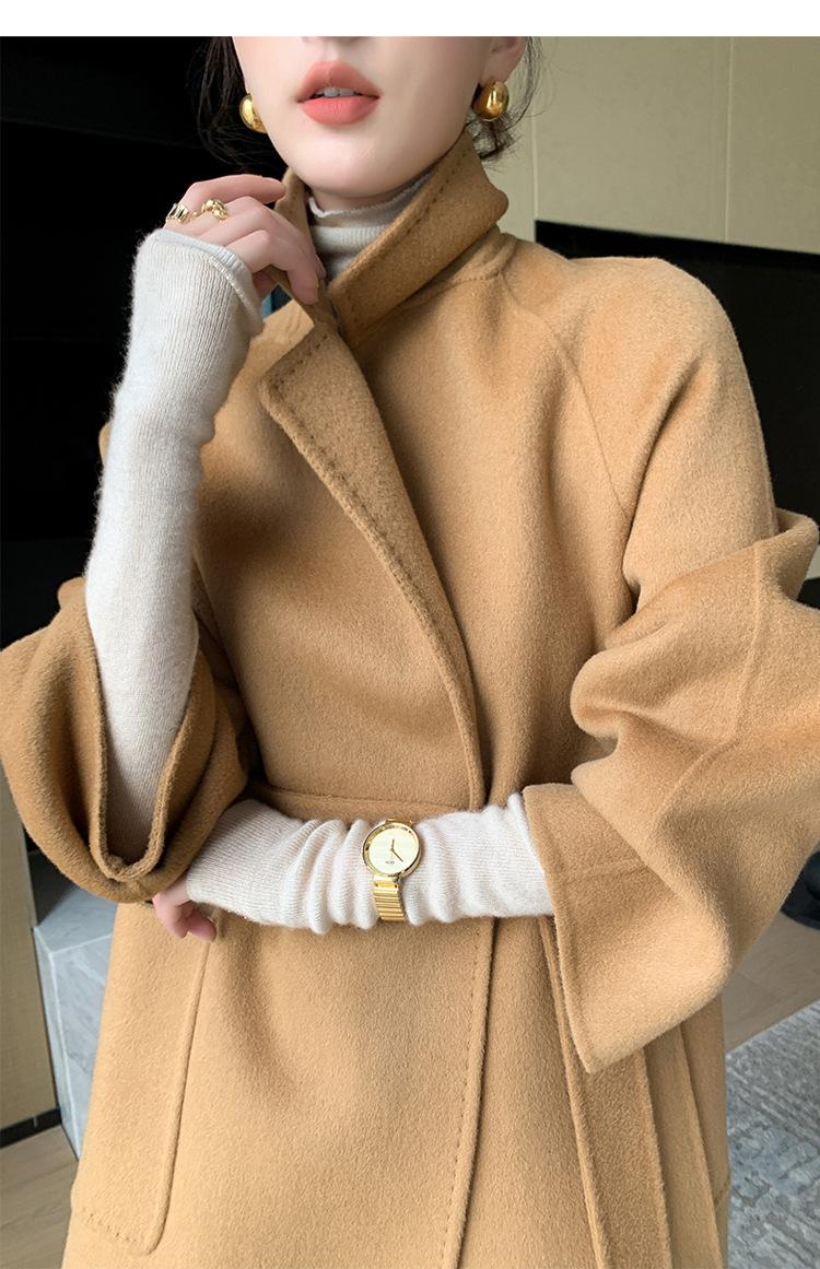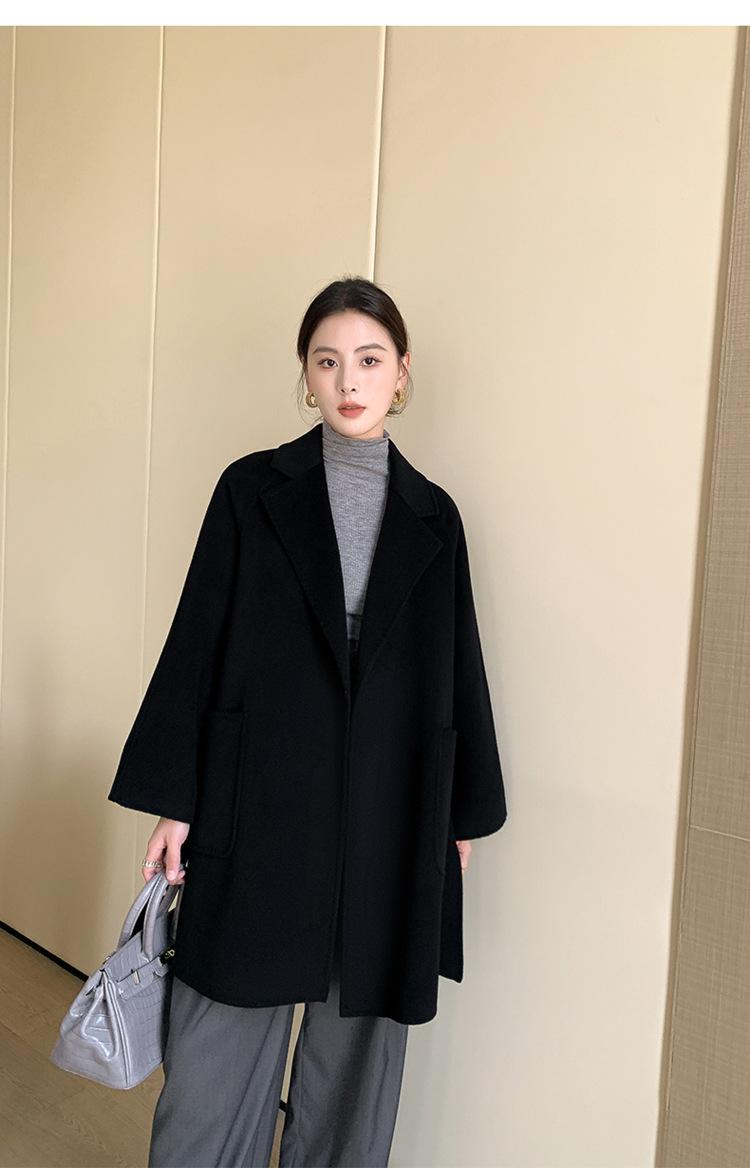 Abrigo de lana de doble cara de alta gama para mujer, otoño e invierno, nuevo, holgado, de longitud media, con cordones, 100% lana, abrigo de lana de moda