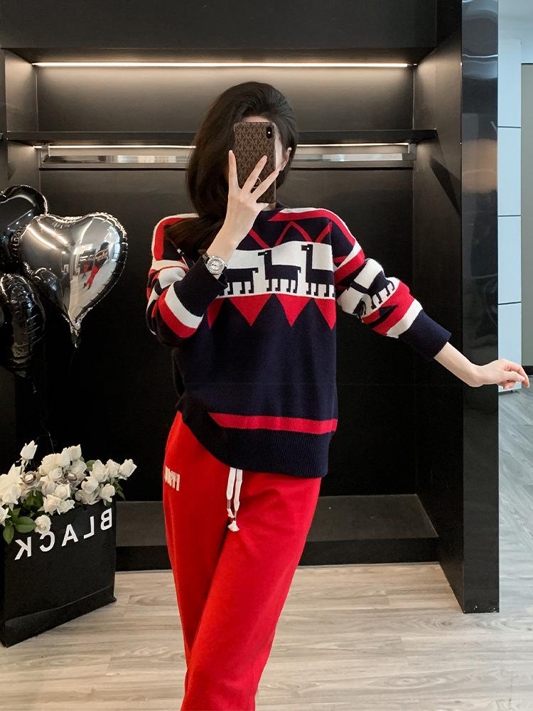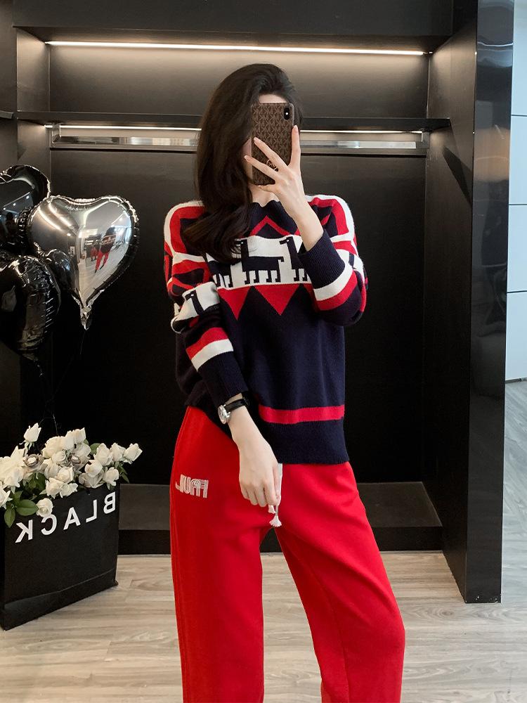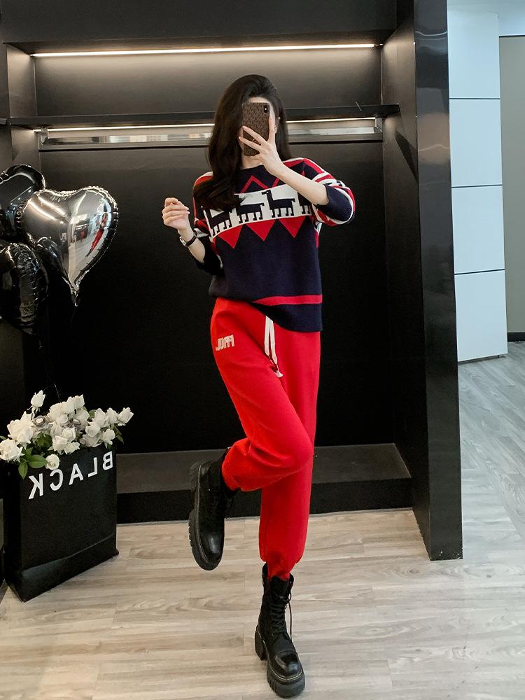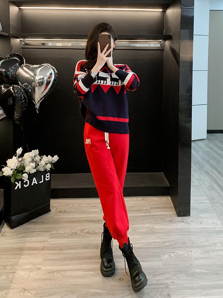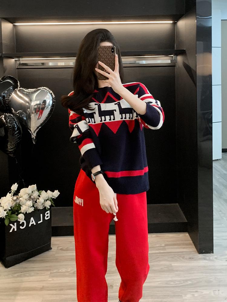 Traje adelgazante gordito para mujer Otoño 2023 Nuevo jersey de punto con cuello redondo y manga larga, ropa de dos piezas para mujer