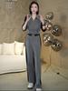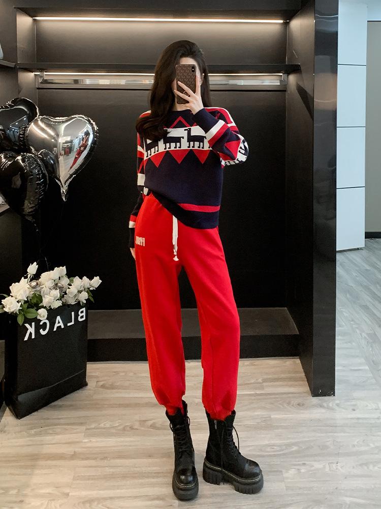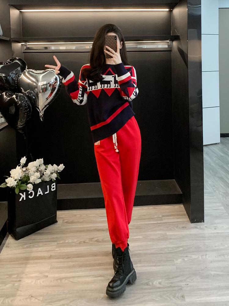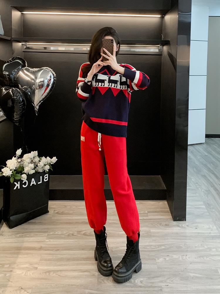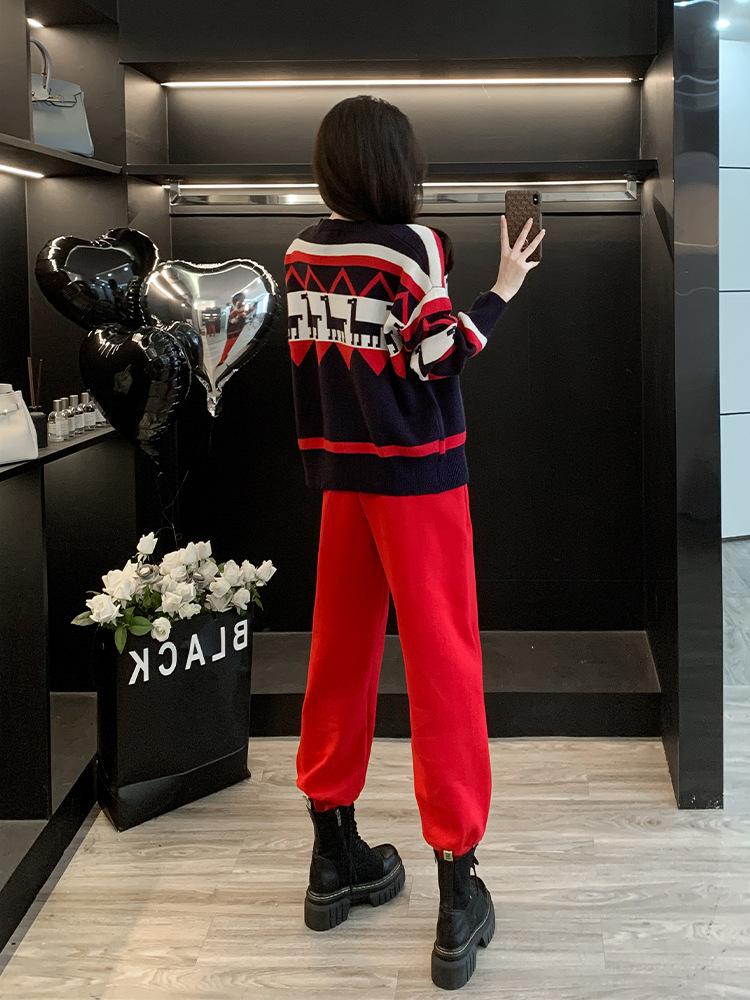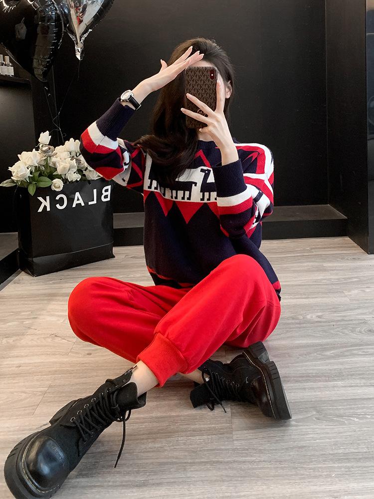 Traje adelgazante gordito para mujer Otoño 2023 Nuevo jersey de punto con cuello redondo y manga larga, ropa de dos piezas para mujer