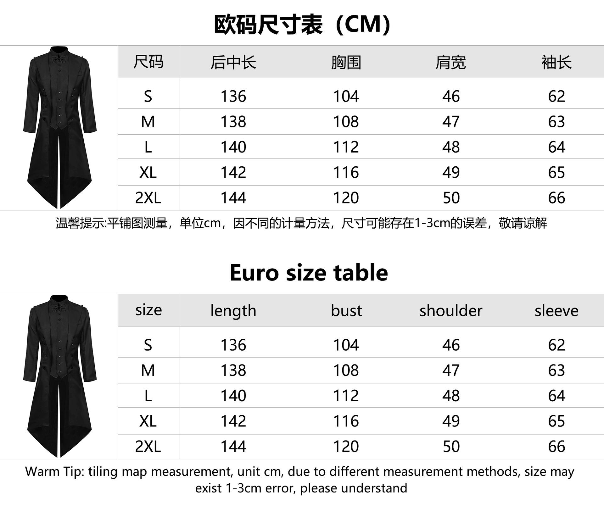 Nuevo Disfraz Medieval Retro Europeo y Americano de Halloween Esmoquin de Ajuste Entallado de Largo Medio cosplay Ropa para Actuación Escénica