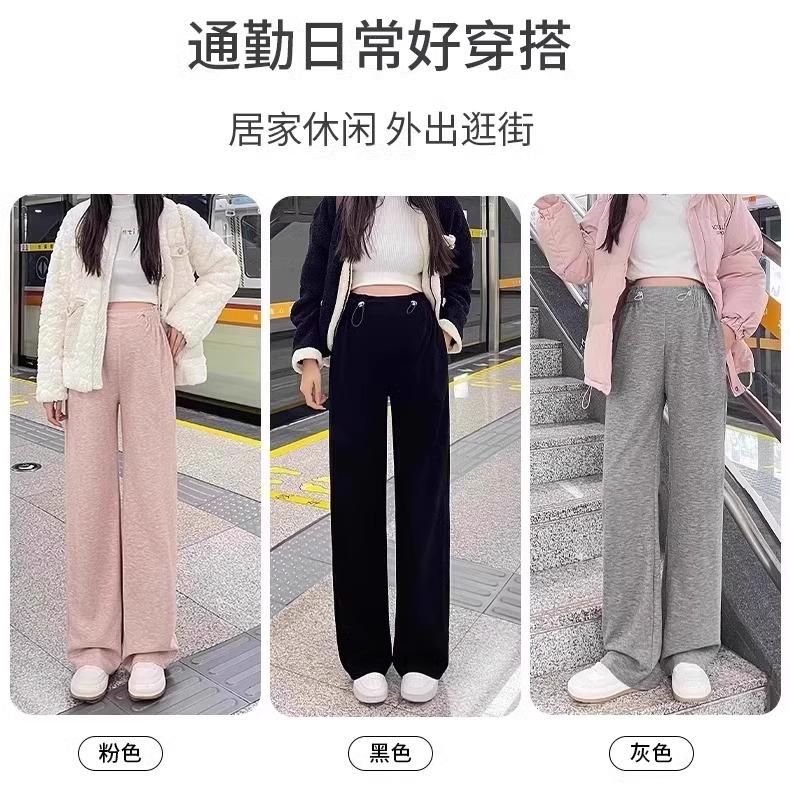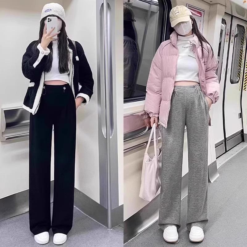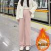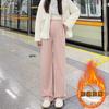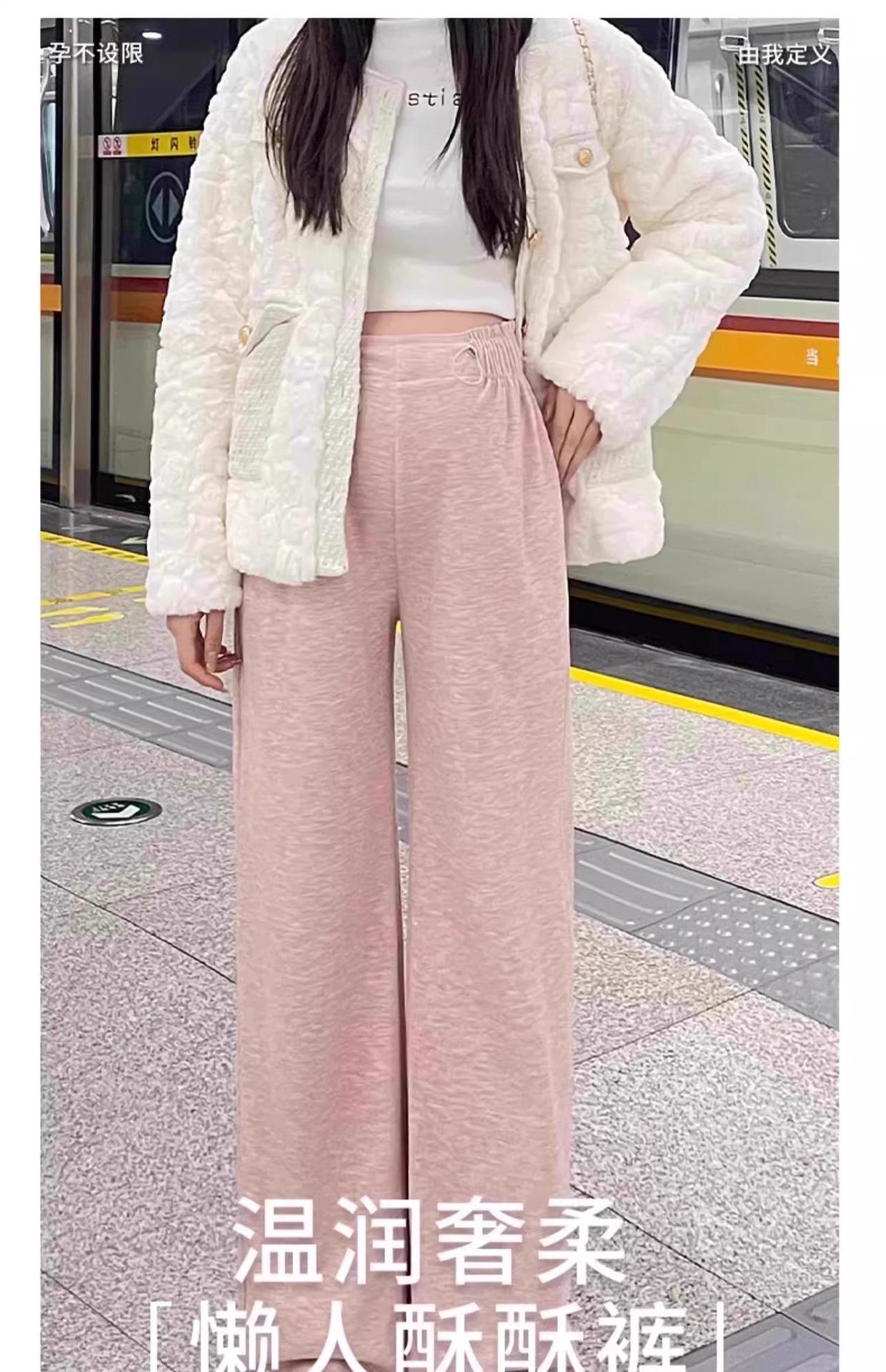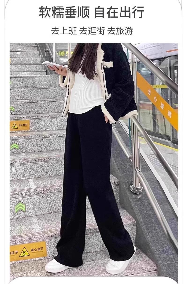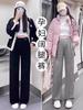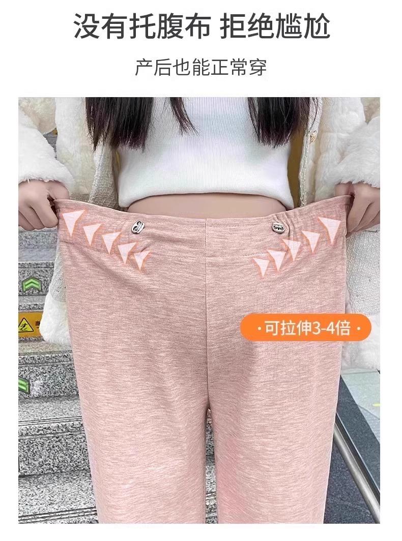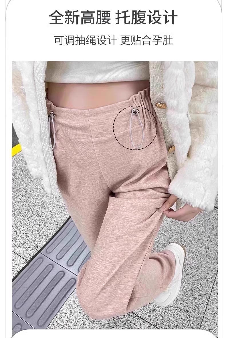 Pantalones de Maternidad sin Soporte para el Vientre Primavera, Otoño e Invierno Ropa Exterior 2025 Nuevo Estilo No Elásticos Forrados de Felpa Cordón Pierna Ancha Pantalones Casuales