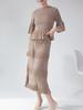Traje nuevo de otoño para mujer Miyake Dos piezas Elegante Ajustado Camiseta básica Top Combinable Falda a la cadera