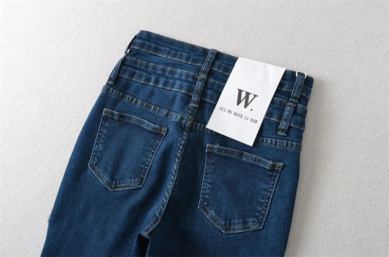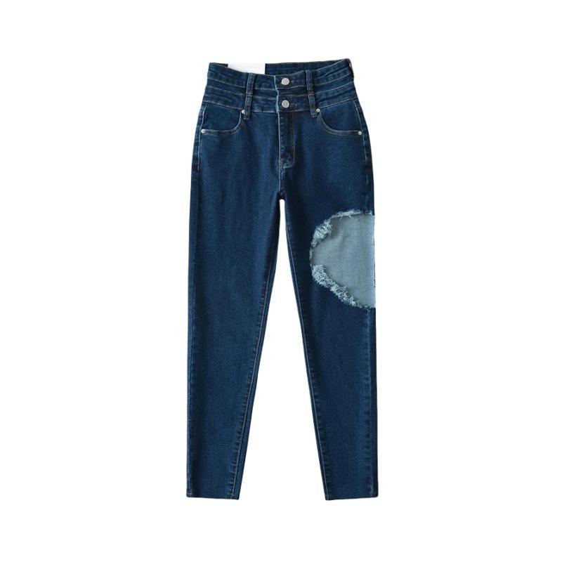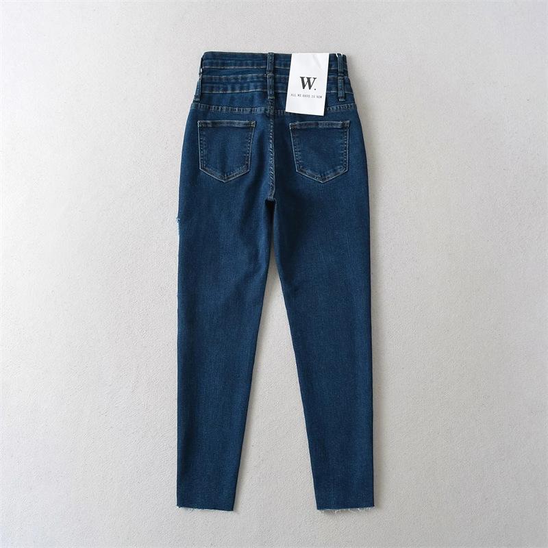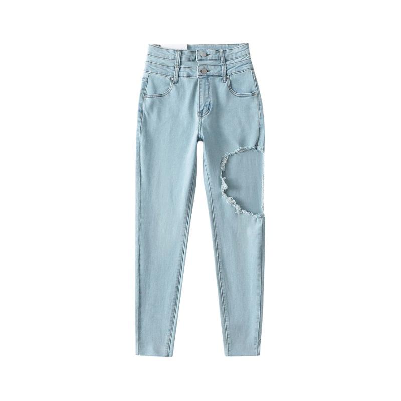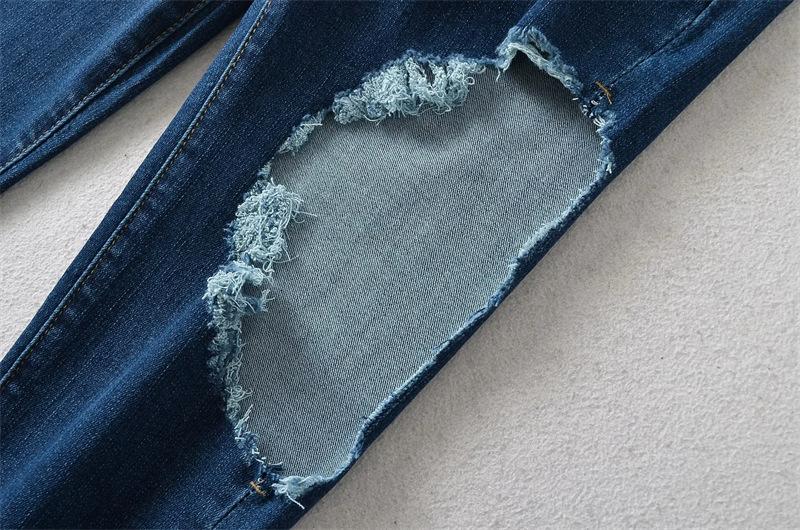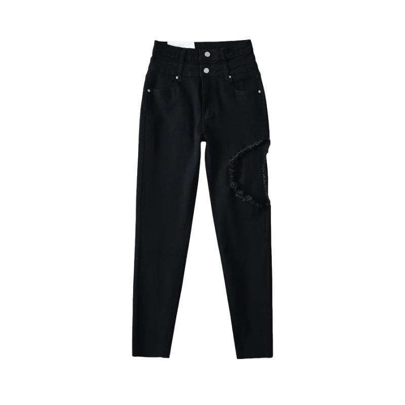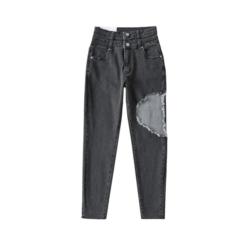 Pantalones vaqueros ajustados de cintura alta con diseño de personalidad para mujer, pantalones recortados con grandes rotos y lápiz