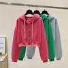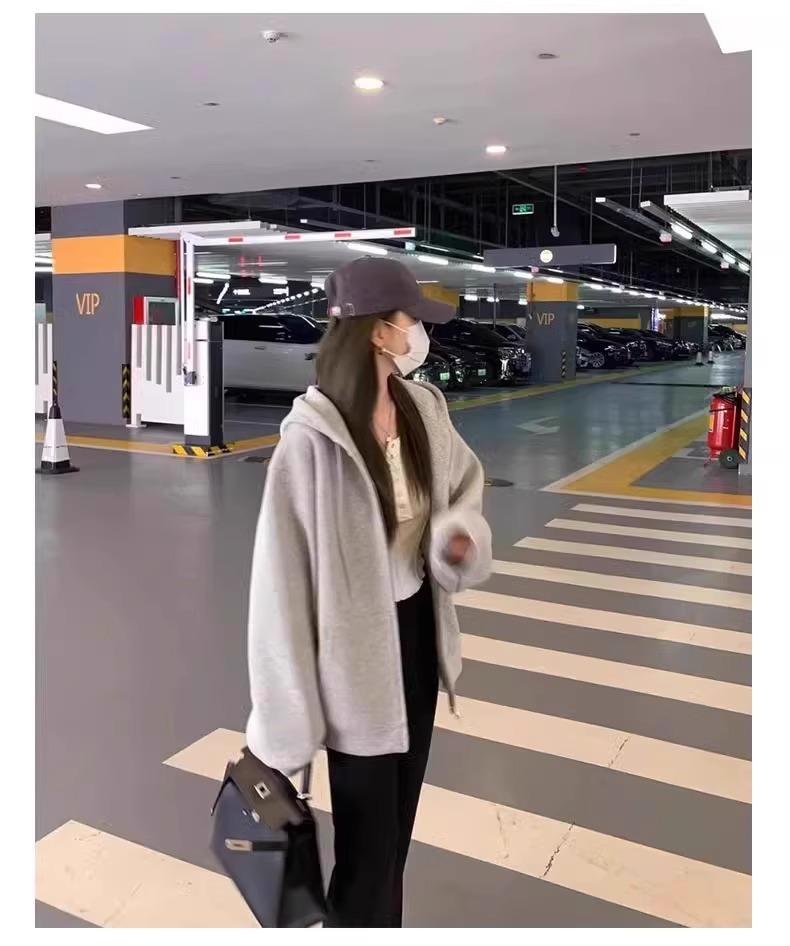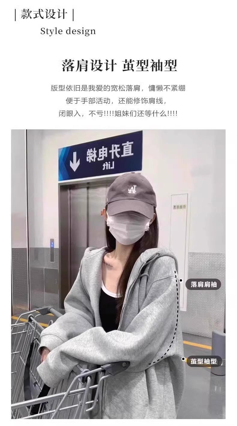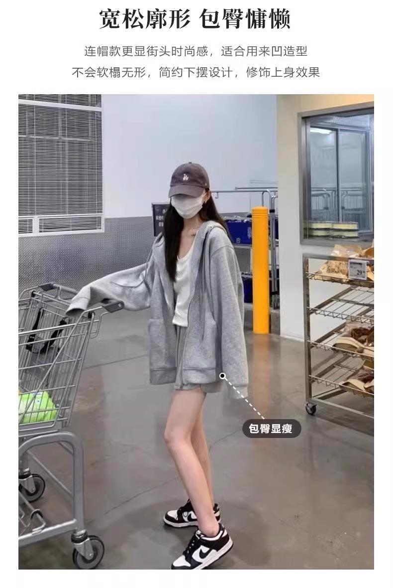 Chamarra Sudadera Gris Estilo Americano para Mujer, Primavera y Otoño 2025 Nuevo Top Cárdigan Holgado con Capucha y Cierre de Cremallera, Estilo Casual
