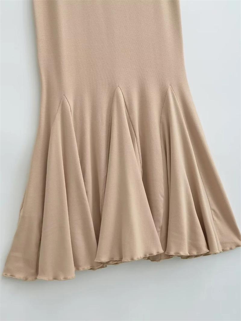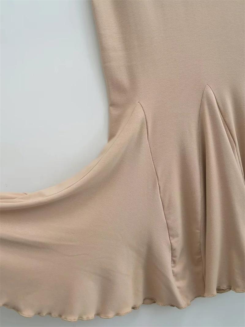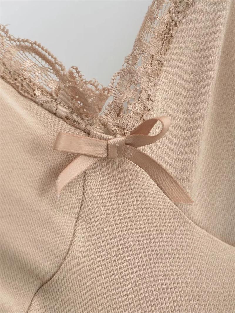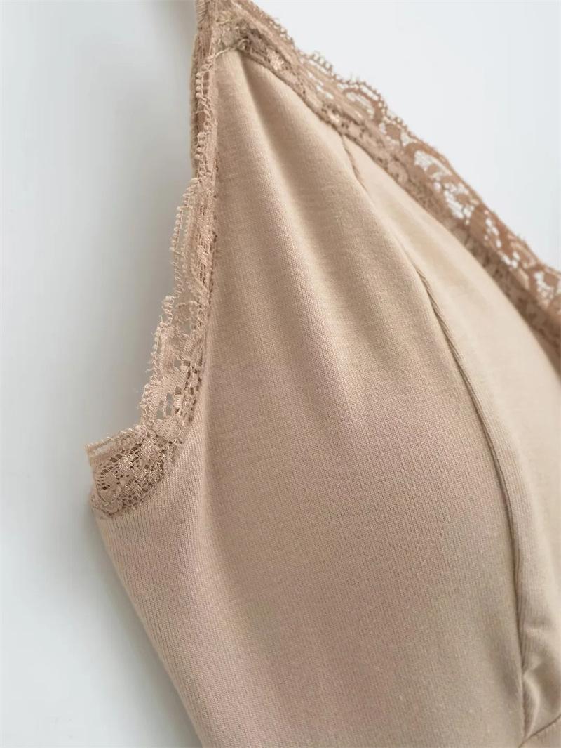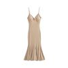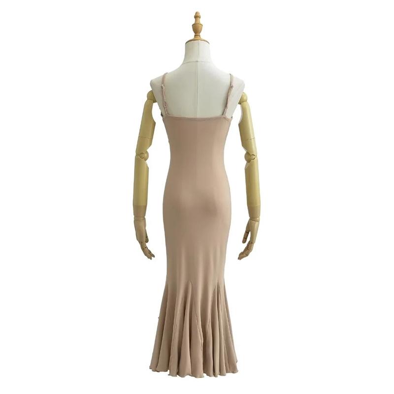 Vestido de mujer con escote en V, encaje, costuras, tirantes finos, diseño sexy, acolchado en el pecho, cola de pez plisada