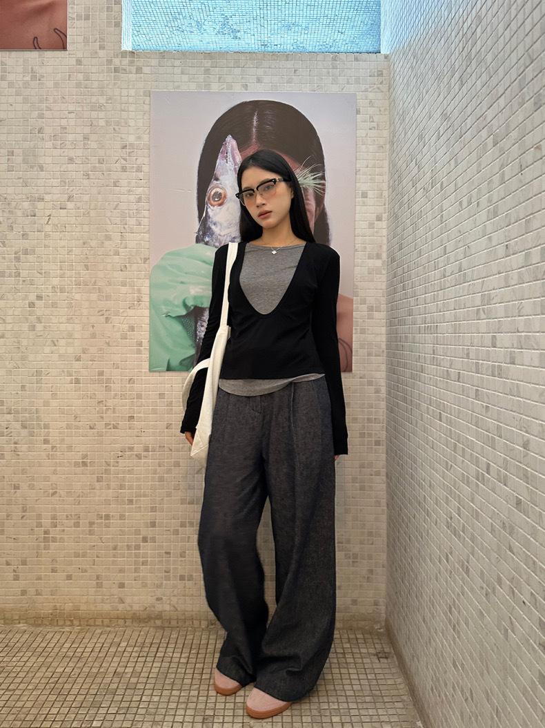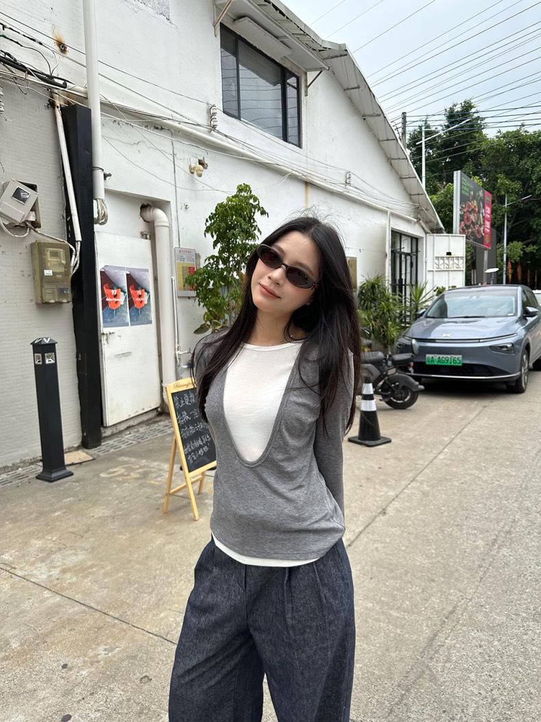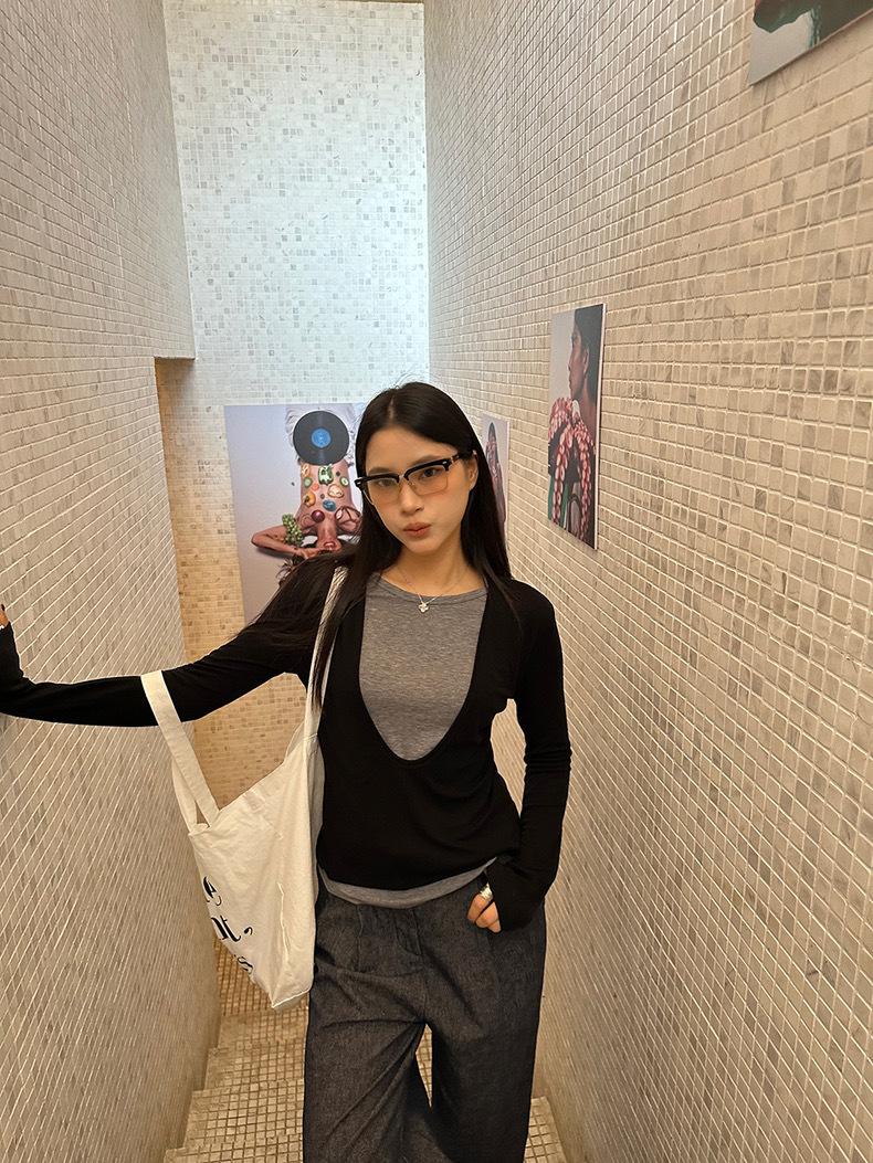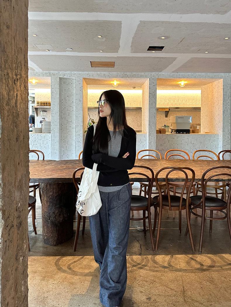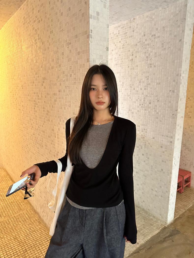 Suéter de punto de dos piezas con cuello redondo y manga larga, estilo coreano, holgado, con costuras falsas en contraste de colores otoñales para mujer
