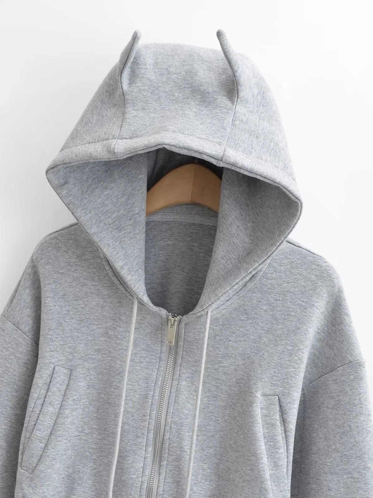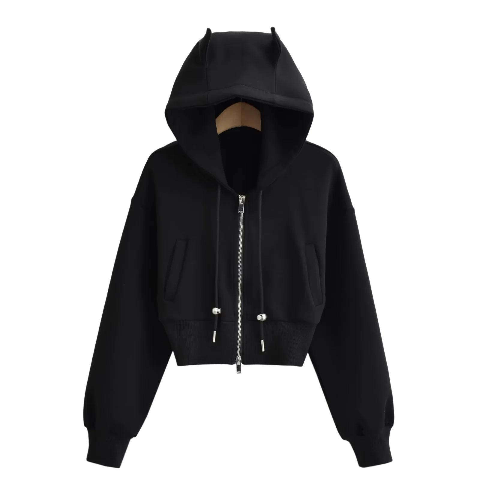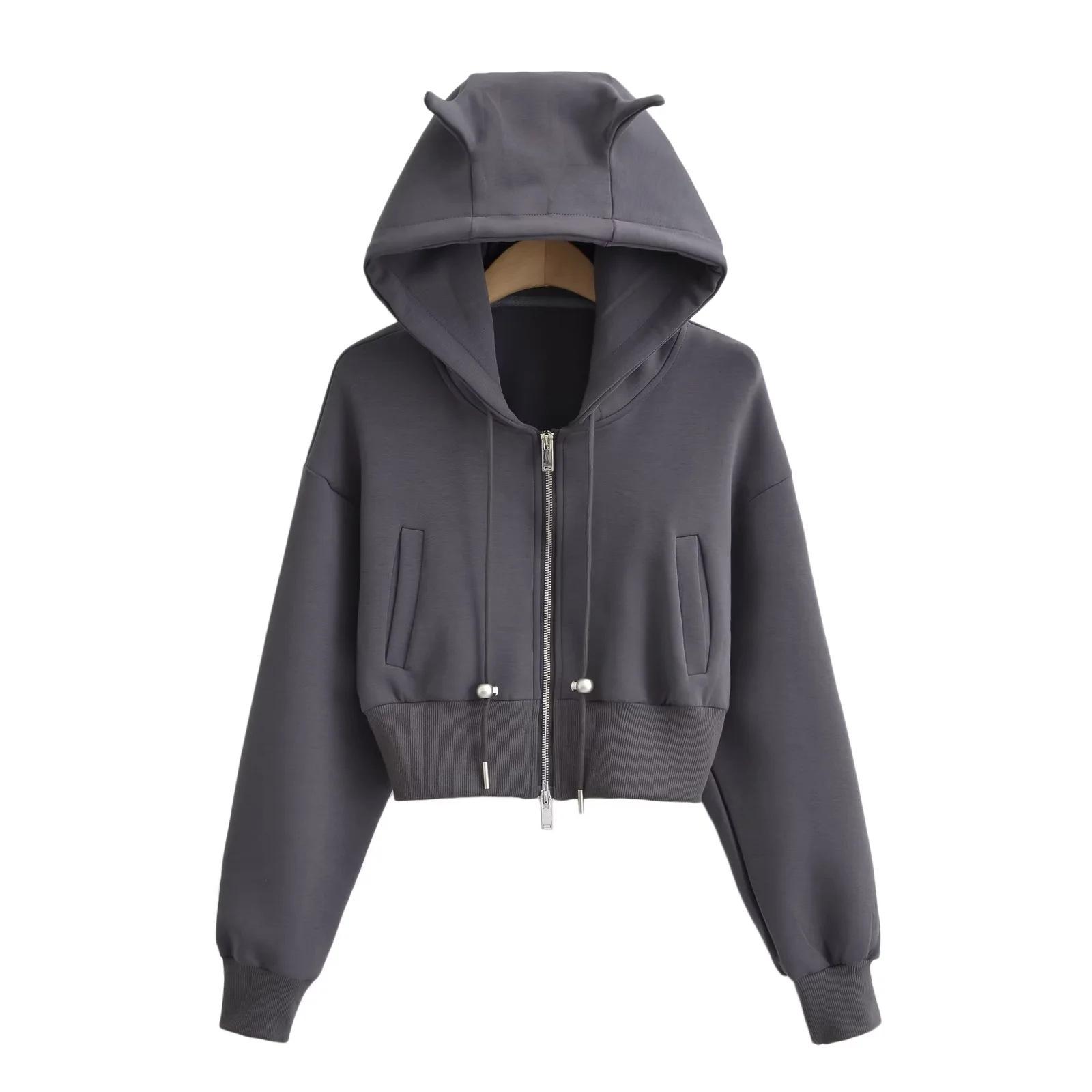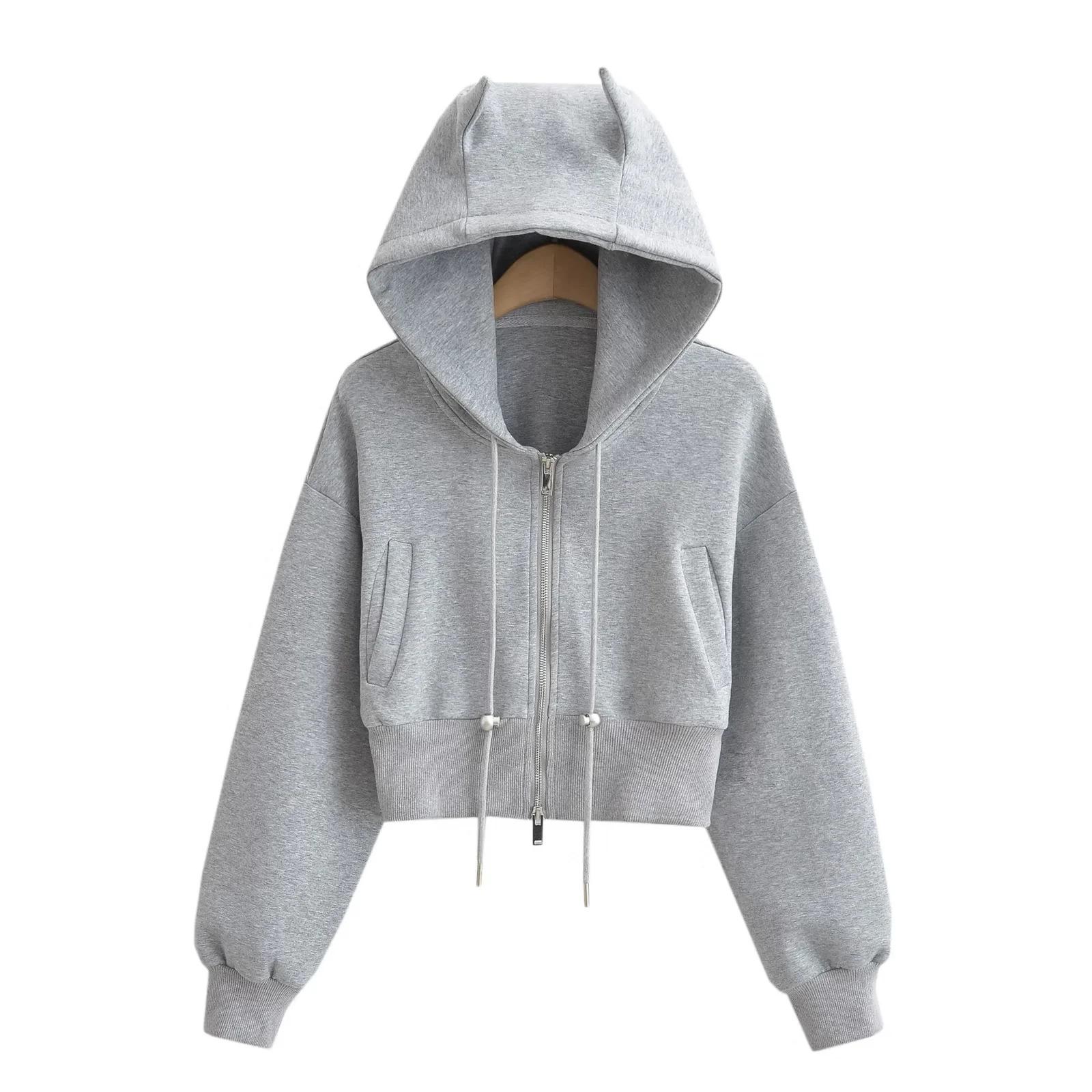 Suéter con capucha estilo perezoso de otoño Imp para mujer, diseño de cintura alta, corto, holgado, casual, cárdigan con cremallera