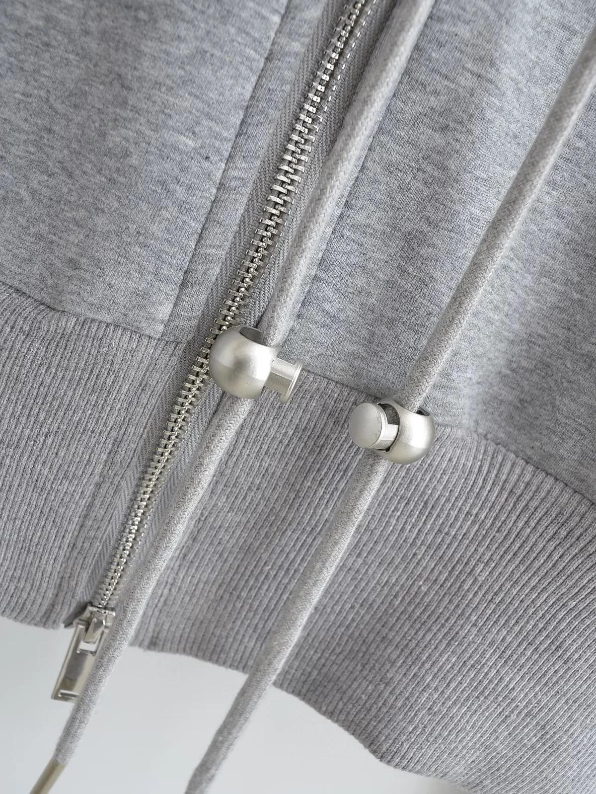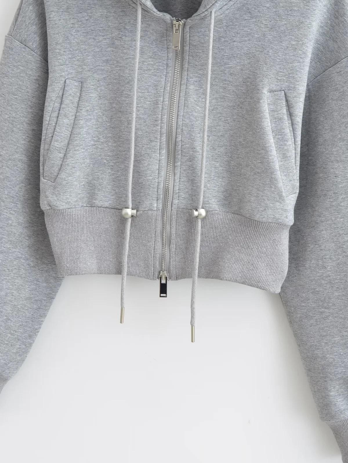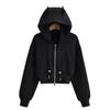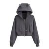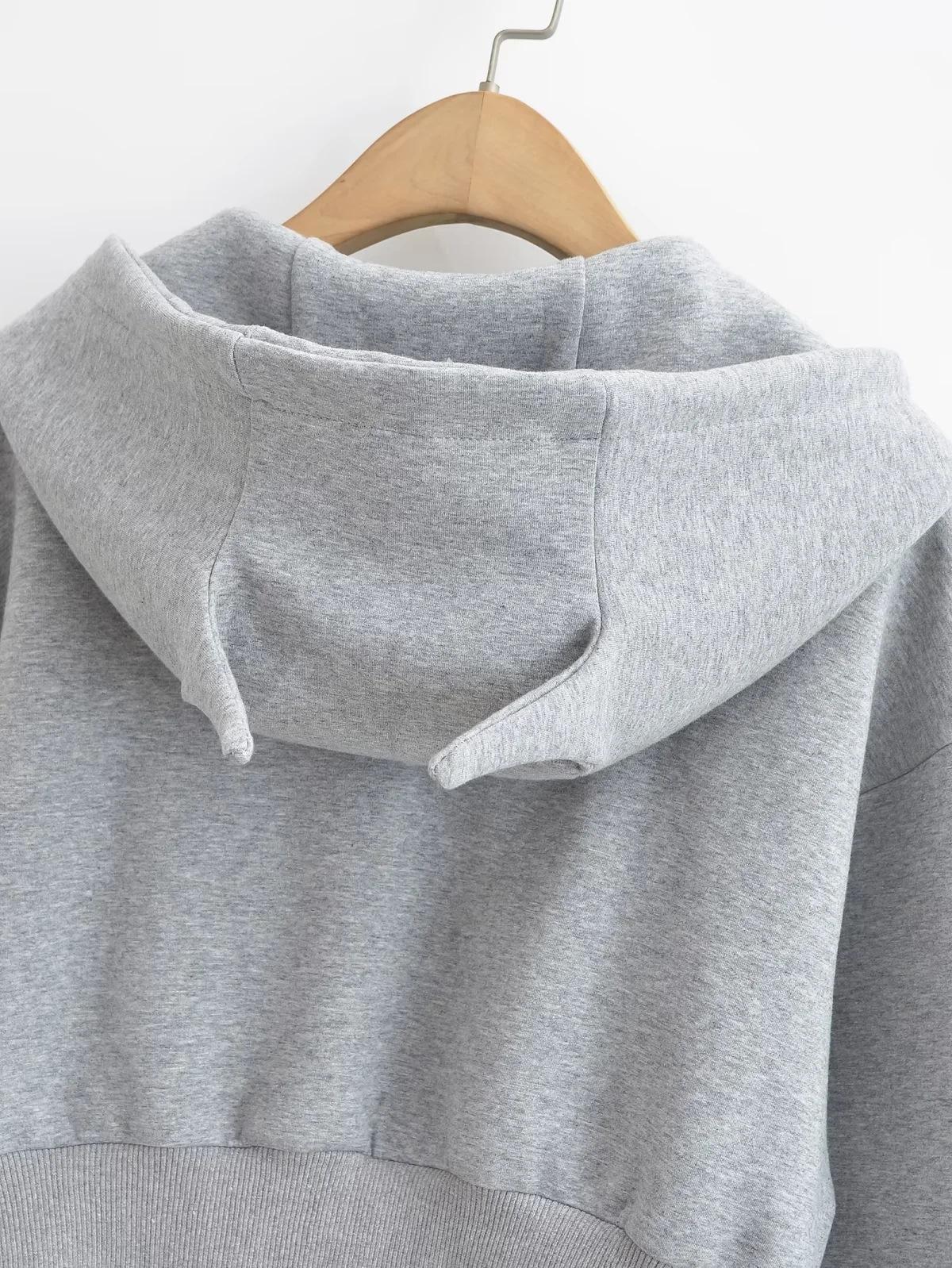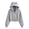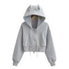Suéter con capucha estilo perezoso de otoño Imp para mujer, diseño de cintura alta, corto, holgado, casual, cárdigan con cremallera
