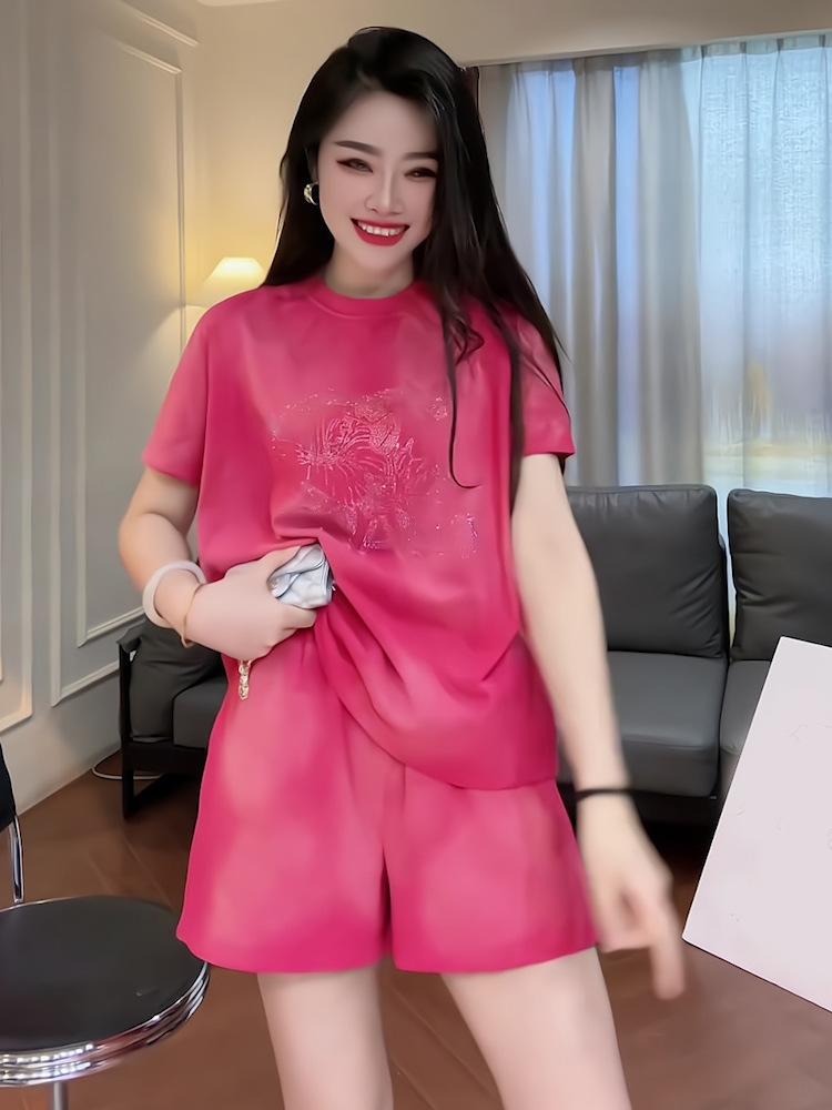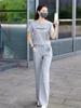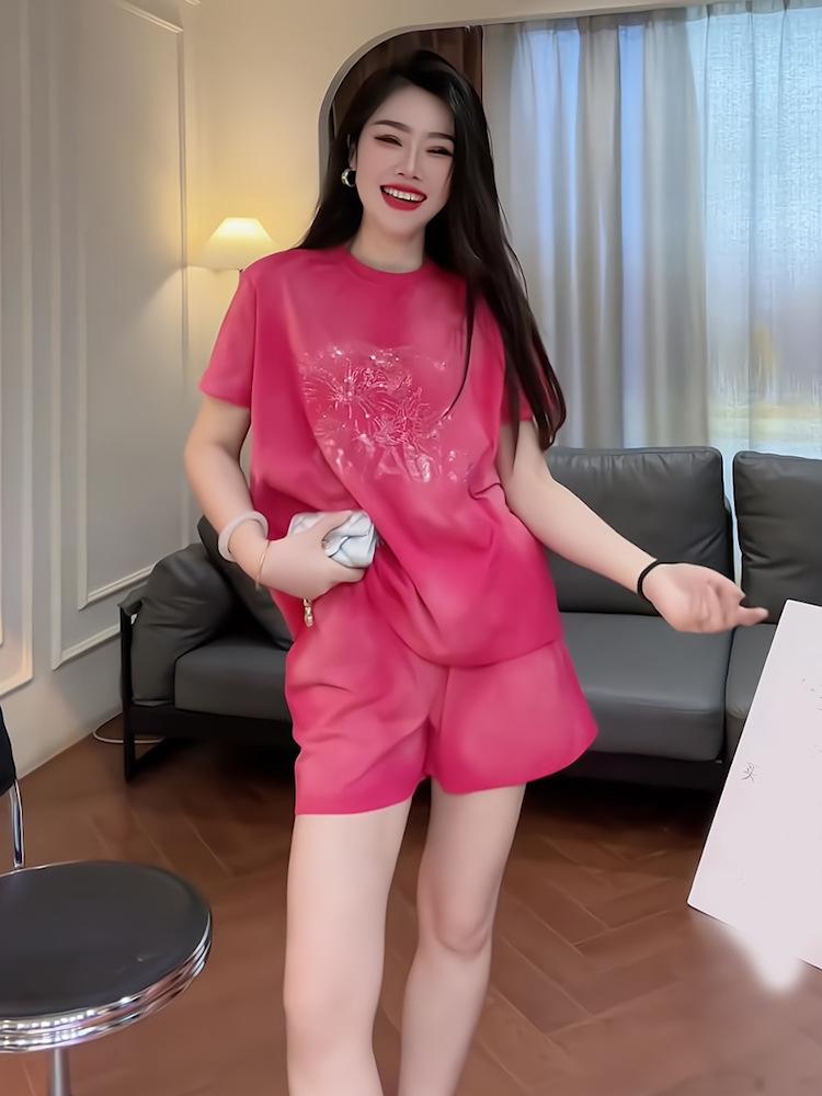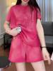 Traje Deportivo de Moda Primavera Nuevo Cuello Redondo Pulóver Holgado Adelgazante Manga Corta Conjunto de Dos Piezas para Mujer