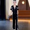 Cárdigan Negro Estampado Ajustado Entallado con Capucha Manga Corta Traje Top para Mujer Moda Primavera y Verano Nuevo Ropa Deportiva
