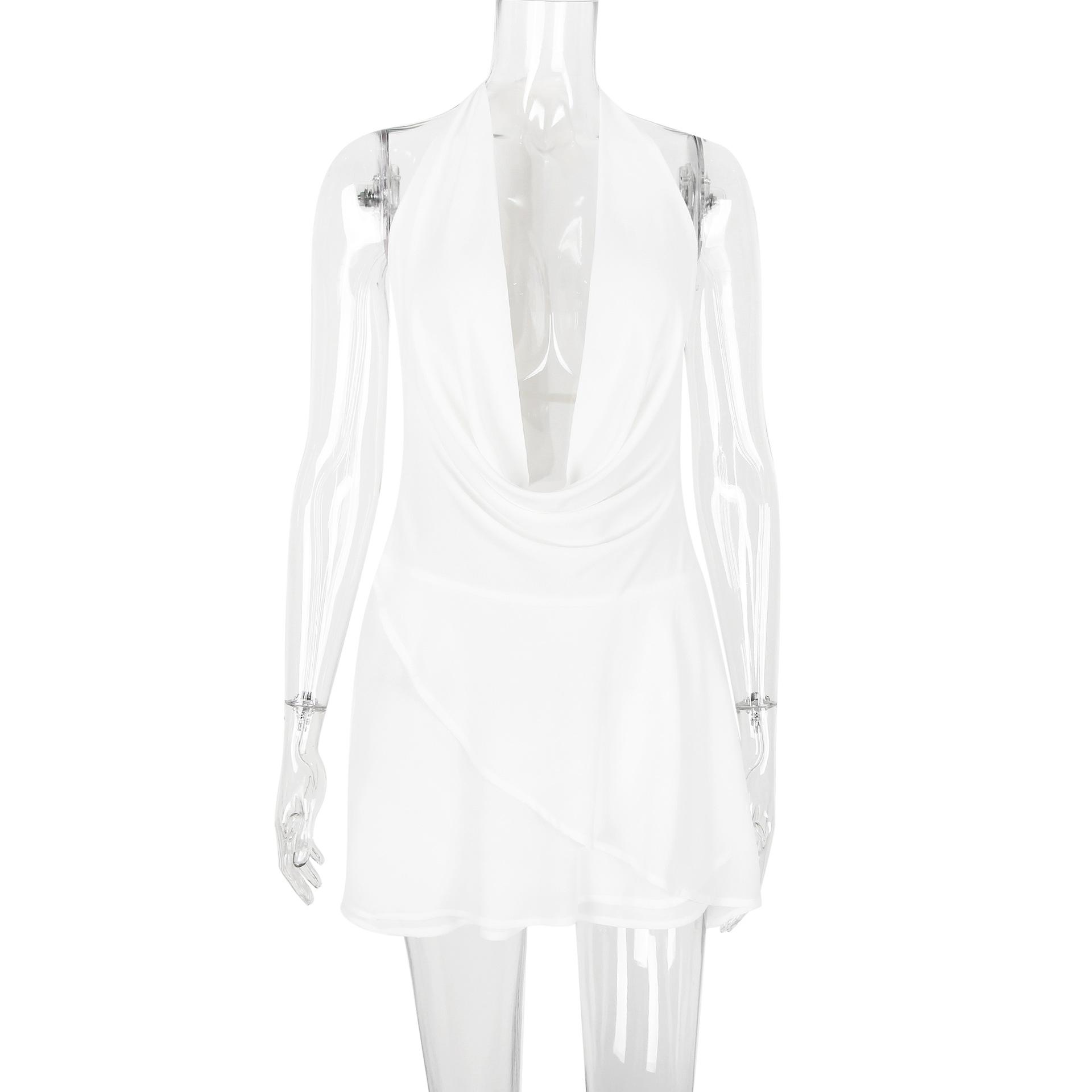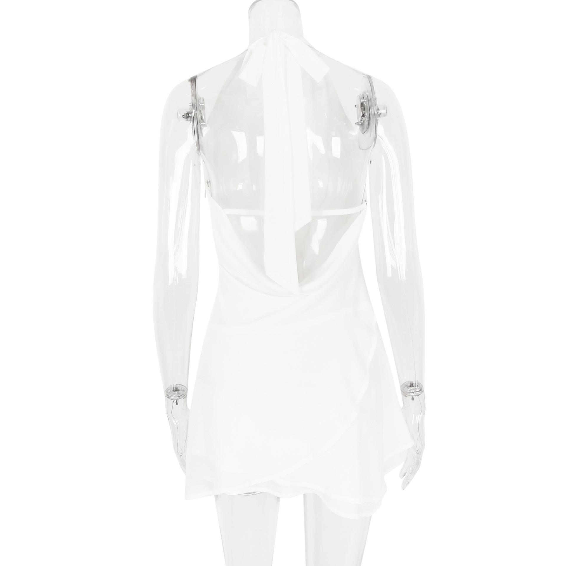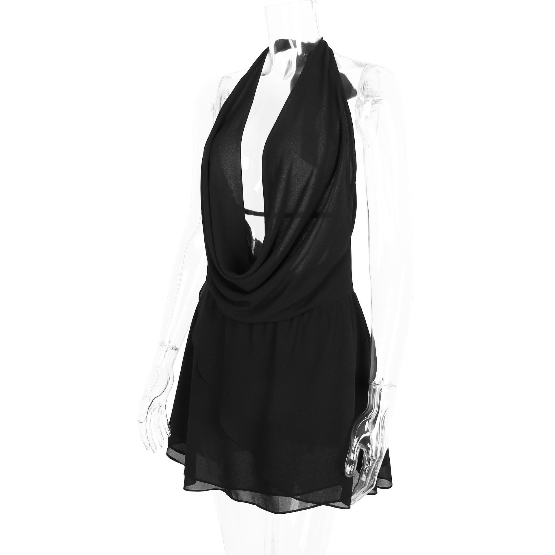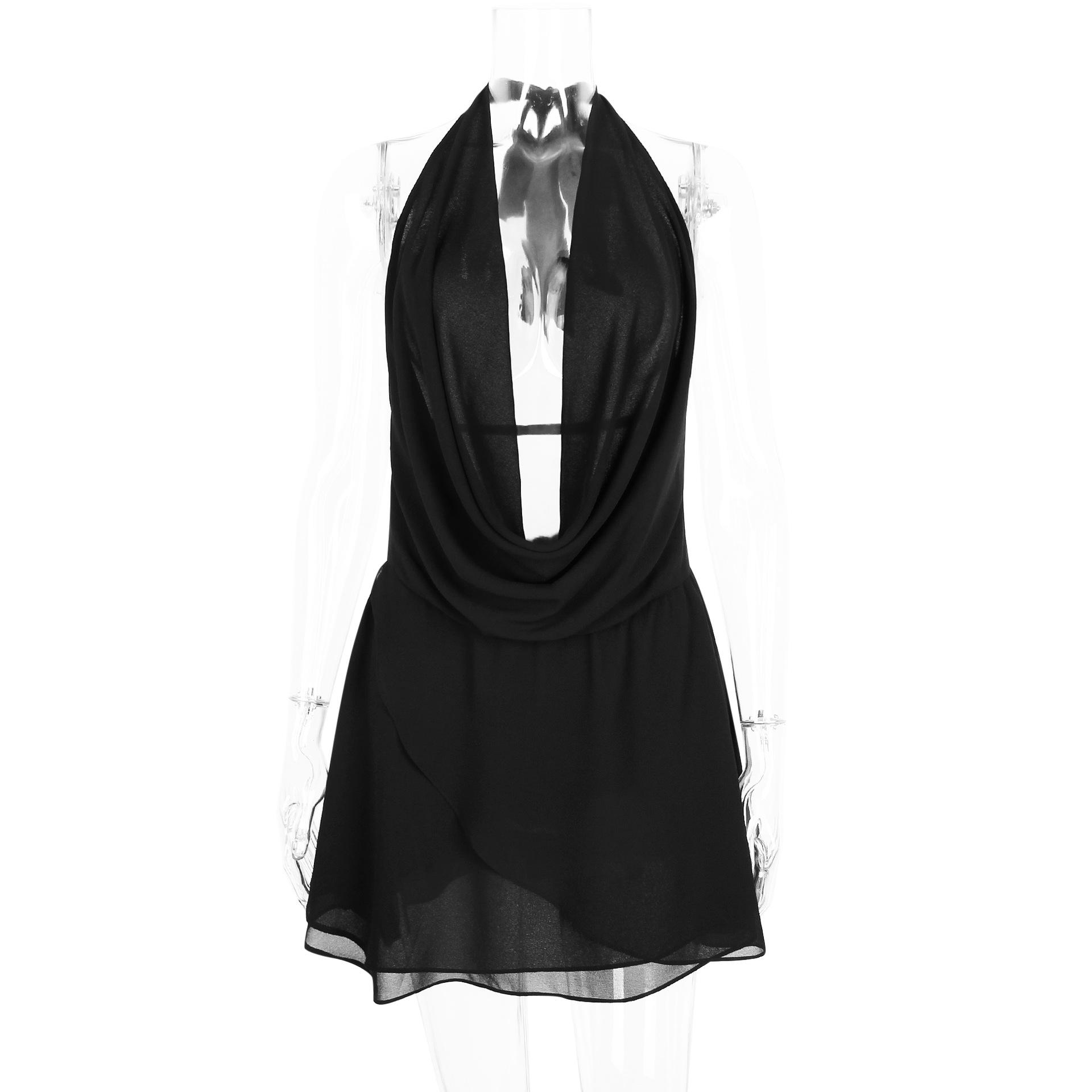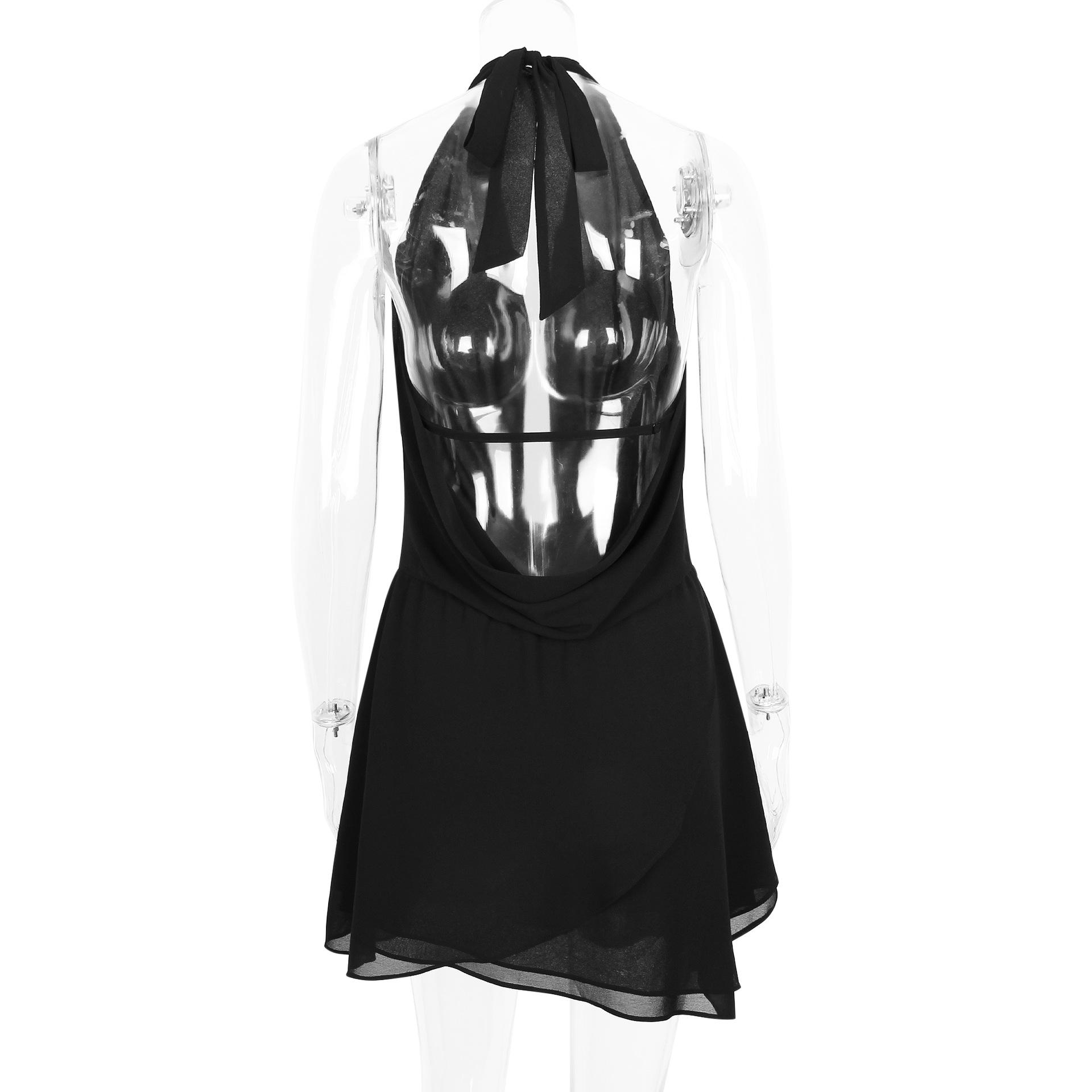 Vestido sexy de gasa con cuello sin mangas para mujer, estilo transfronterizo, falda sexy sin espalda con puro deseo para chica caliente