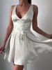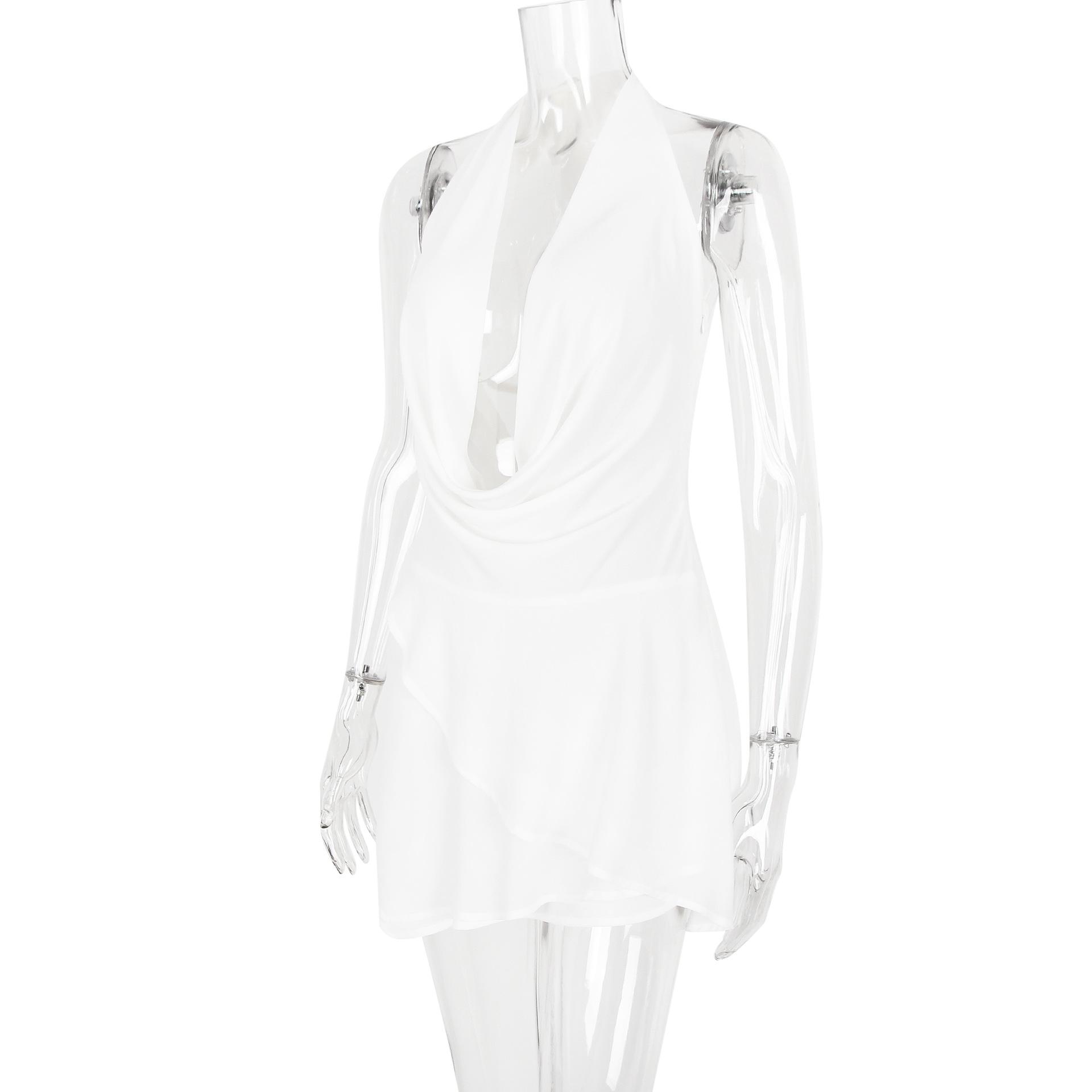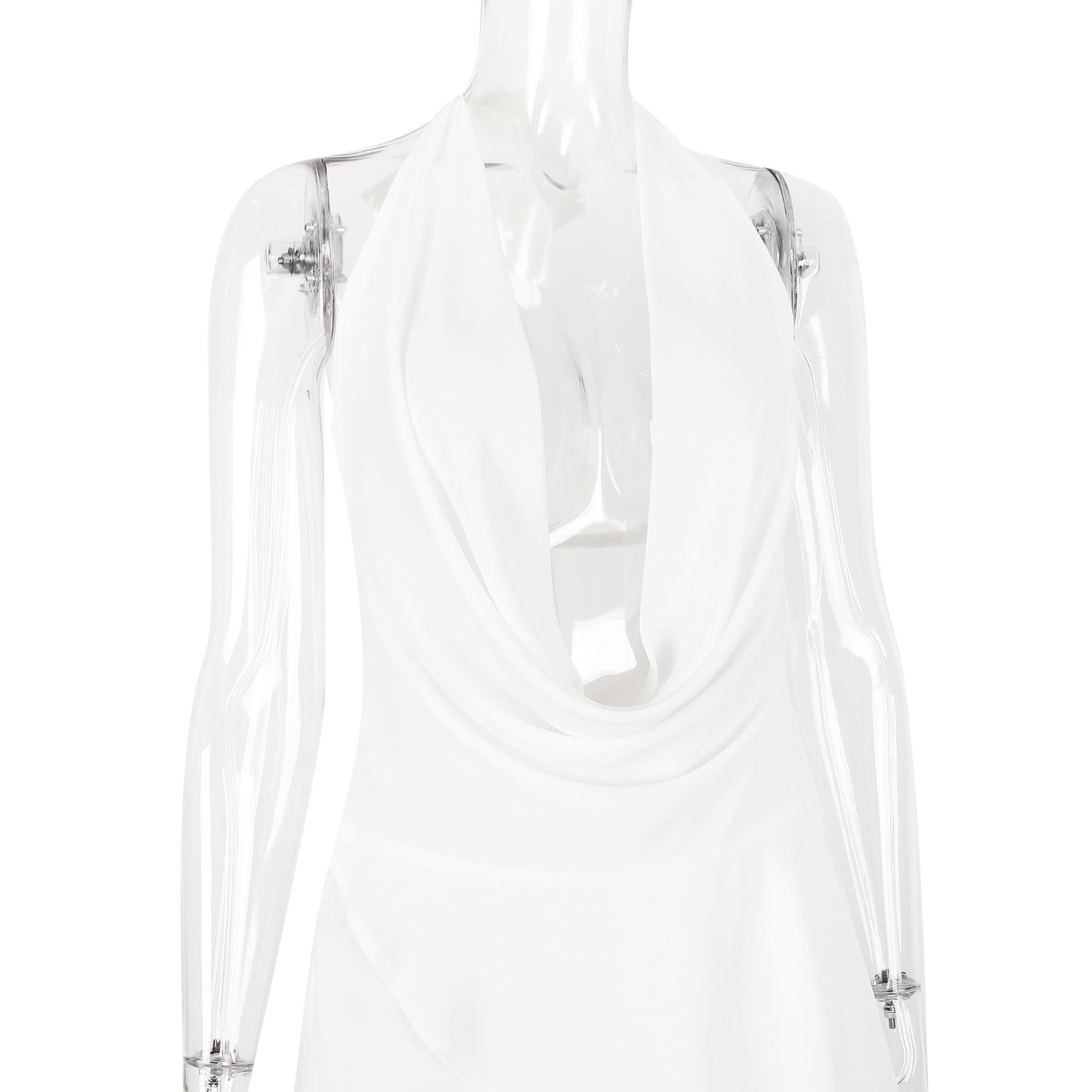 Comercio exterior sexy cuello halter plisado hueco vestido blanco femenino elegante sin espalda vestido largo vestido banquete temperamento femenino