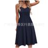 Vestido sexy europeo y americano con escote en V profundo, sin espalda, de longitud media, con falda azul con gancho y flores, sin mangas, para mujer, ropa sexy para chica, ropa femenina delgada
