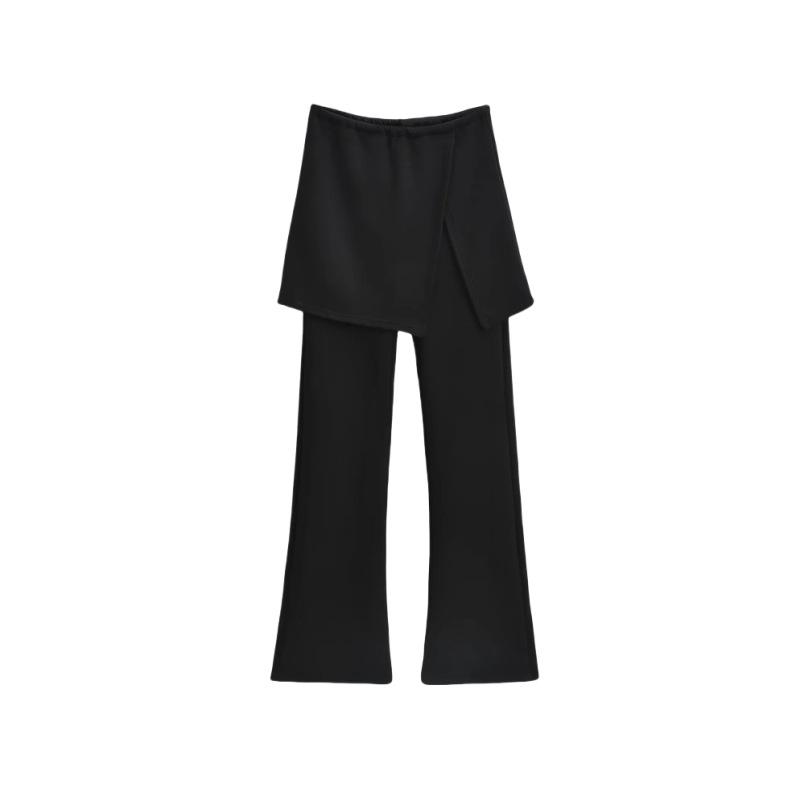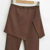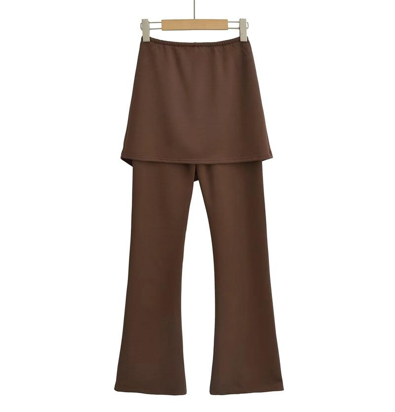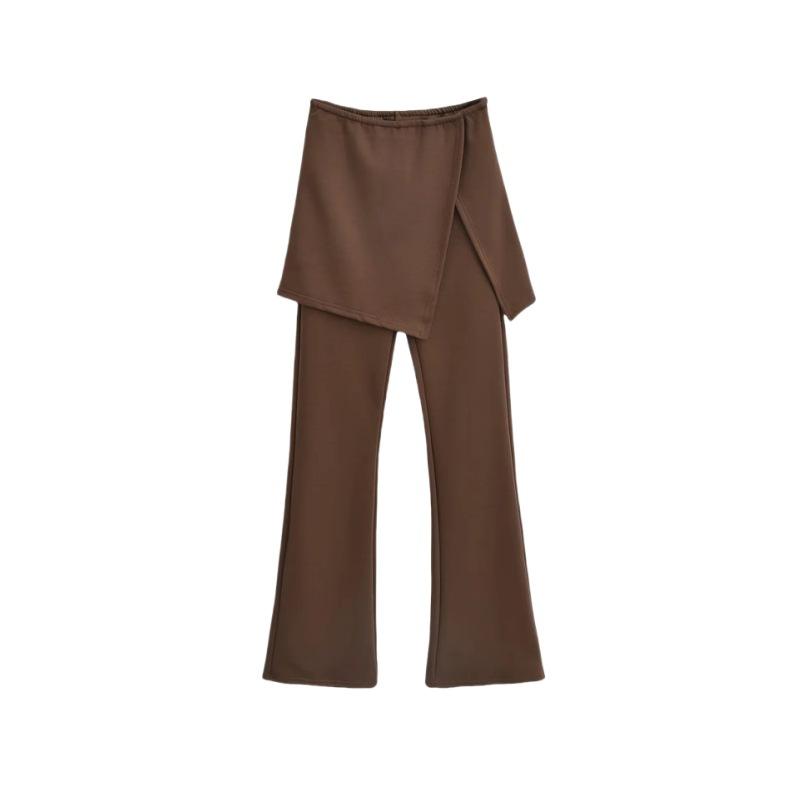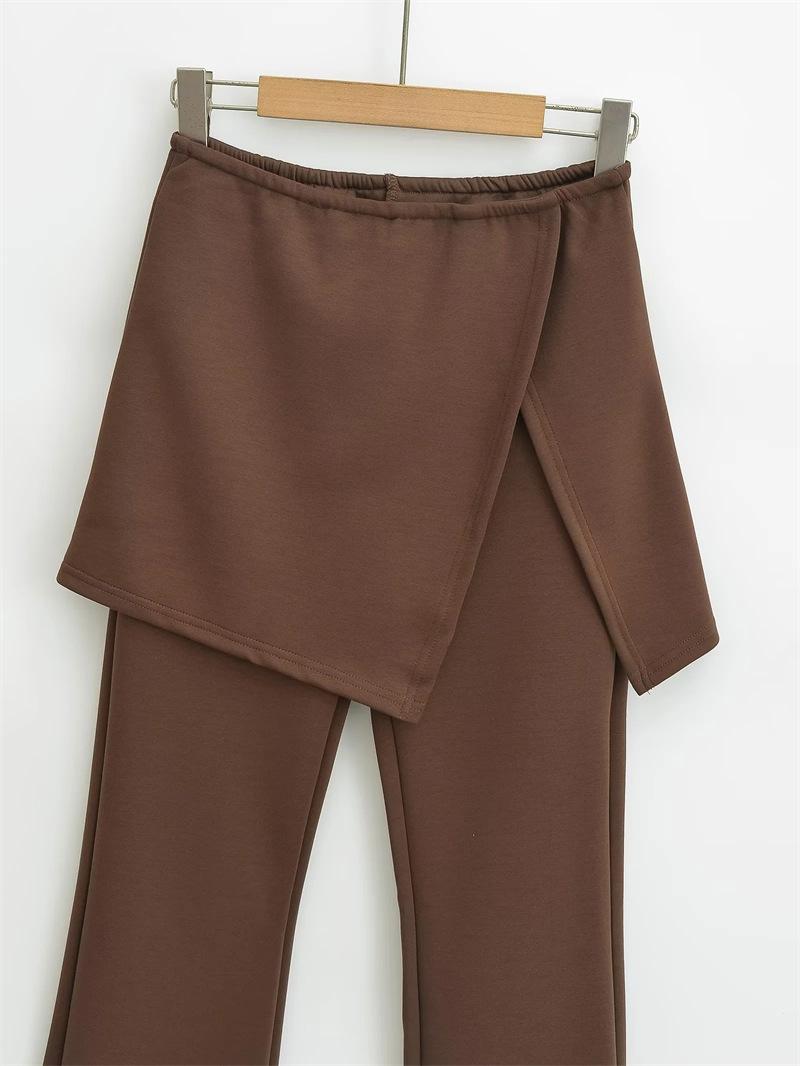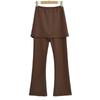 Pantalones acampanados de dos piezas con efecto falso de color liso para mujer, estilo vintage europeo y americano, ajustados, con abertura lateral, informales