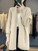 Chaqueta Suéter Estilo Holgazán Otoño e Invierno 2024 para Mujer Cuello en V Largo Medio 100% Lana Pura Cárdigan Tejido Suelto Sin Botones