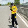 Yellow top + black pants, Yellow T-Shirt, Black pants