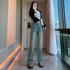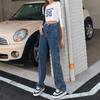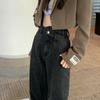 Pantalones vaqueros rectos para mujer, primavera y otoño 2022, nuevos pantalones holgados de cintura alta y pierna ancha para hombres pequeños.