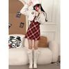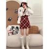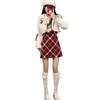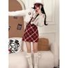 Falda de Yogurt de Fresa Estilo Nuevo de Principio de Primavera Cintura Adelgazante Look Estilo Preppy Vestido Falso de Dos Piezas Abrigo Corto Traje Jk para Mujer