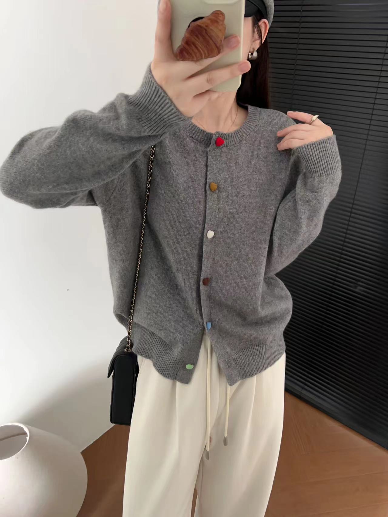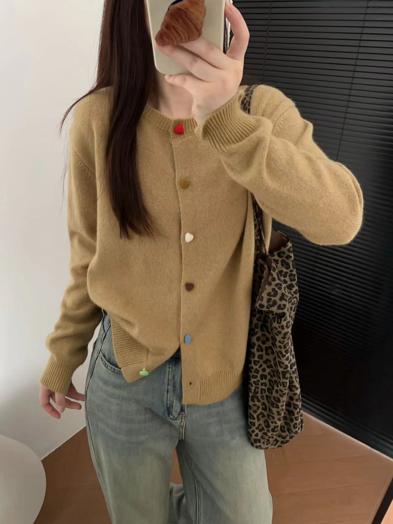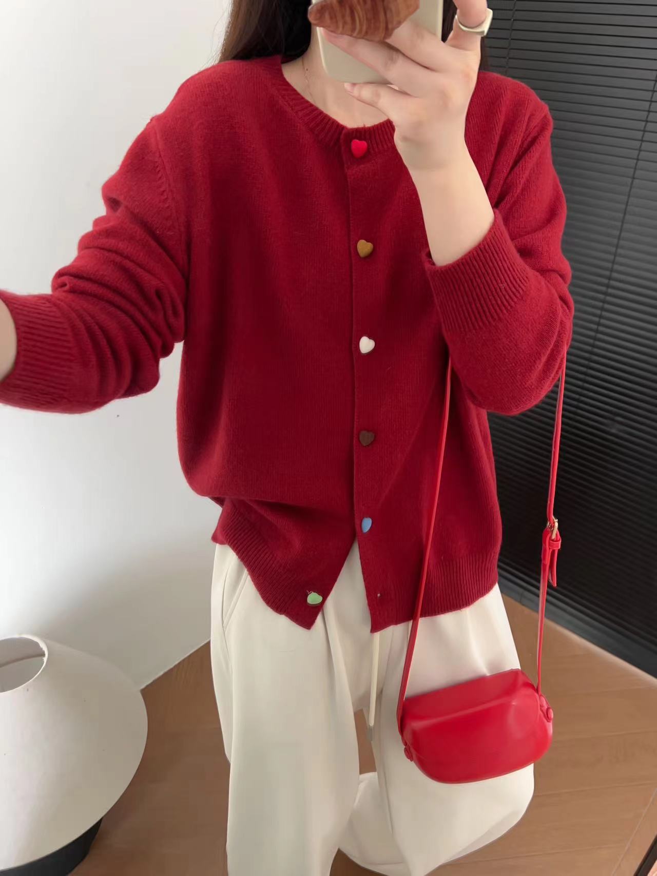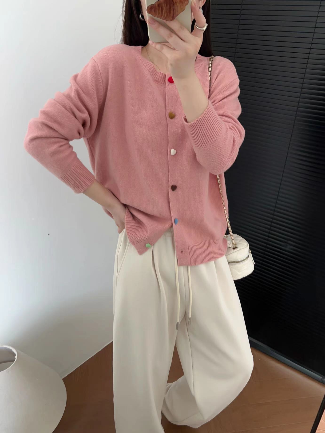 Cárdigan de Punto con Botones Color Love para Mujer 2024 Otoño e Invierno Nuevo Estilo Occidental Manga Larga Suéter Abrigo Top para Mujer