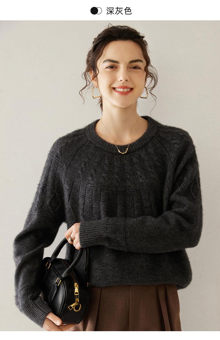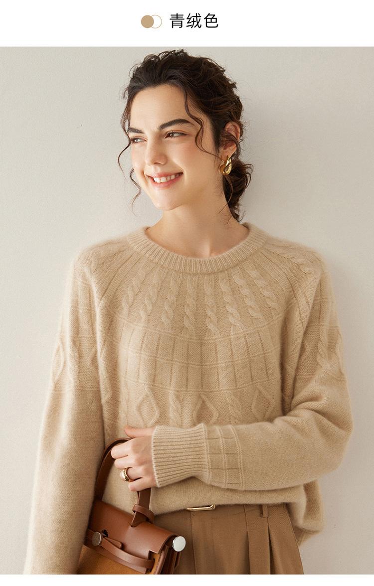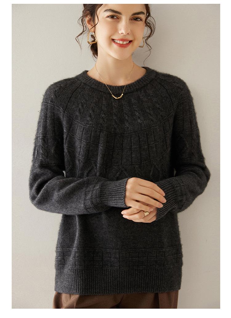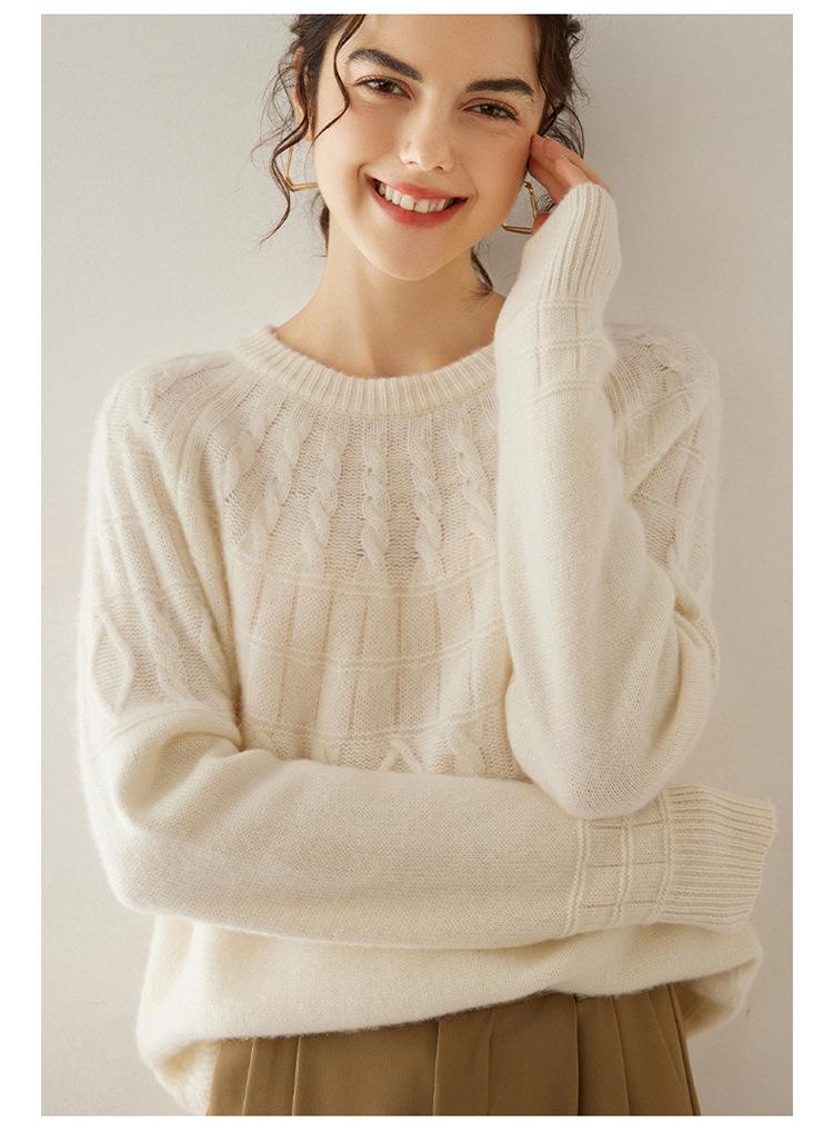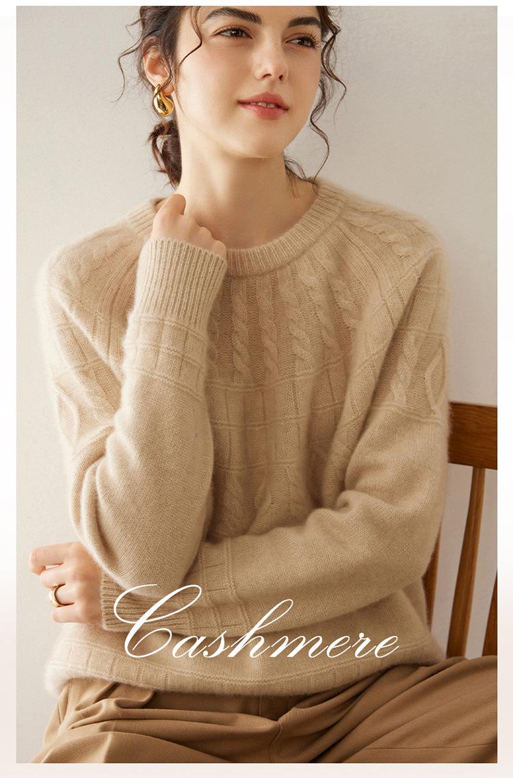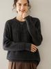 Suéter de cachemira grueso y grueso para mujer, jersey holgado de manga larga con cuello redondo y giro, suéter cálido