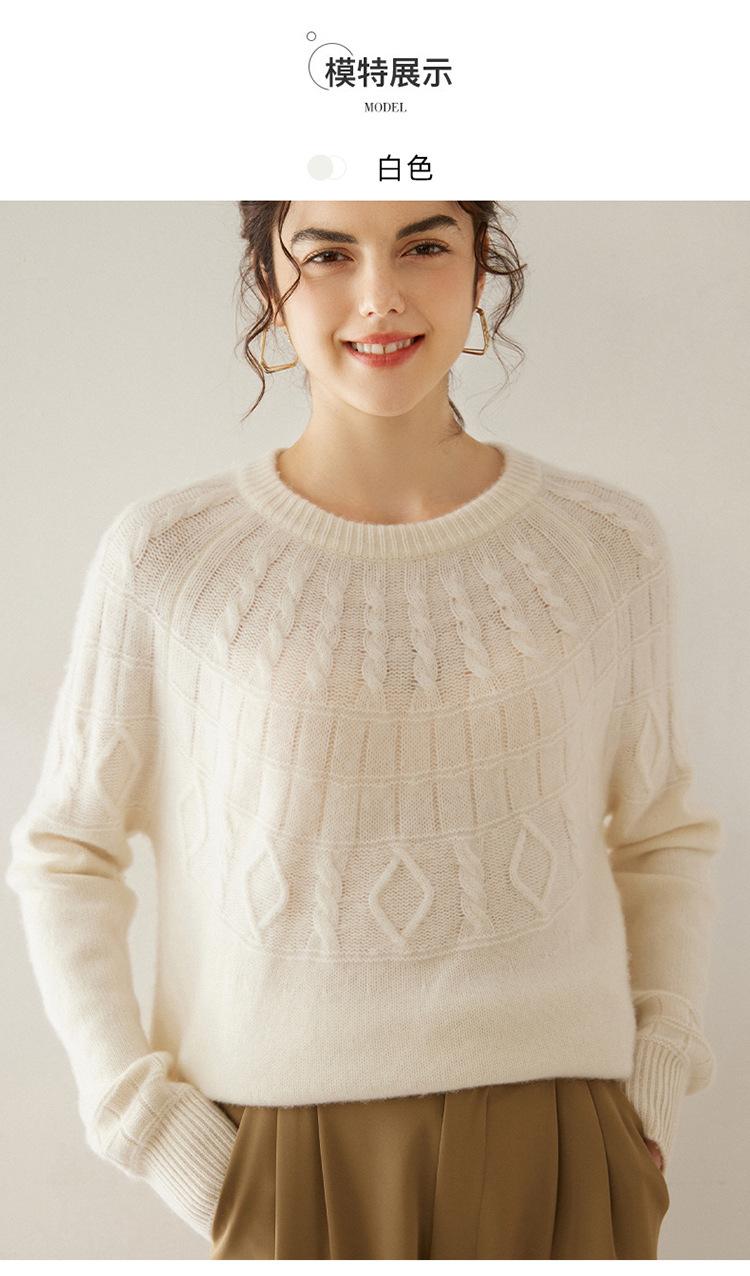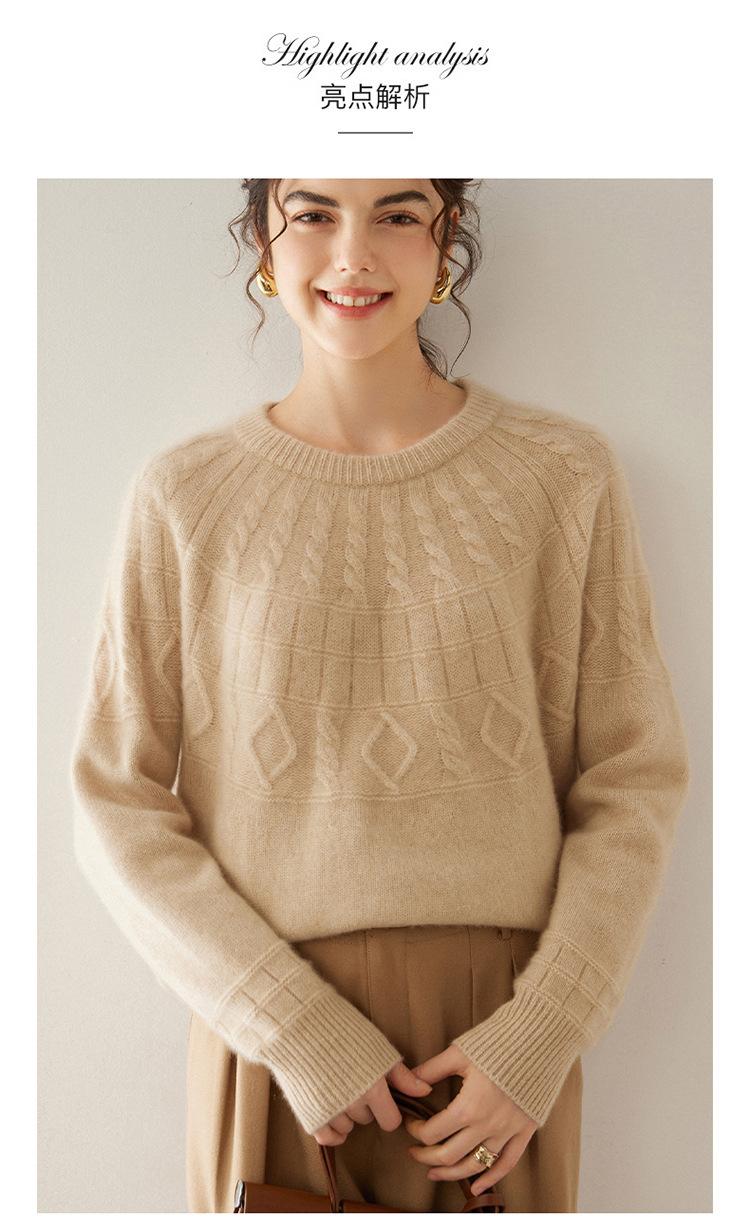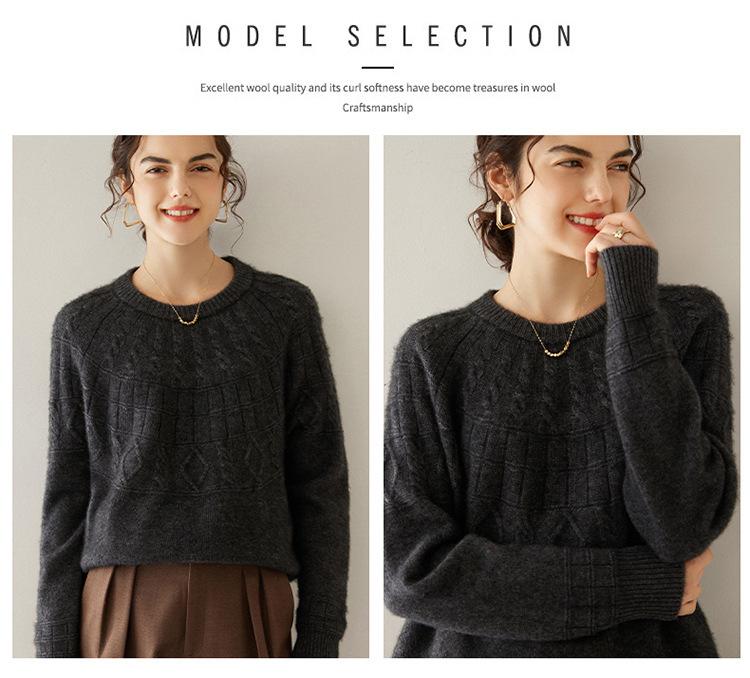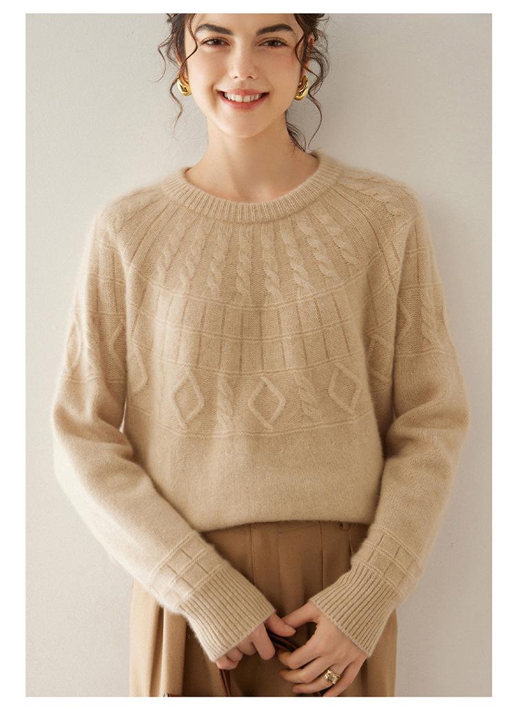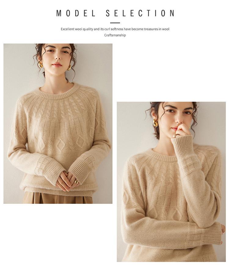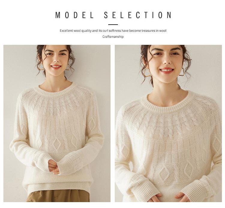 Suéter de cachemira grueso y grueso para mujer, jersey holgado de manga larga con cuello redondo y giro, suéter cálido