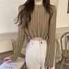Suéter de cuello redondo de punto jacquard de otoño e invierno transfronterizo europeo y americano, estilo oscuro, combinable con todo, top interior corto de manga larga y holgado