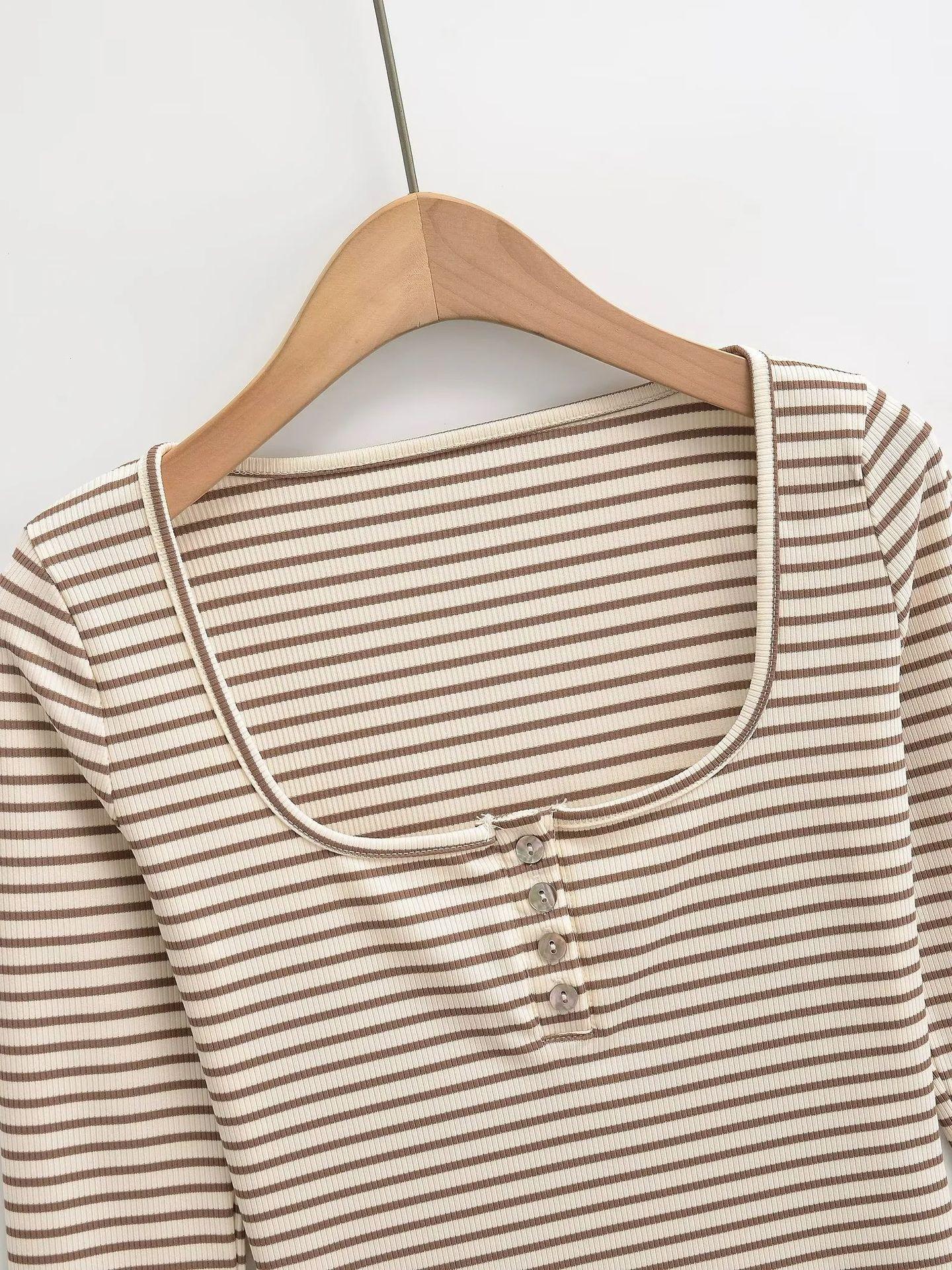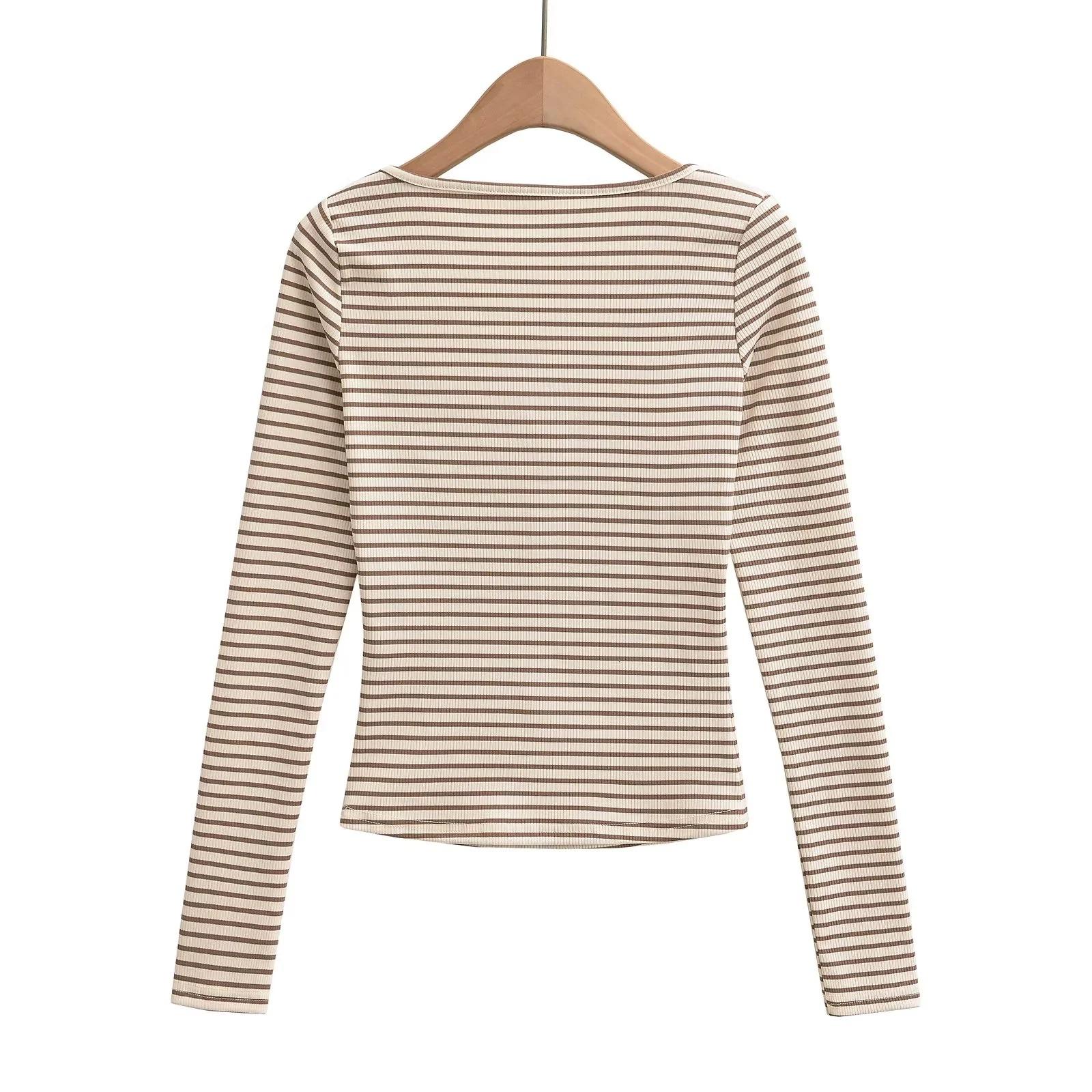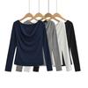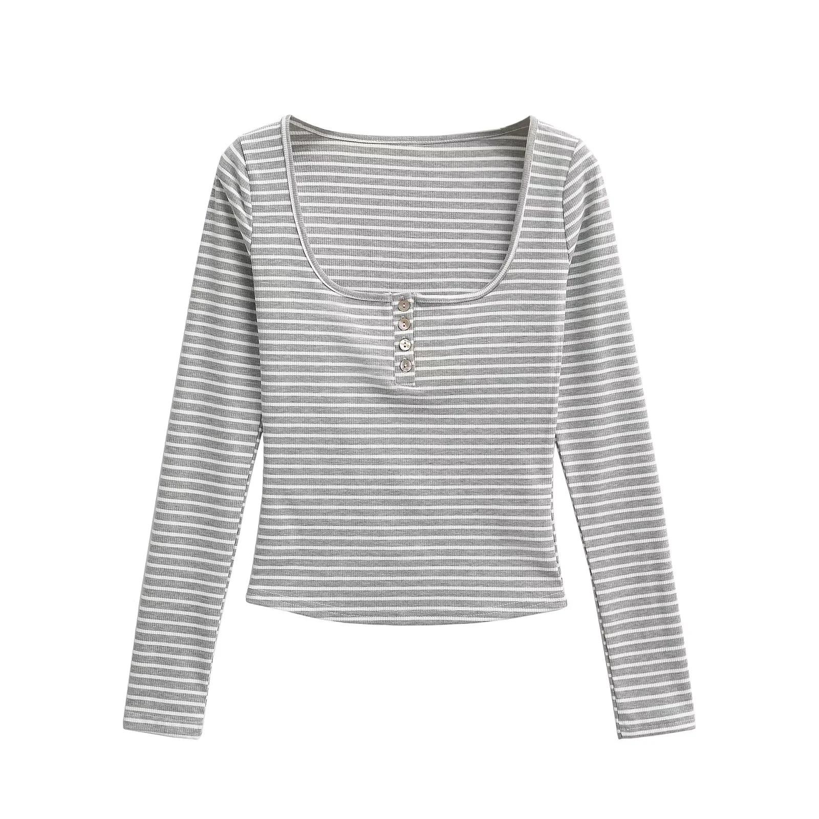 Camiseta sexy de manga larga con cuello en U profundo para mujer, estilo otoño e invierno 2024, con hebilla, corte entallado y cintura ajustada.