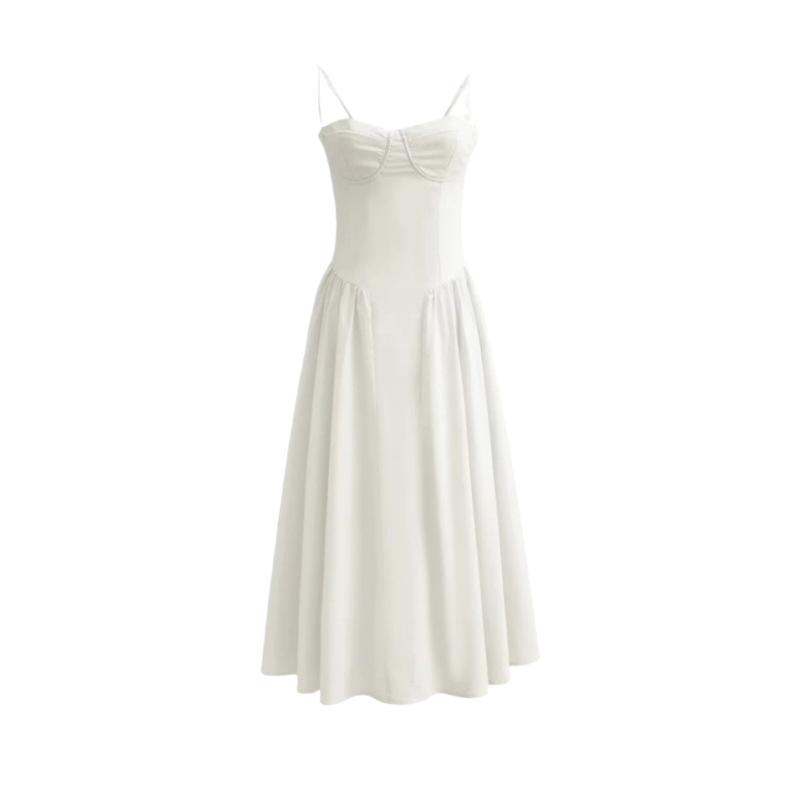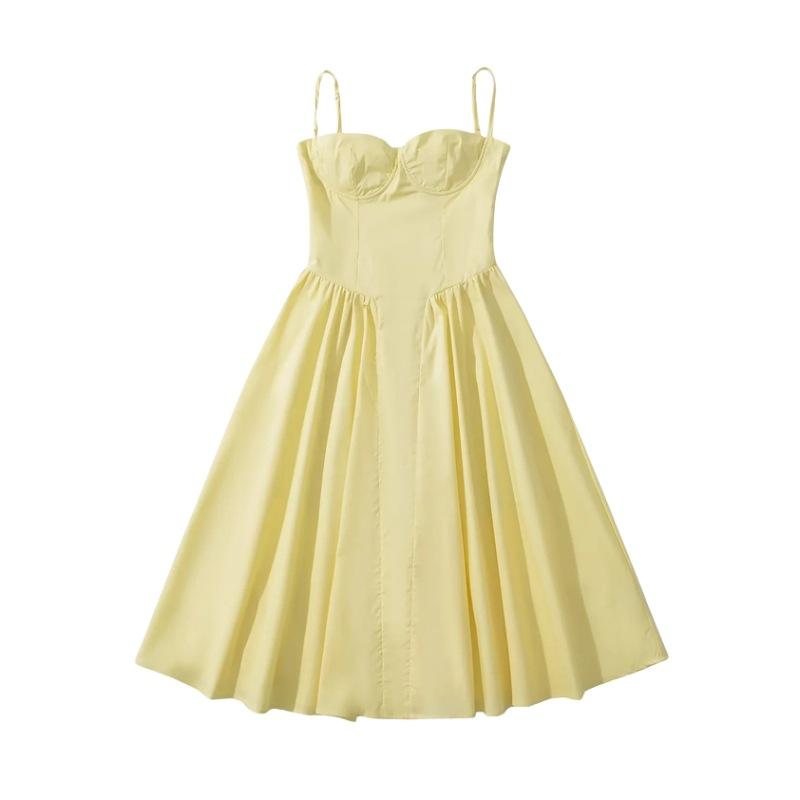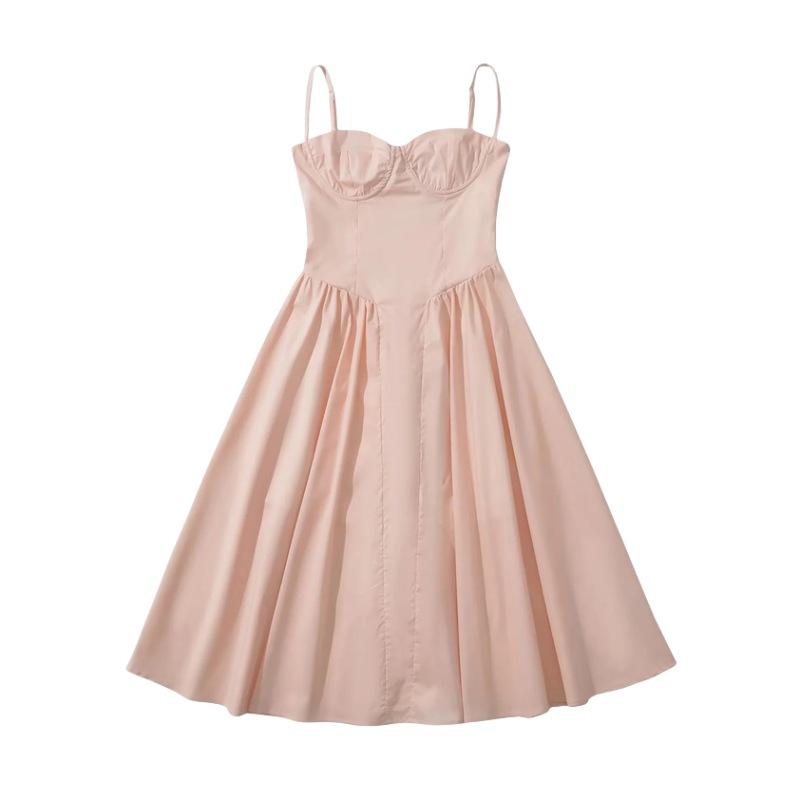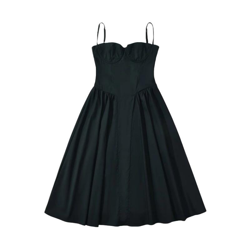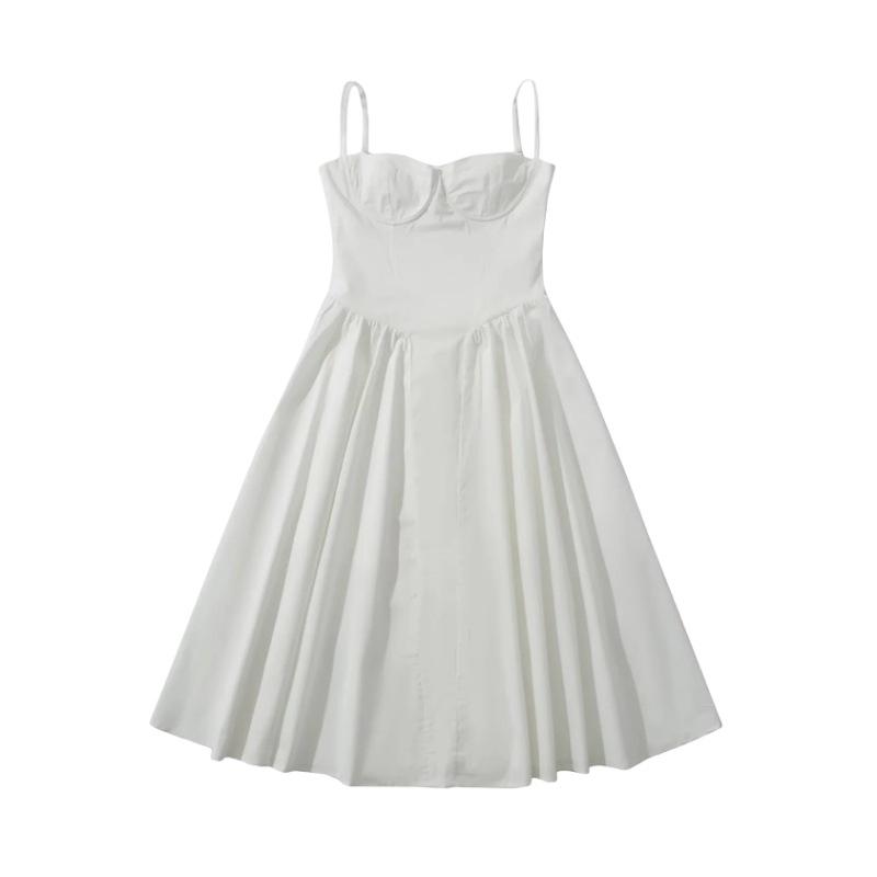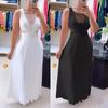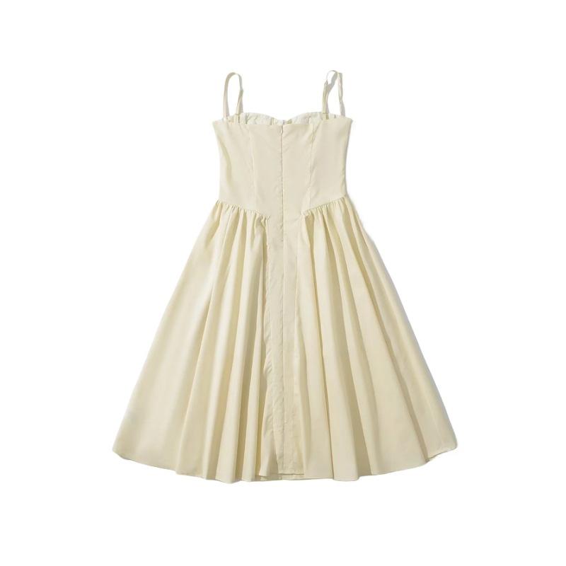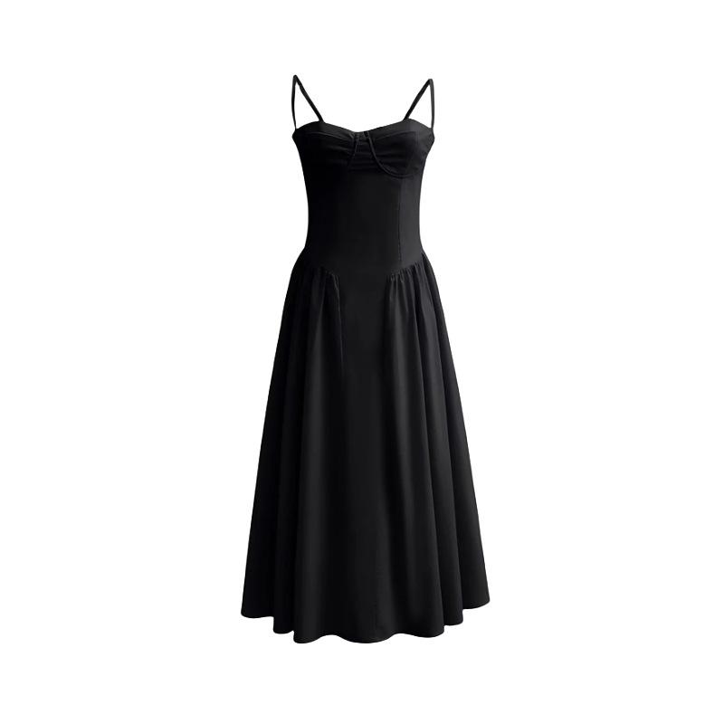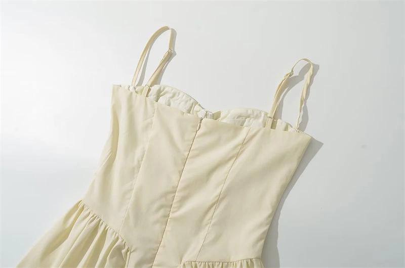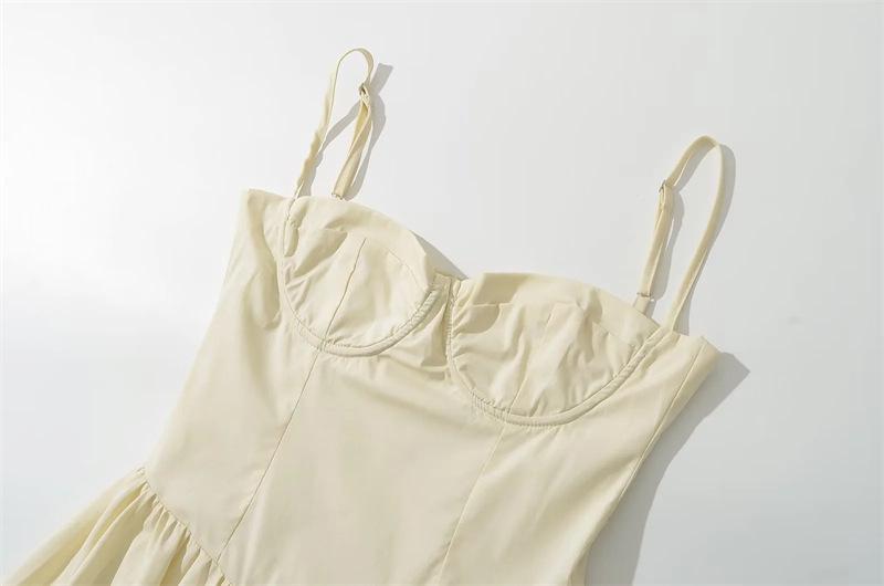 Vestido de verano para mujer, sexy, de corte bajo, con tirantes finos, cintura estrecha, espalda plisada, vestido de vuelo grande, falda larga, estilo europeo y americano