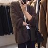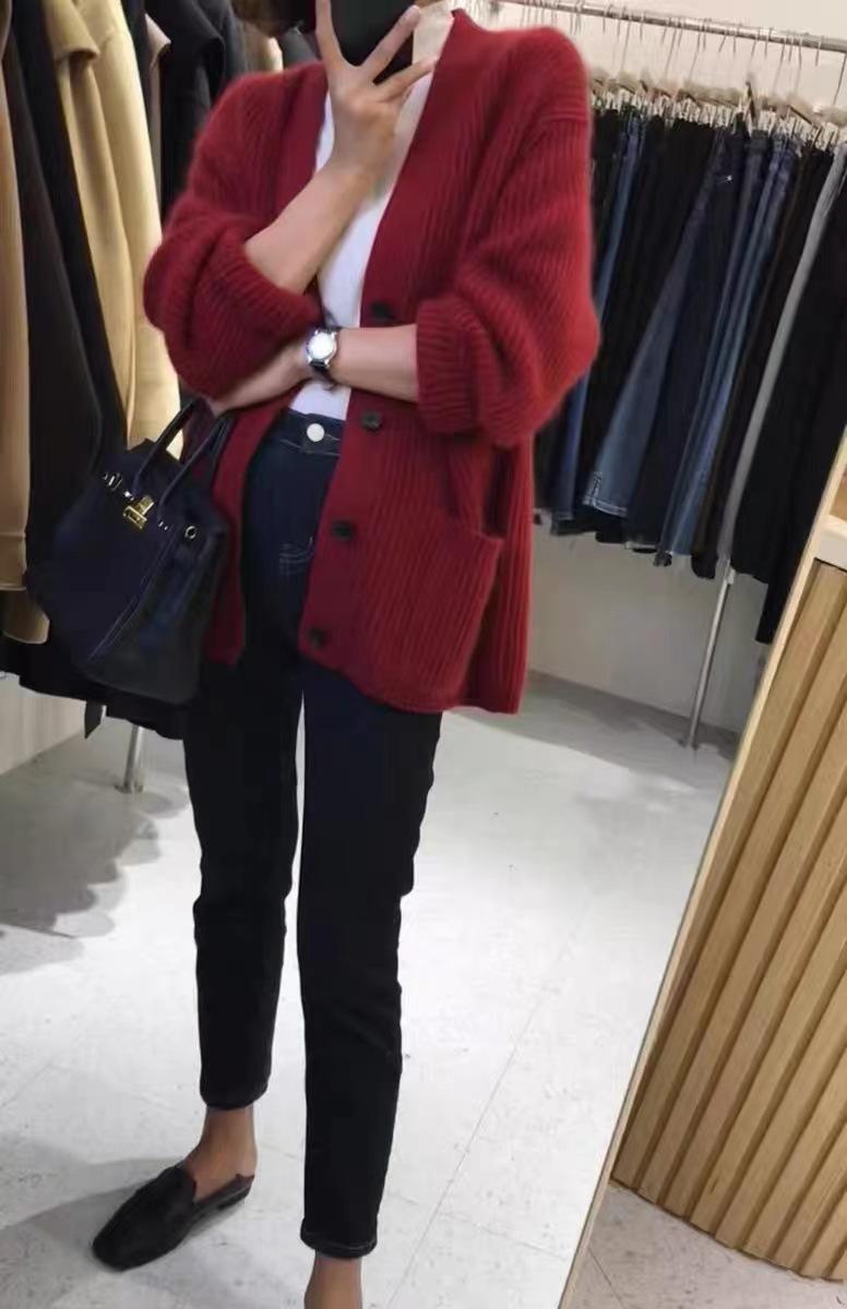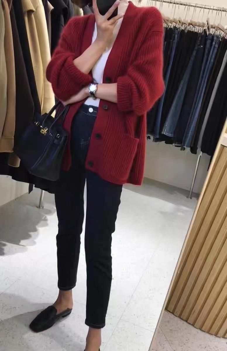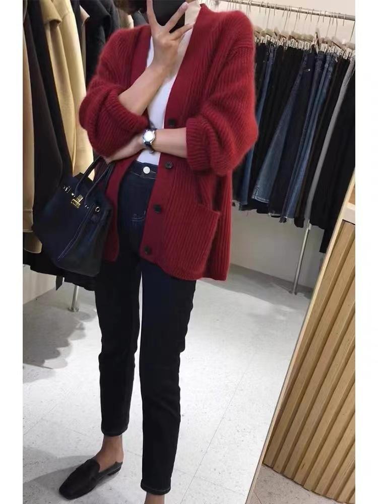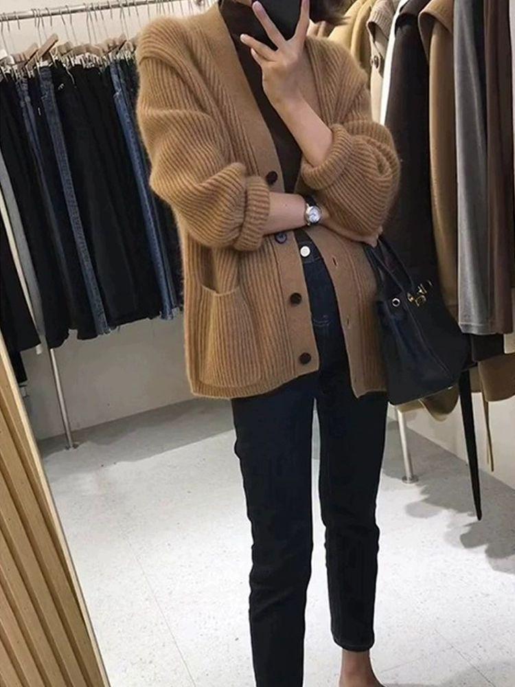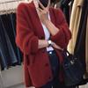 25 Suéter Grueso de Lana Perezosa para Mujer Cárdigan de Punto de Terciopelo Otoño e Invierno Estación Europea Holgado Largo Medio Cuello en V Chaqueta Exterior