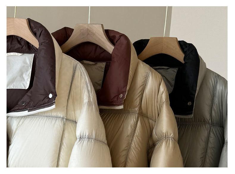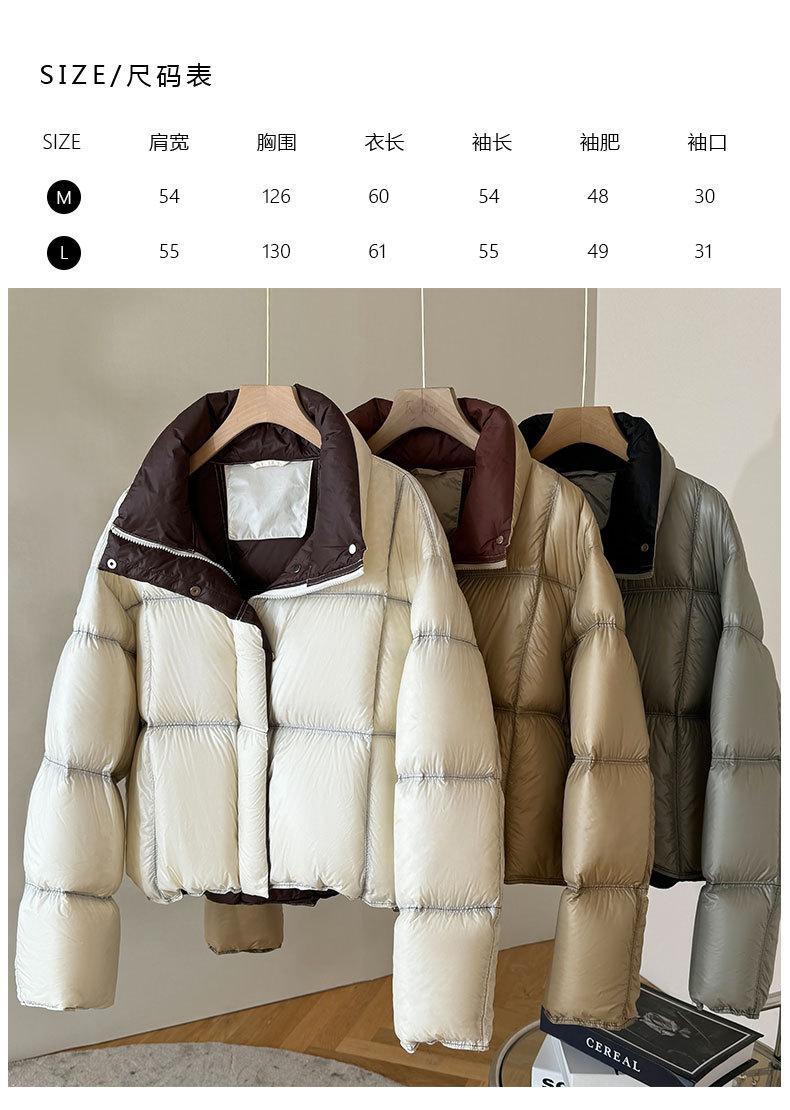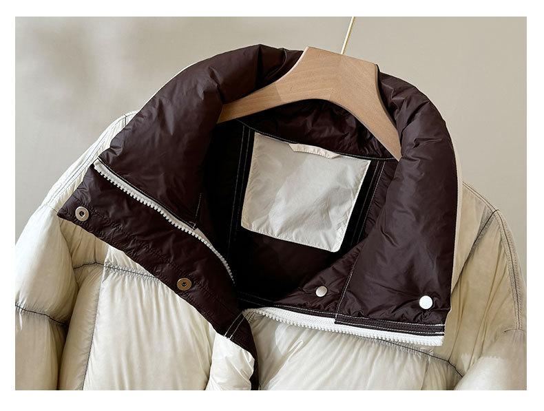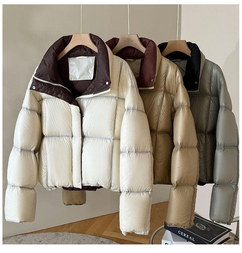 Endi 90 Plumón de Pato Blanco Chaqueta Corta de Plumón Invierno 2025 Suelta Color-Block Versátil Abrigo Acolchado para Mujer