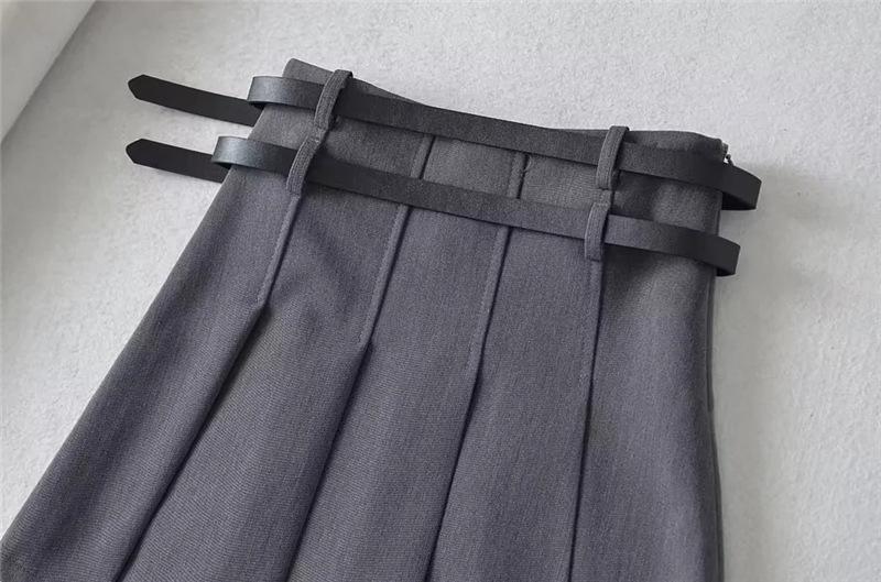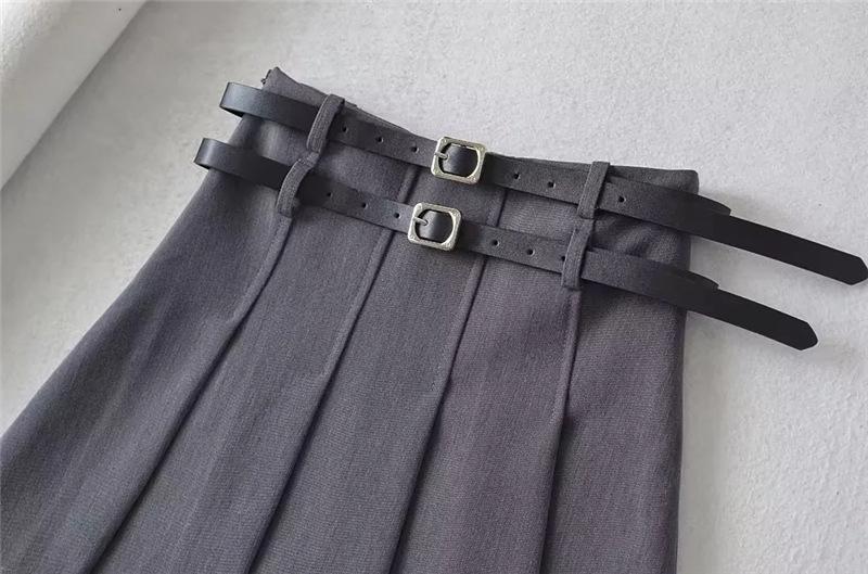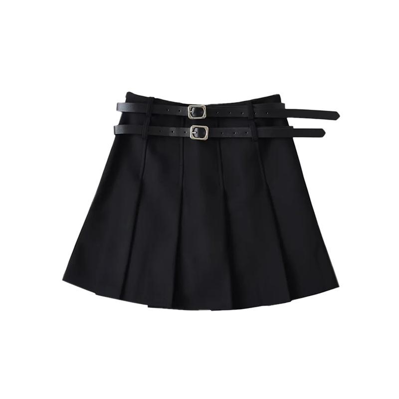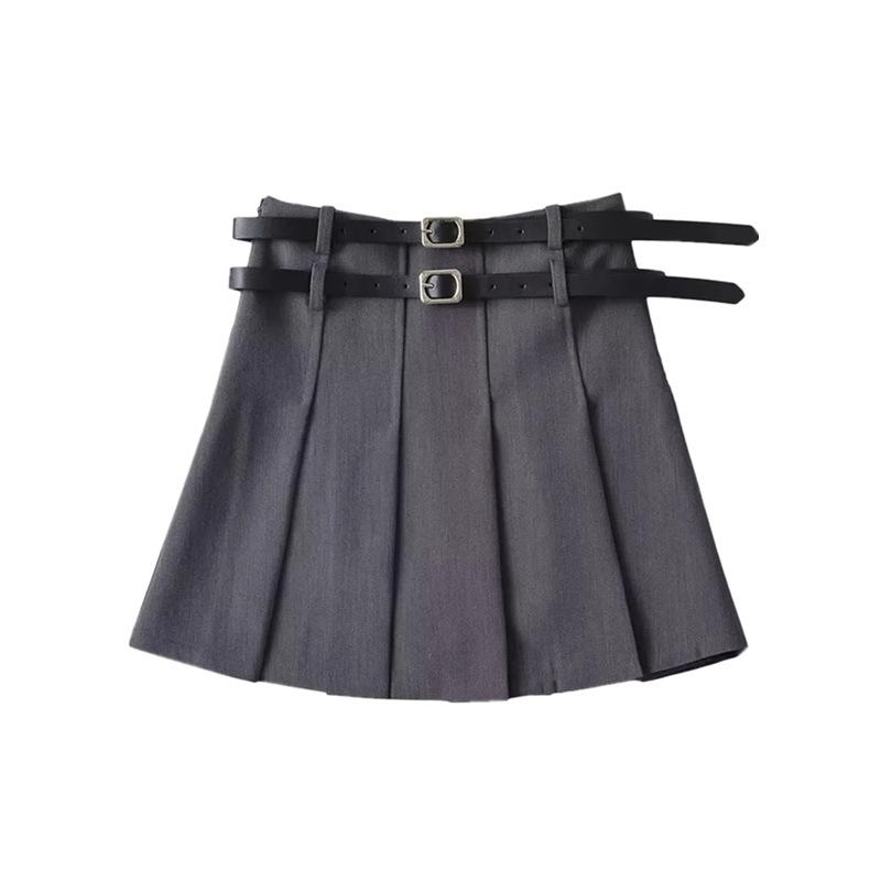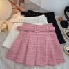 Falda plisada de cintura alta con doble cinturón para chica, estilo universitario, diseño de nicho femenino, falda corta de corte A antideslumbrante que combina con todo.