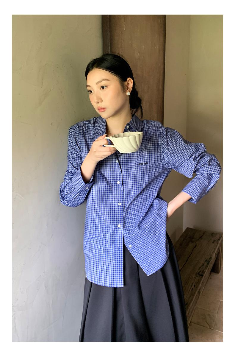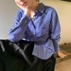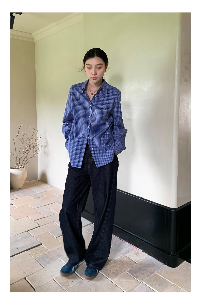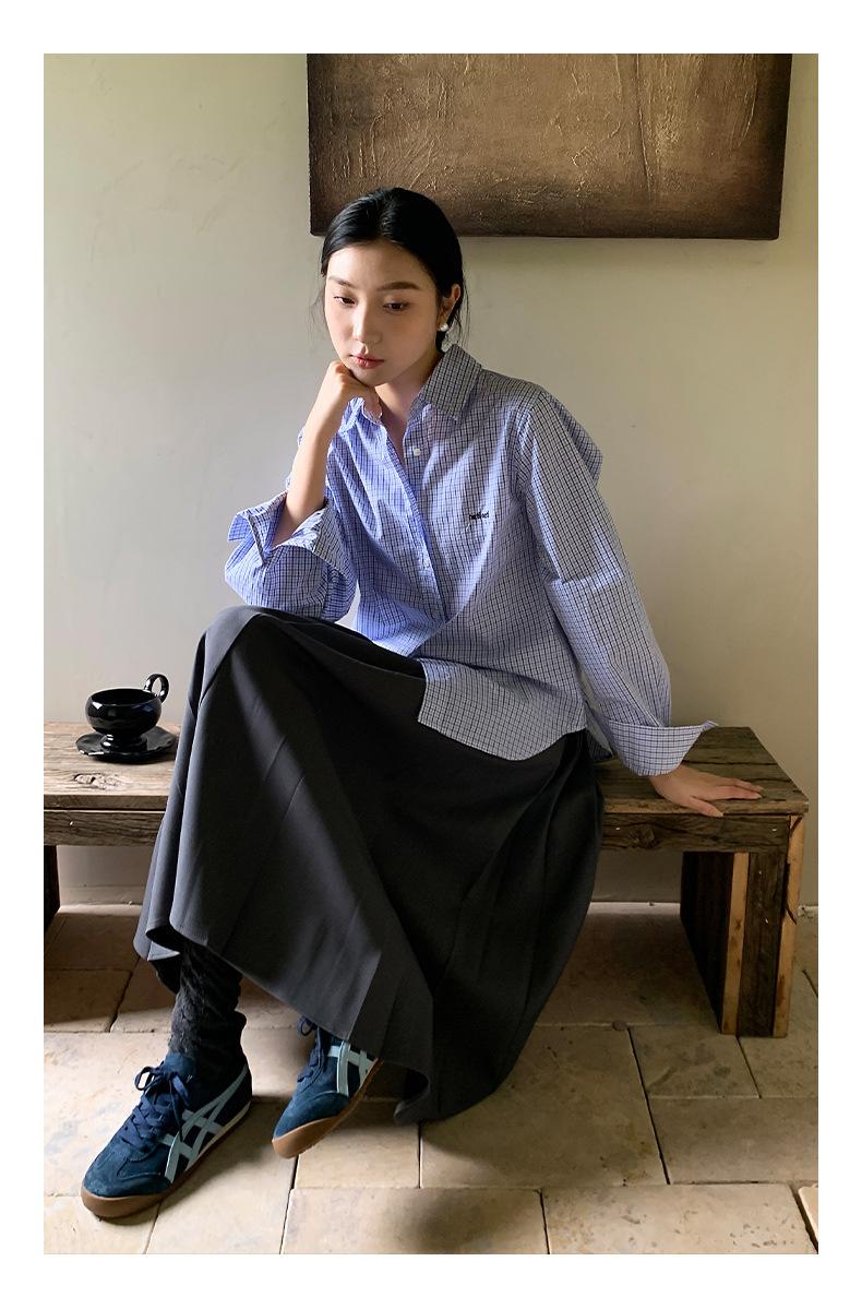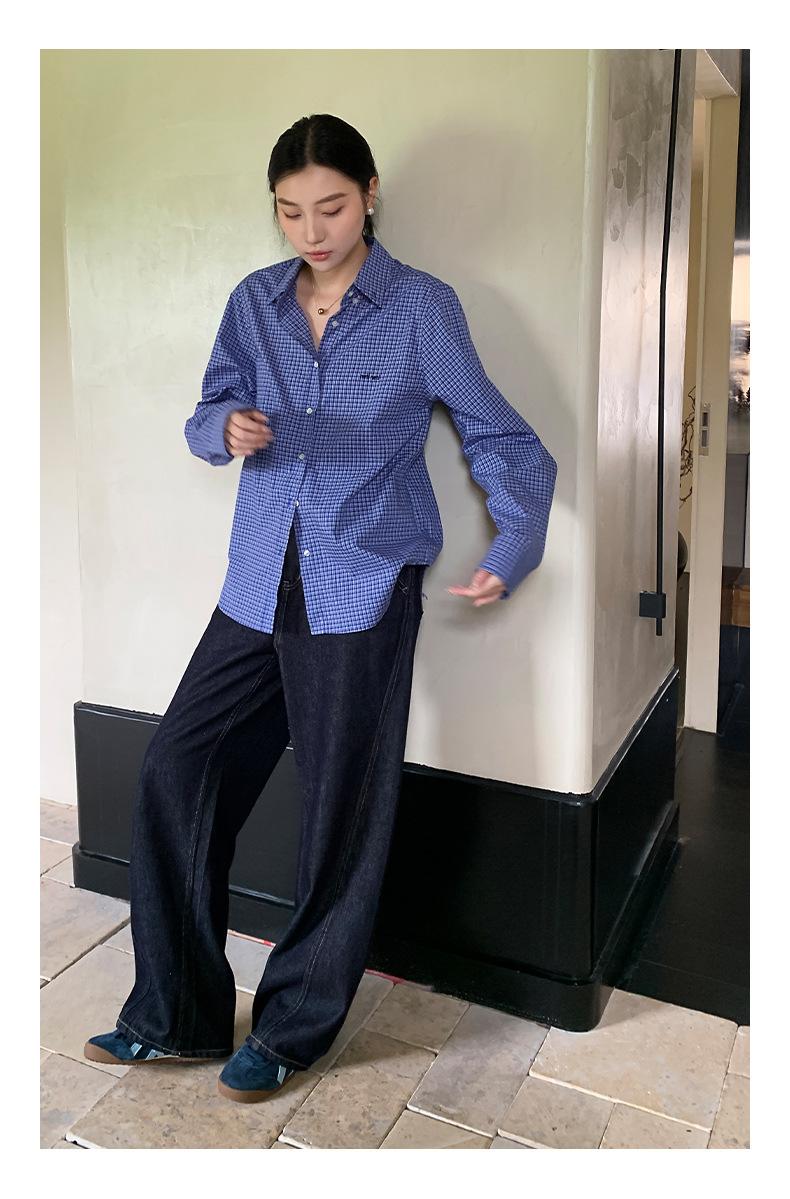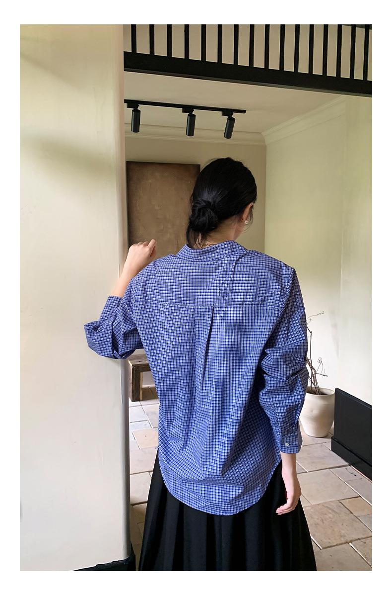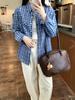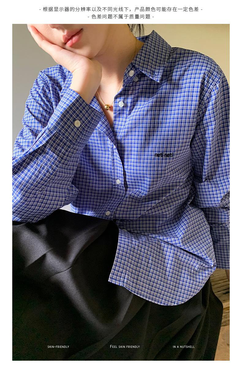 Sobrecamisa de Cuadros Azul para Mujer Otoño 2024 Nuevo Diseño Nicho Camisa Casual Holgada Manga Larga