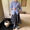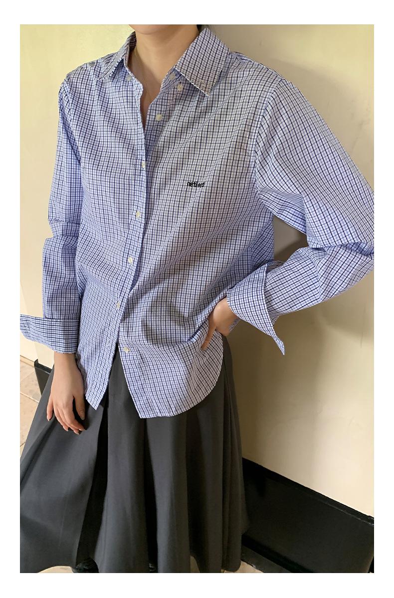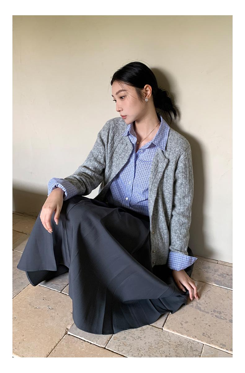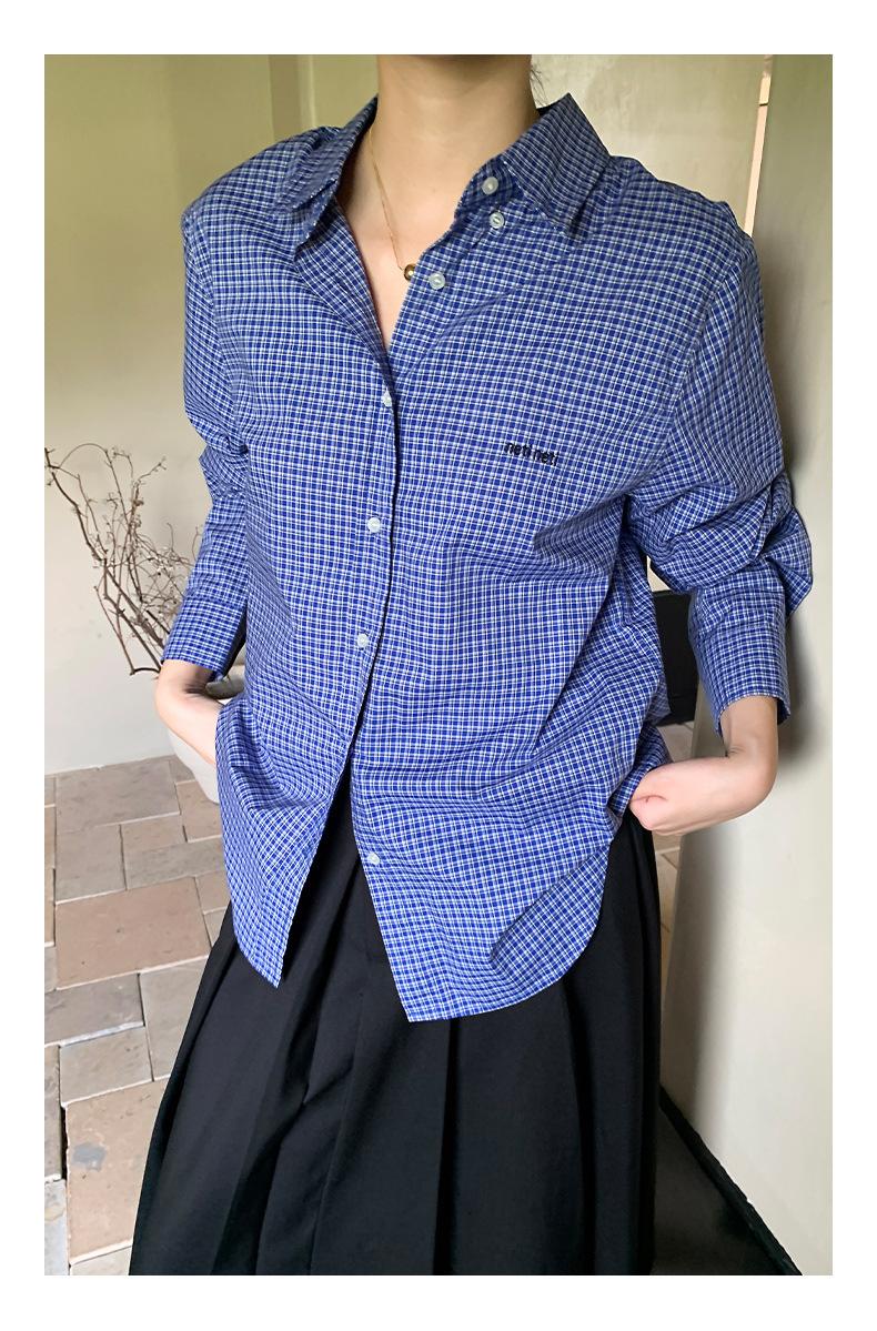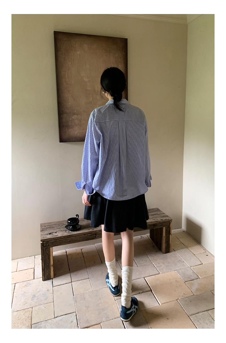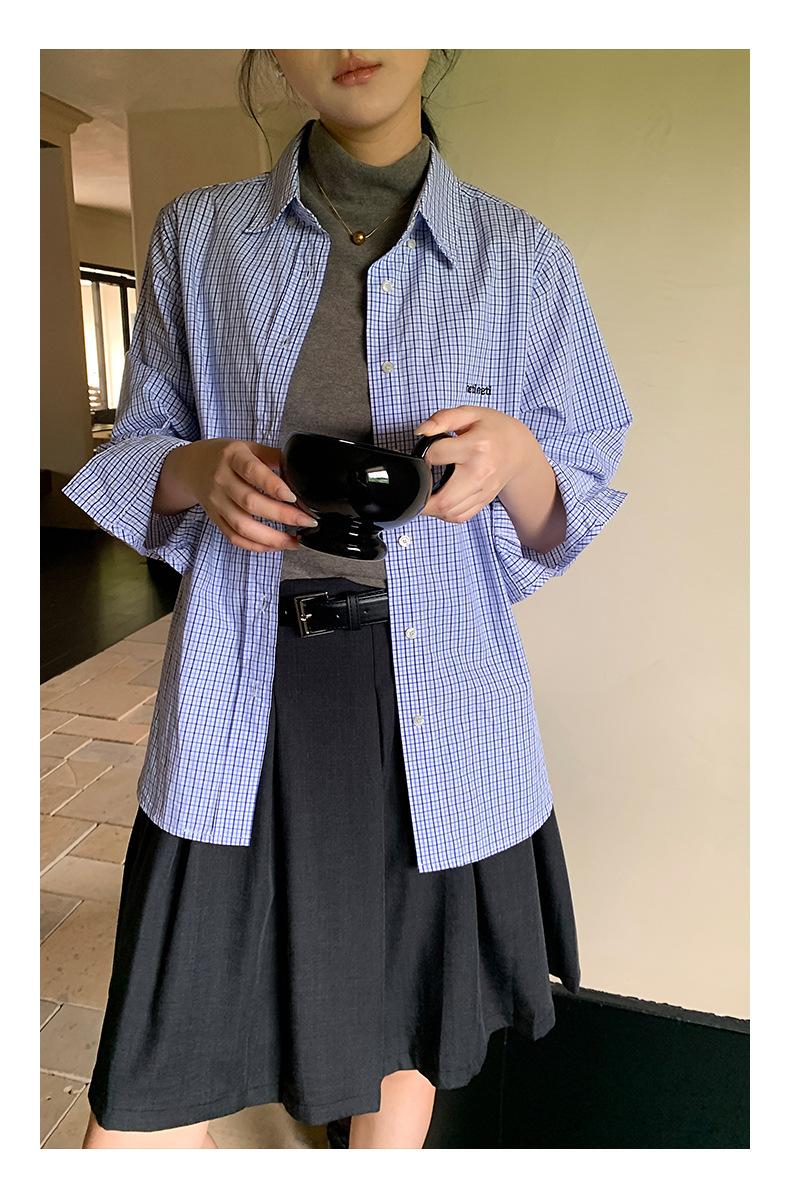 Sobrecamisa de Cuadros Azul para Mujer Otoño 2024 Nuevo Diseño Nicho Camisa Casual Holgada Manga Larga
