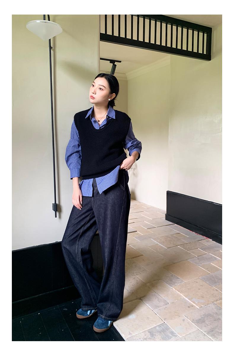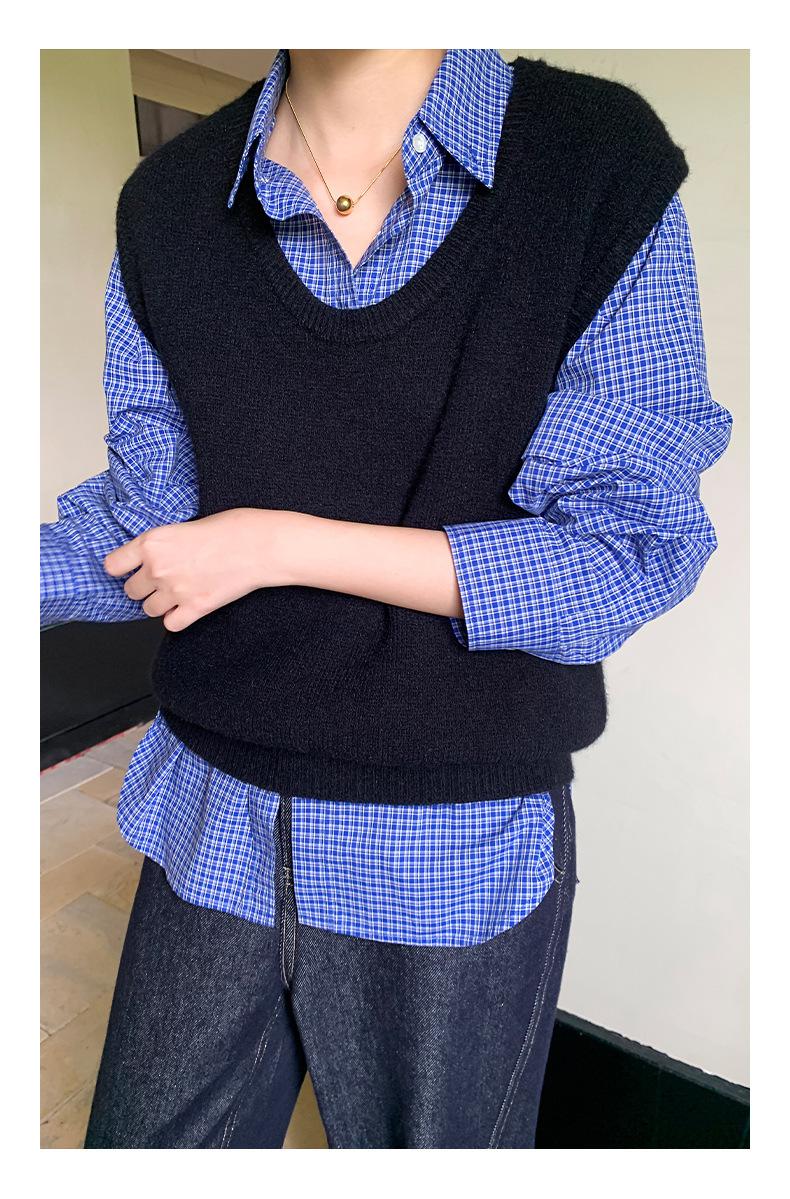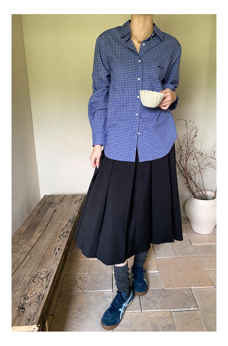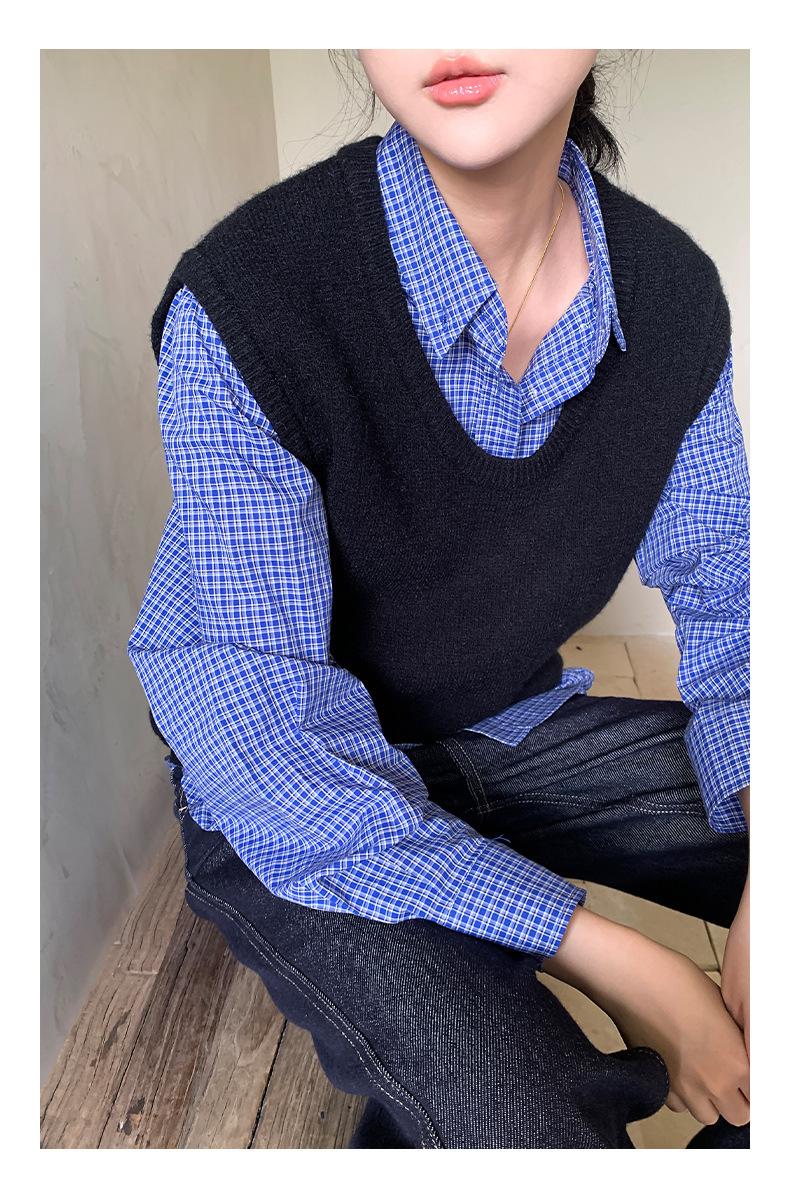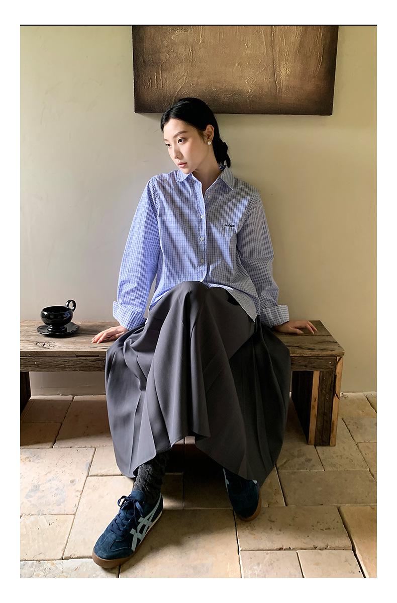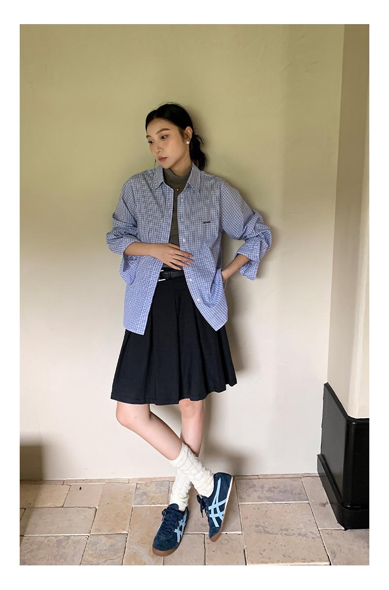 Sobrecamisa de Cuadros Azul para Mujer Otoño 2024 Nuevo Diseño Nicho Camisa Casual Holgada Manga Larga