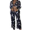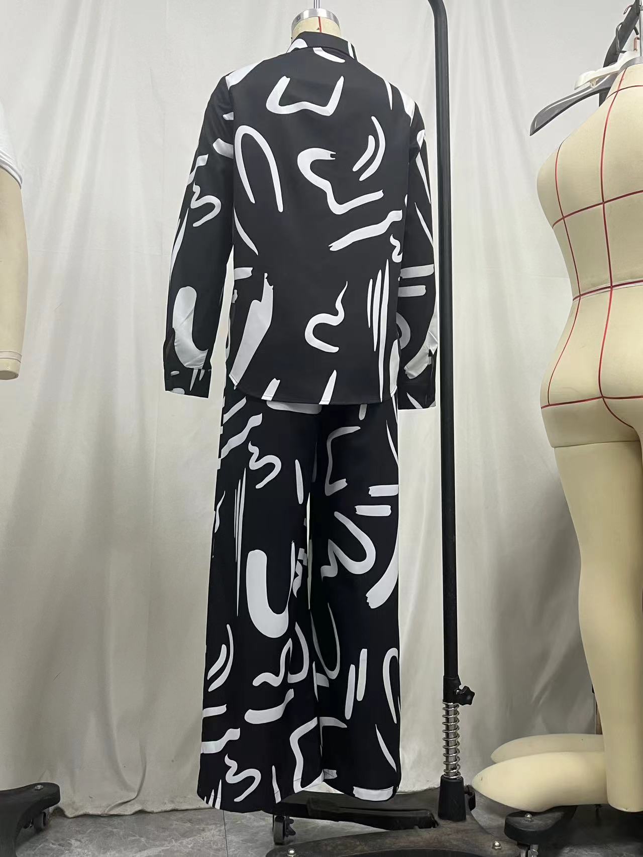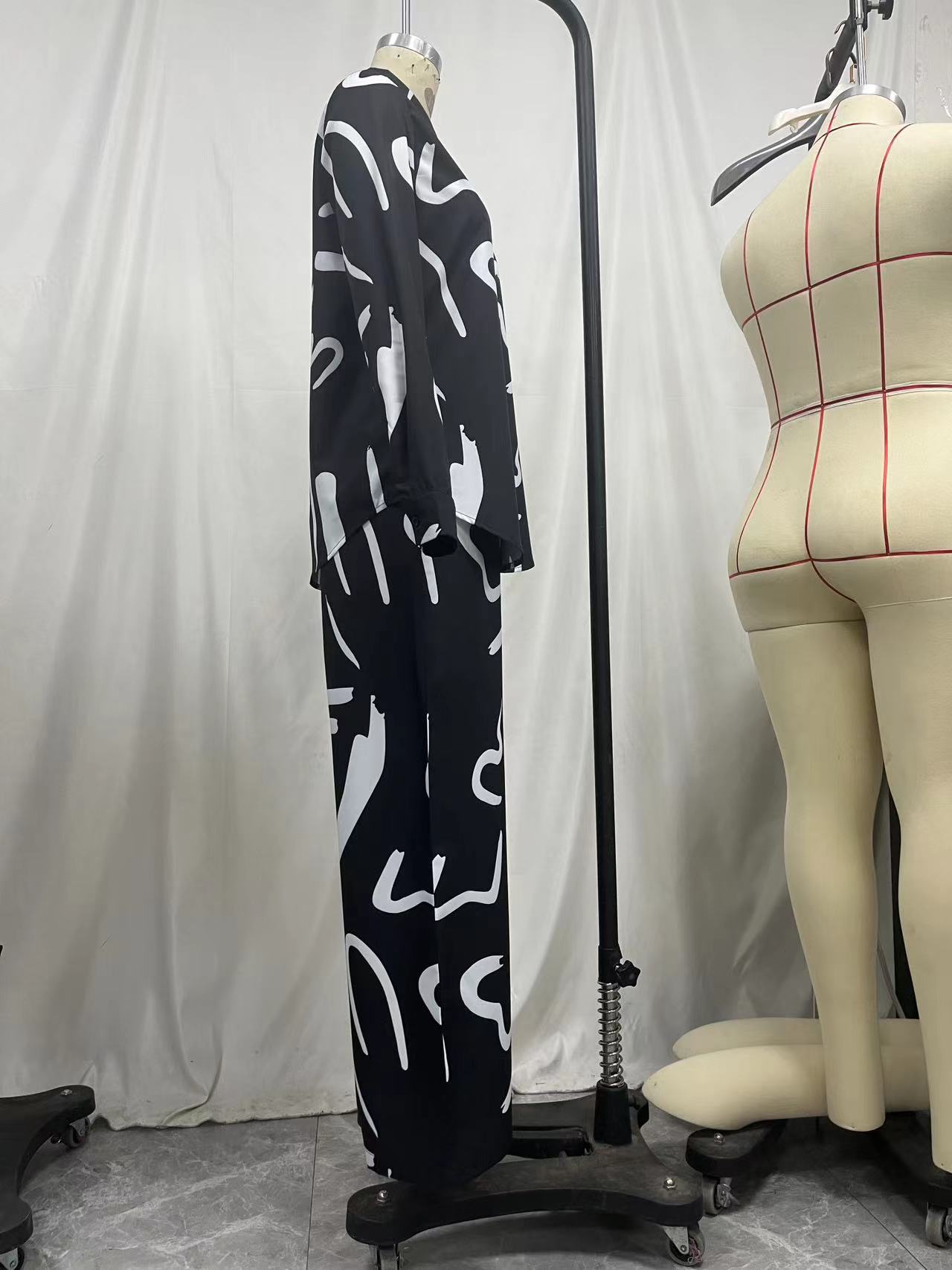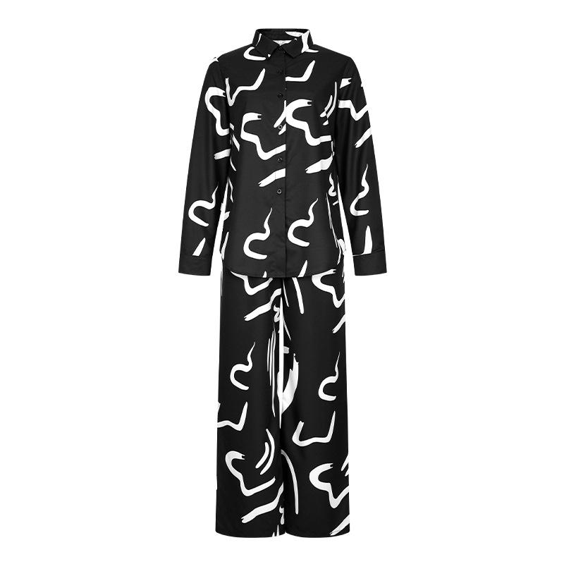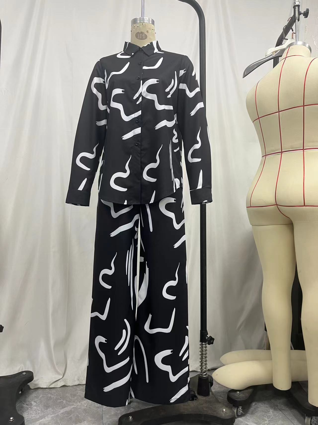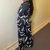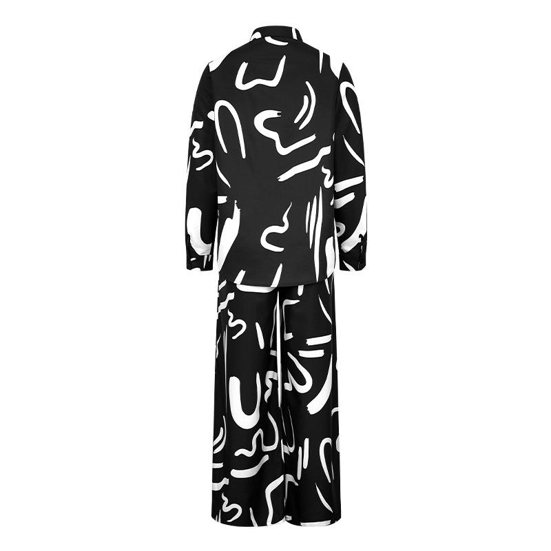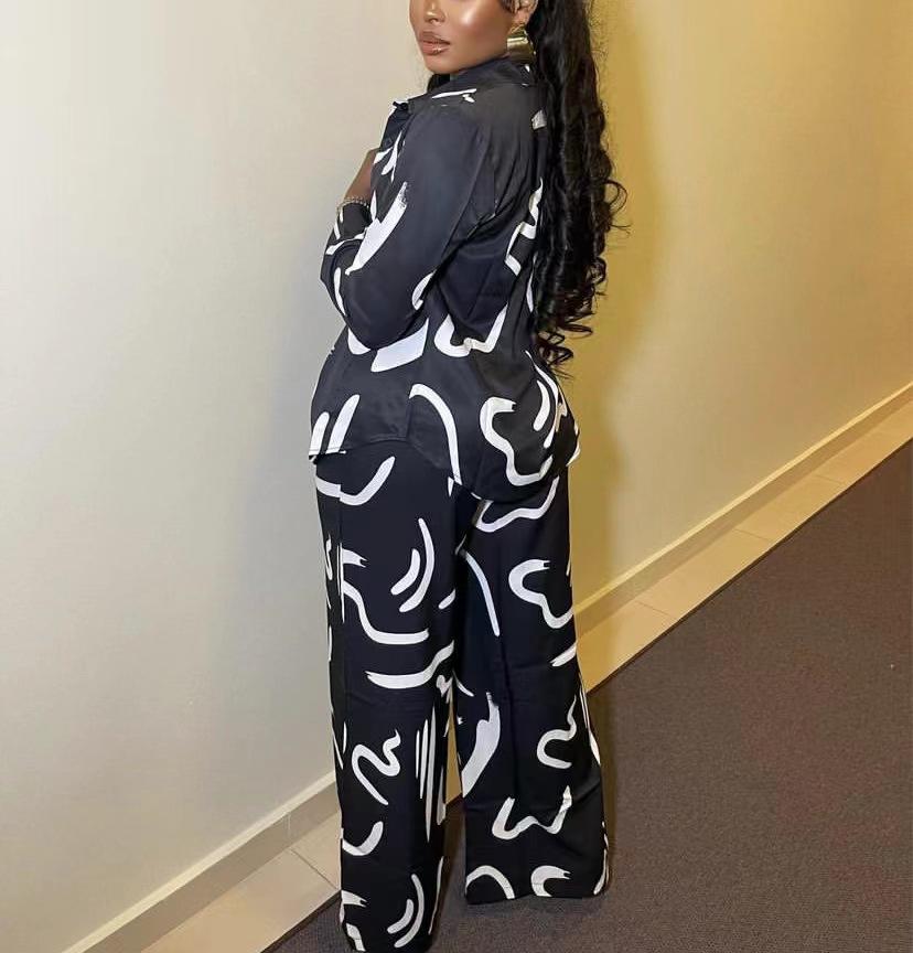 Camisa de manga larga estampada, pantalones de cintura alta, dos piezas, otoño e invierno 2023, Amazon, moda europea y americana, ropa de mujer