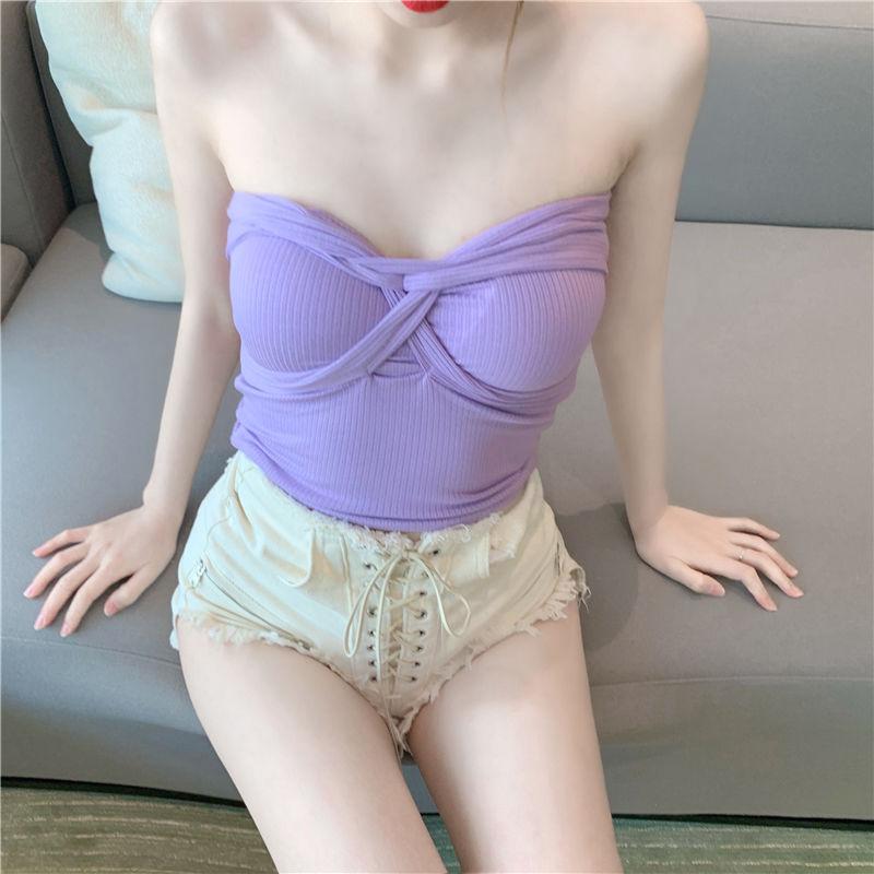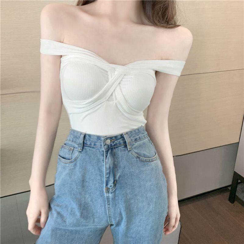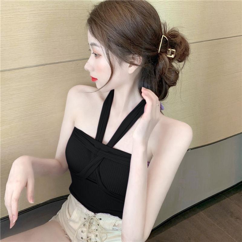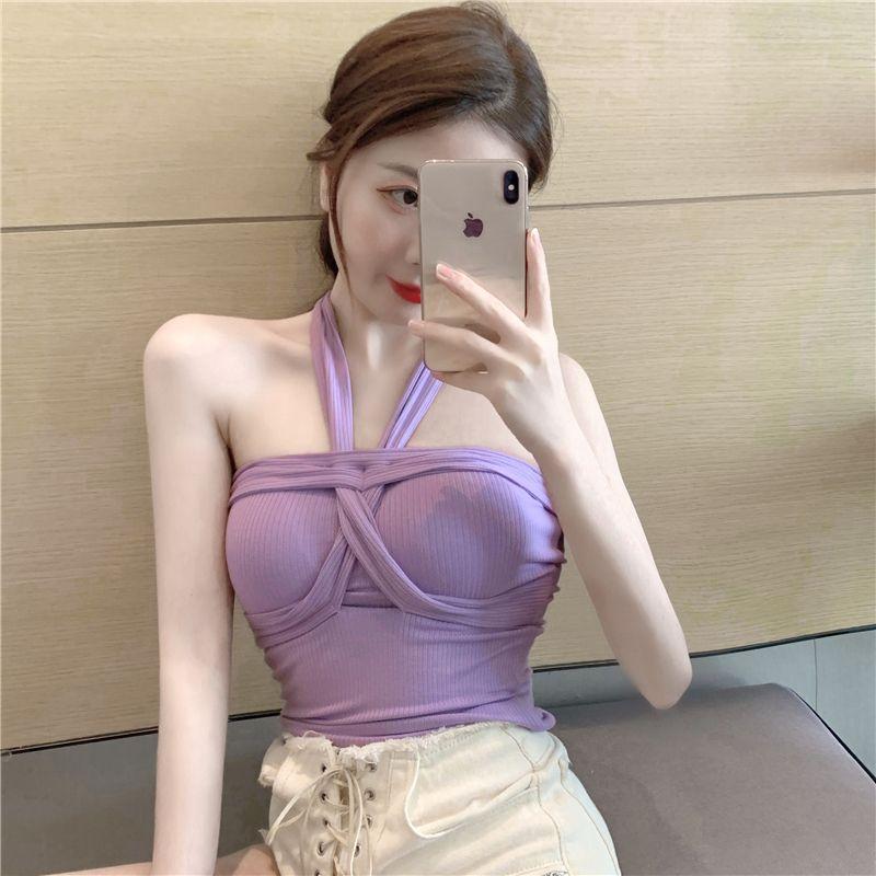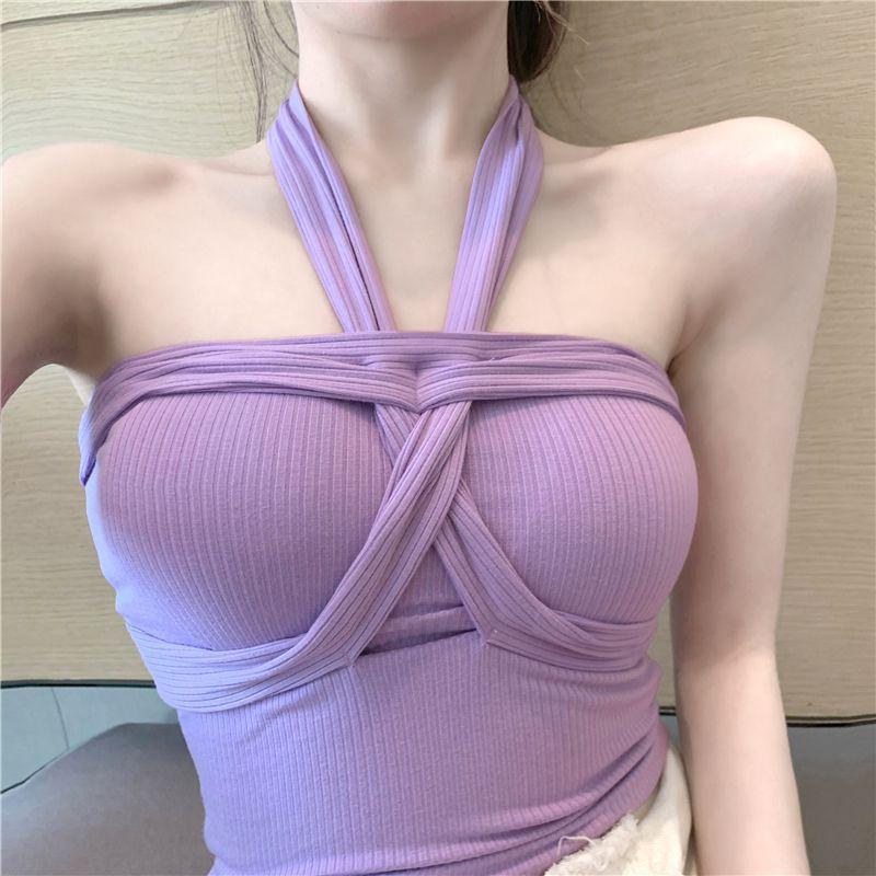 Camisola de punto con cuello halter, elegante y con lazo cruzado de celebridades de Internet, corte entallado, corta y sexy, estilo Spice Girl.