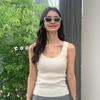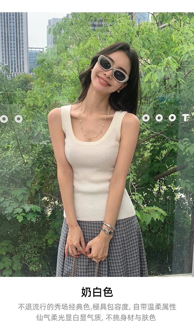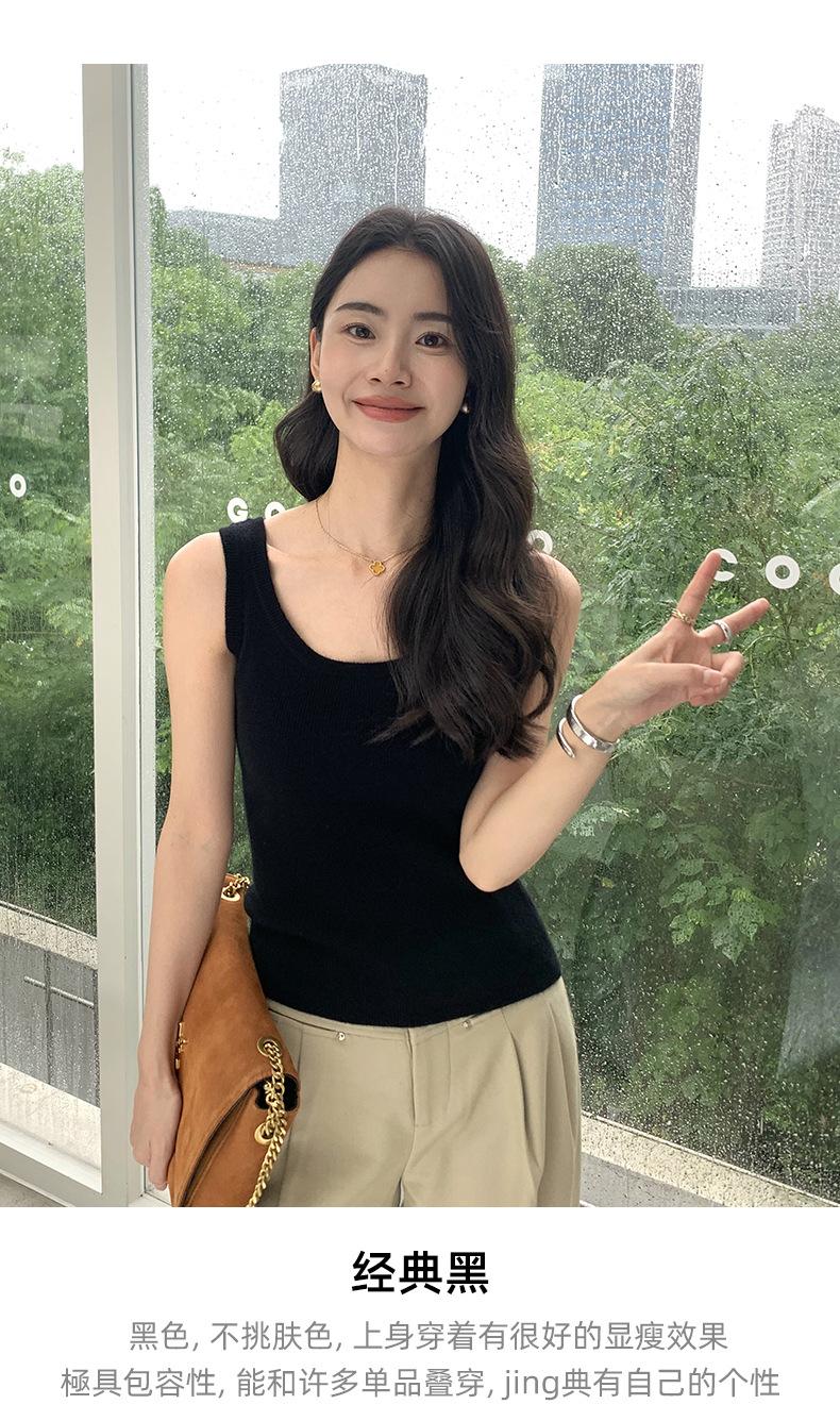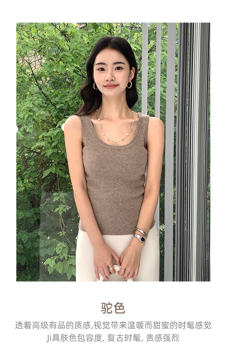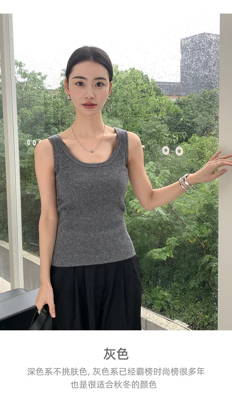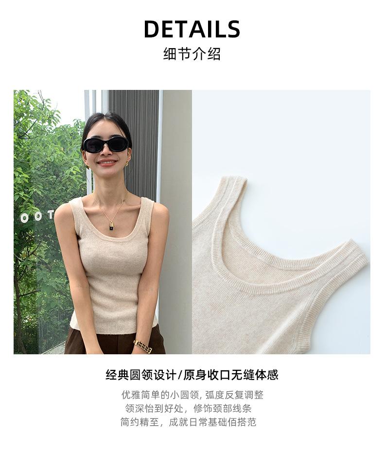 Chaleco de cachemira para mujer, top de punto sin mangas con banda ancha, cuello en U y tirantes