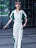 Cárdigan con capucha y cordón de color en contraste, suéter de manga corta con cremallera, traje deportivo de dos piezas para mujer, pantalones casuales antiedad