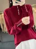 Suéter de Punto Camiseta Base para Mujer Otoño e Invierno Nuevo Estilo Occidental Suéter de Cuello Alto Medio Ajustado Manga Larga Cuello Medio Top Cálido