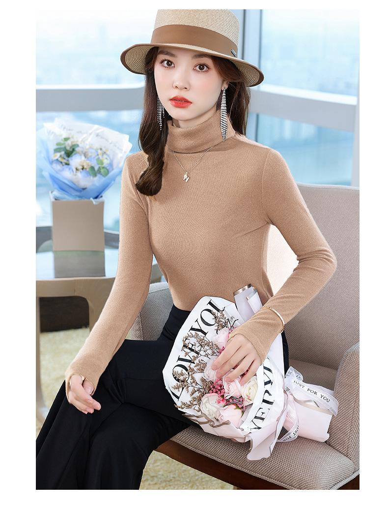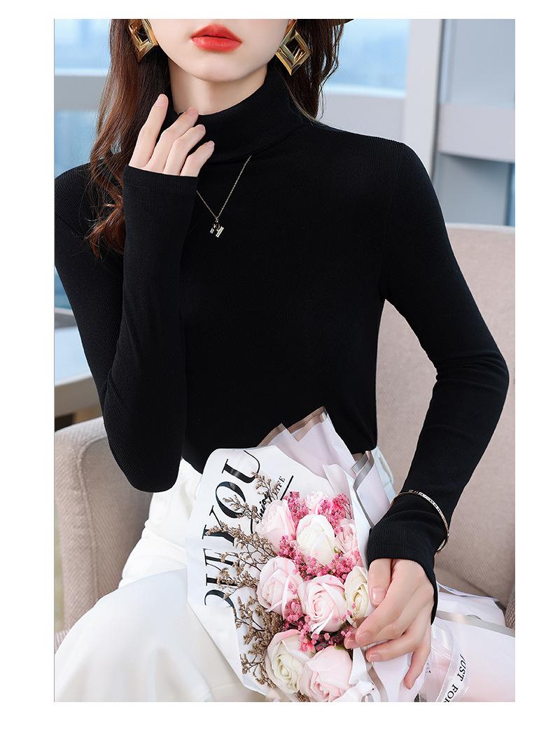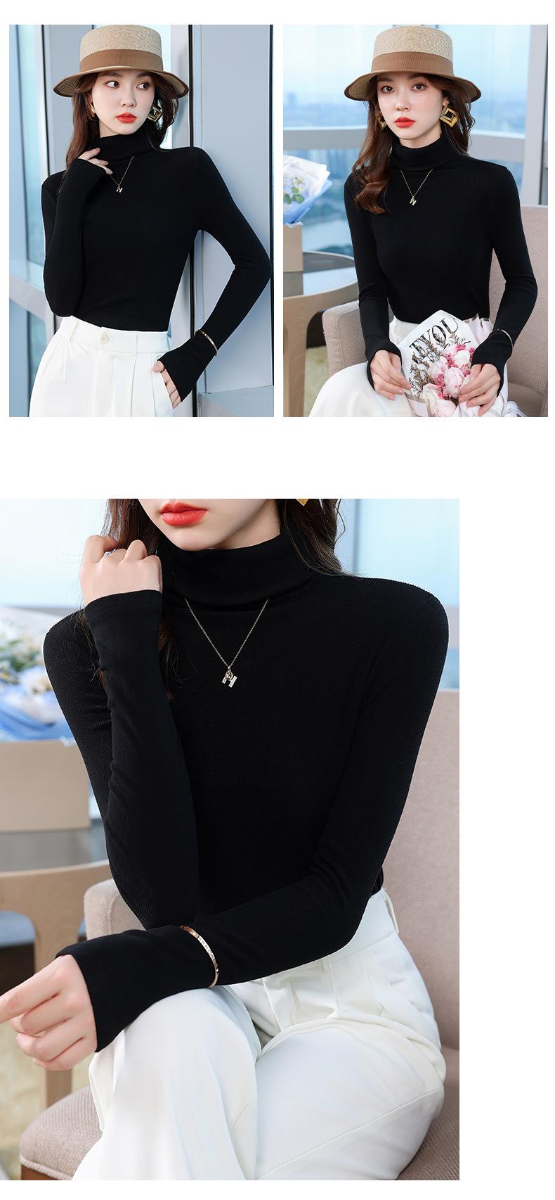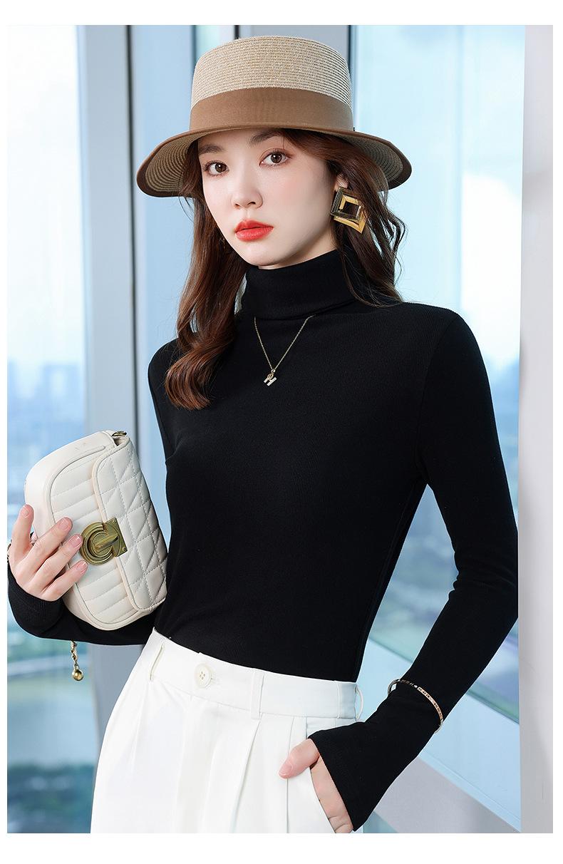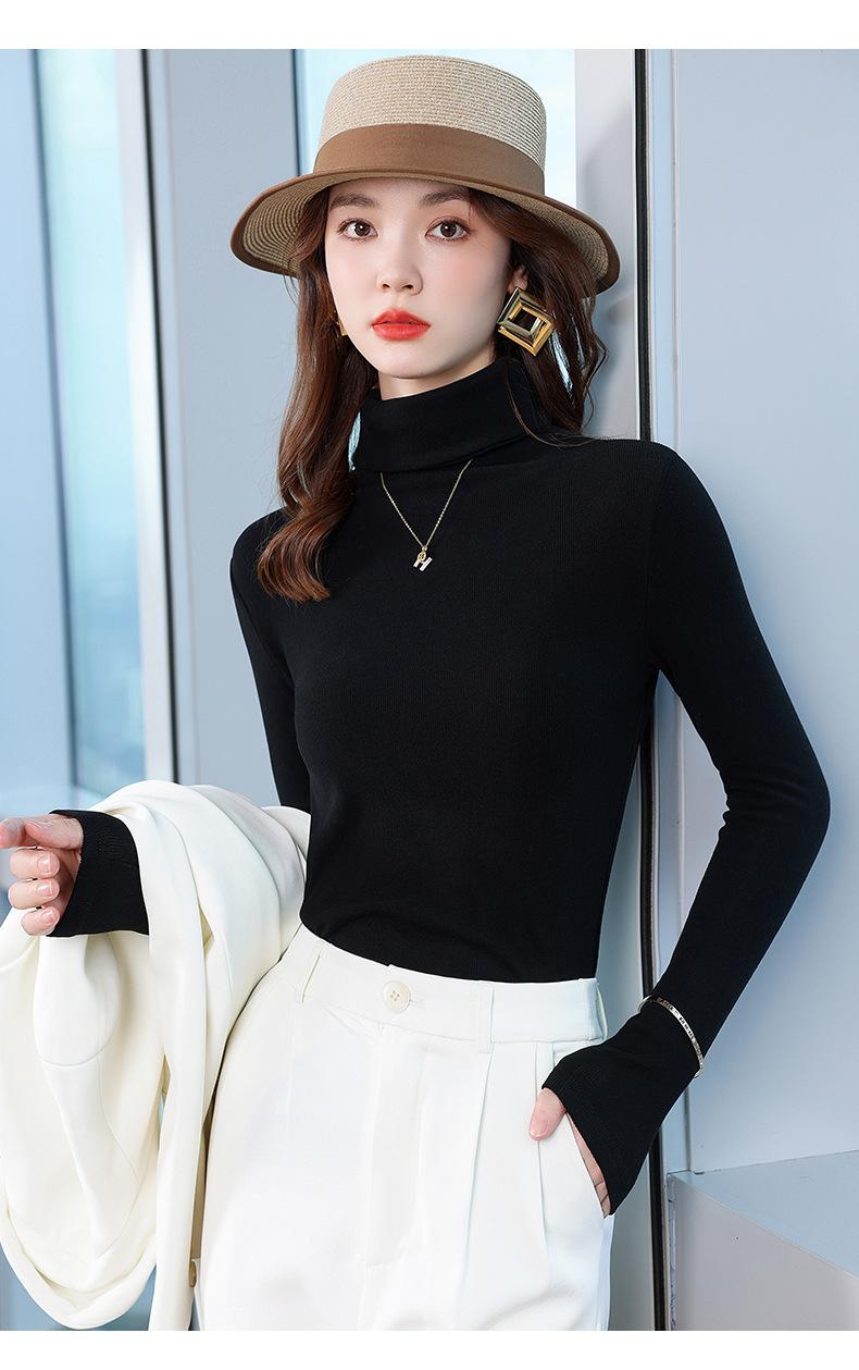 Top de Punto de Manga Larga con Cuello Alto Estilo Coreano para Mujer, Nuevo Diseño Otoño e Invierno 2025, Elegante Capa Interior para Trajes, Camiseta Base de Alta Elasticidad