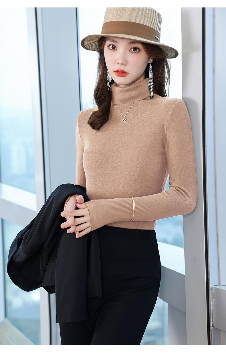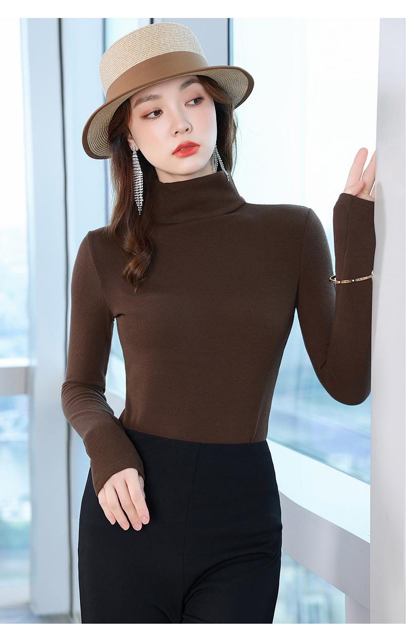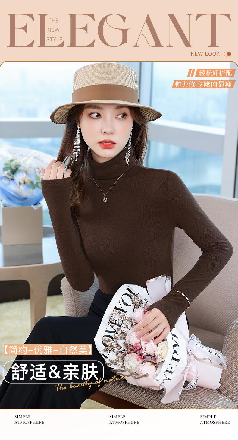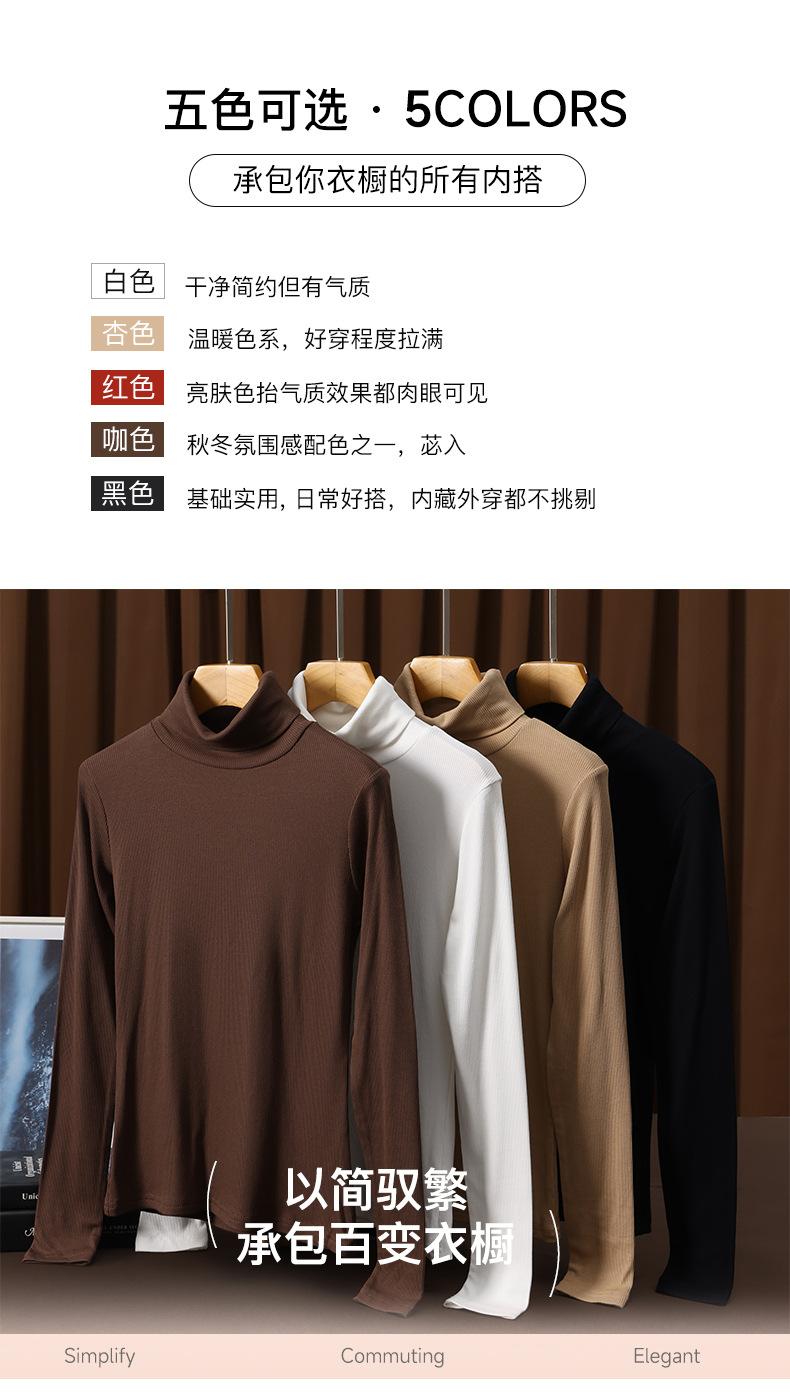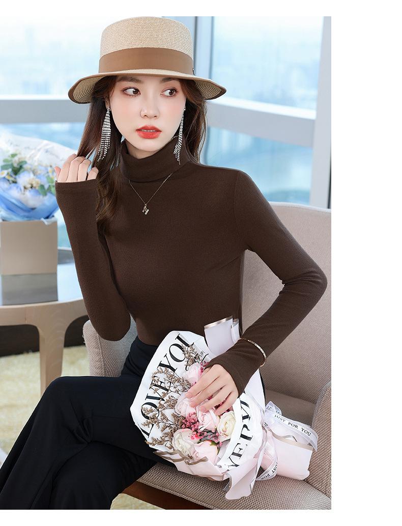 Top de Punto de Manga Larga con Cuello Alto Estilo Coreano para Mujer, Nuevo Diseño Otoño e Invierno 2025, Elegante Capa Interior para Trajes, Camiseta Base de Alta Elasticidad