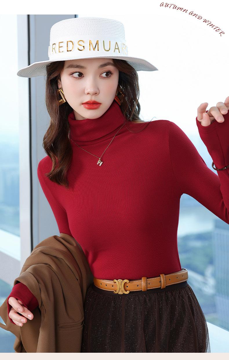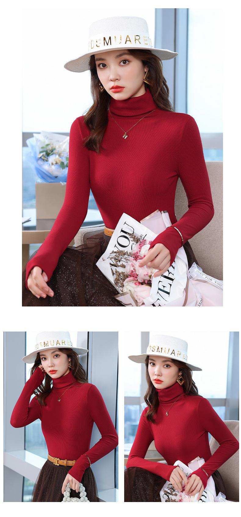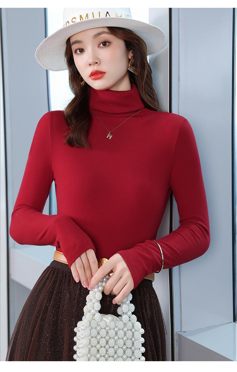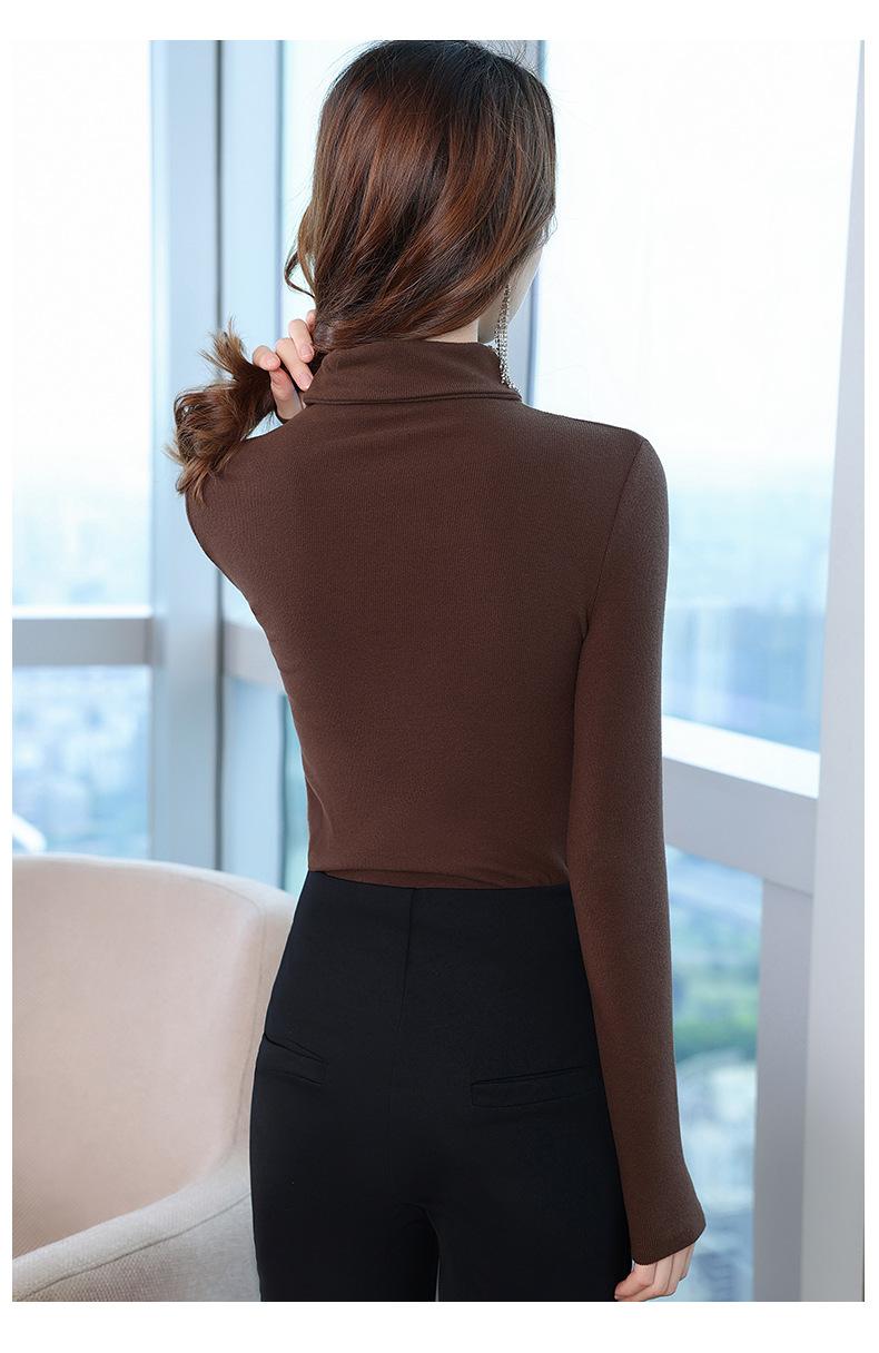 Top de Punto de Manga Larga con Cuello Alto Estilo Coreano para Mujer, Nuevo Diseño Otoño e Invierno 2025, Elegante Capa Interior para Trajes, Camiseta Base de Alta Elasticidad