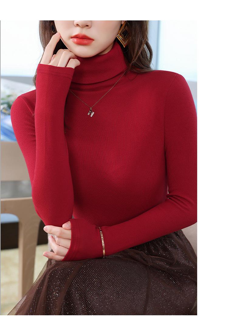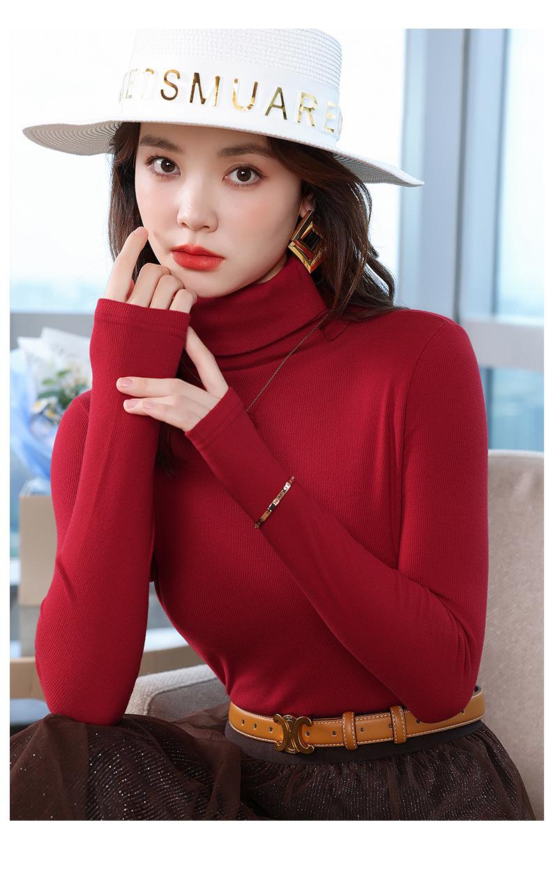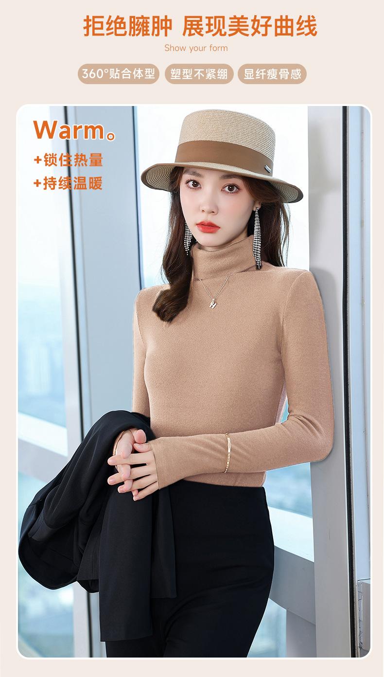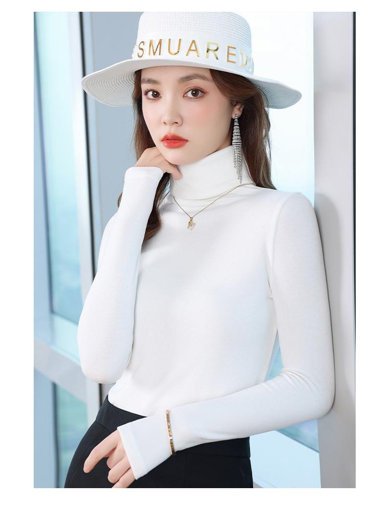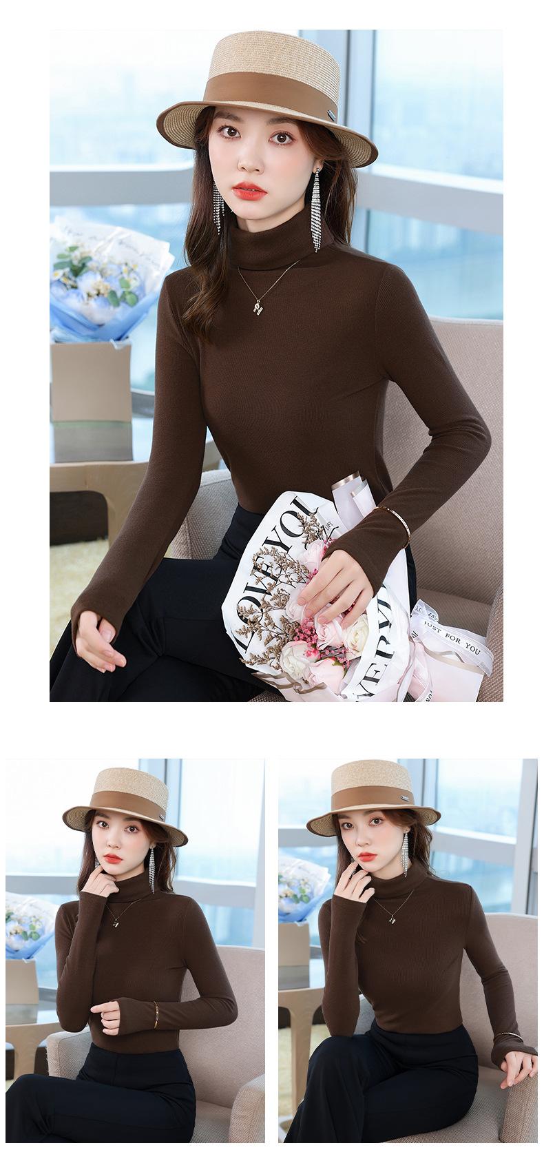 Top de Punto de Manga Larga con Cuello Alto Estilo Coreano para Mujer, Nuevo Diseño Otoño e Invierno 2025, Elegante Capa Interior para Trajes, Camiseta Base de Alta Elasticidad