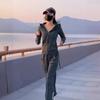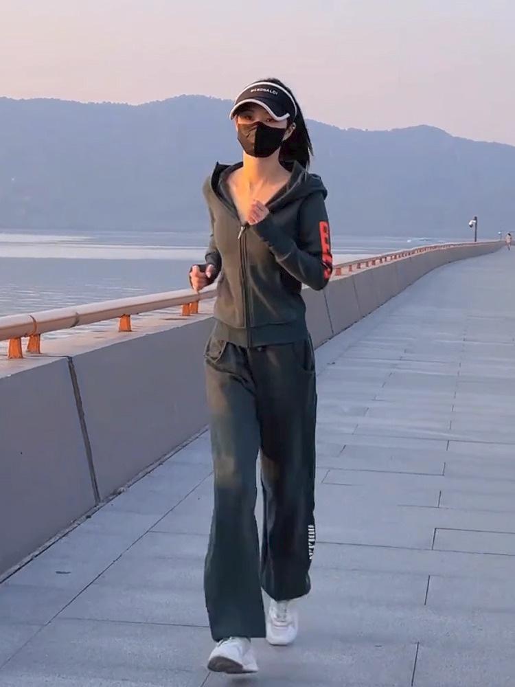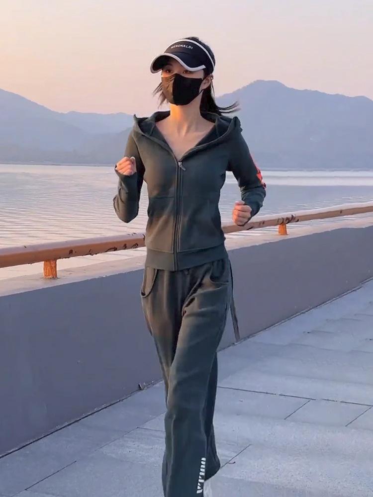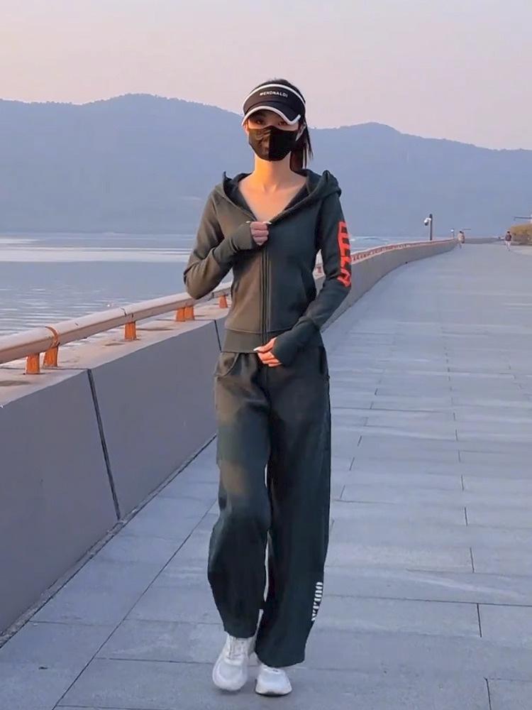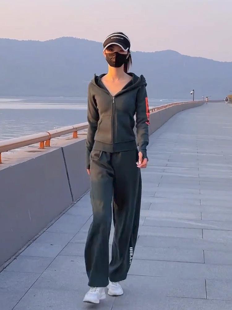 Traje de Celebridad de Internet Dulce Genial Popular Casual Estilo Deportivo Nuevo Cárdigan con Capucha Verde Ajustado Manga Larga Dos Piezas Ropa de Mujer