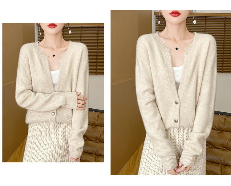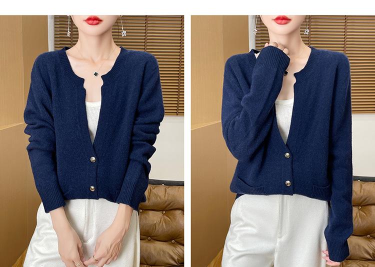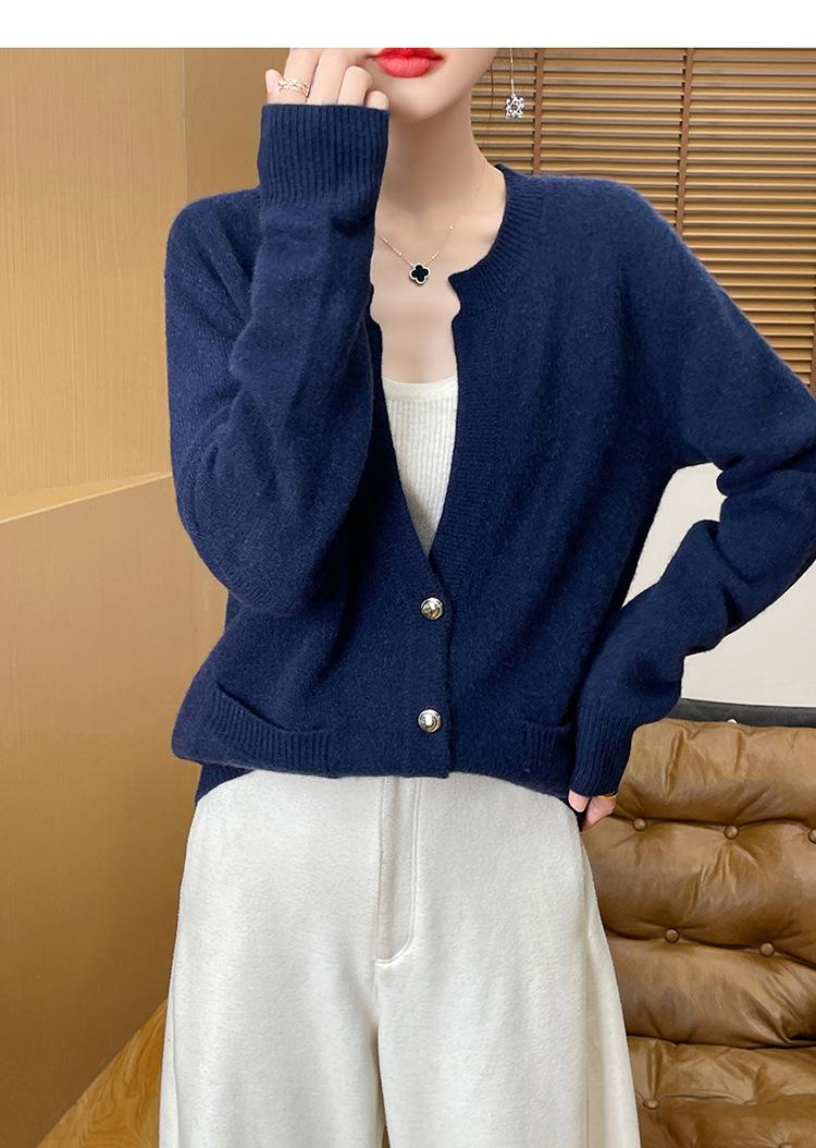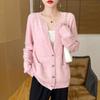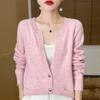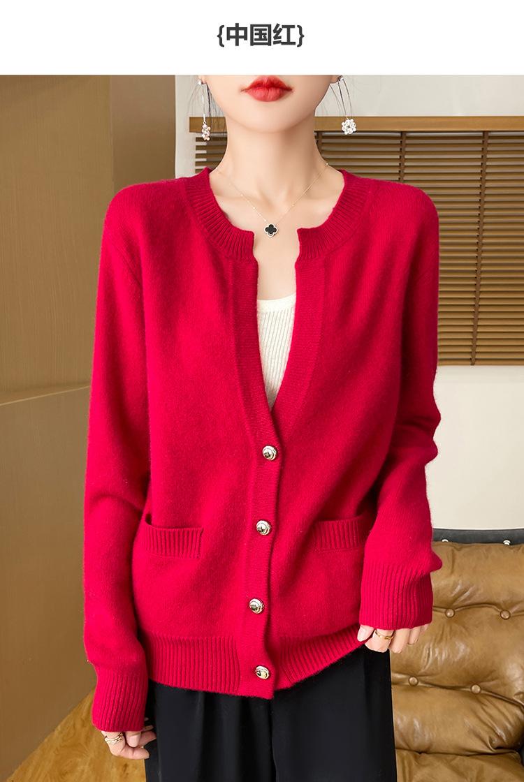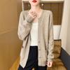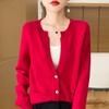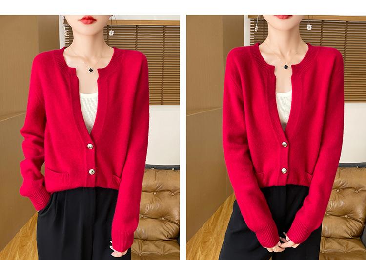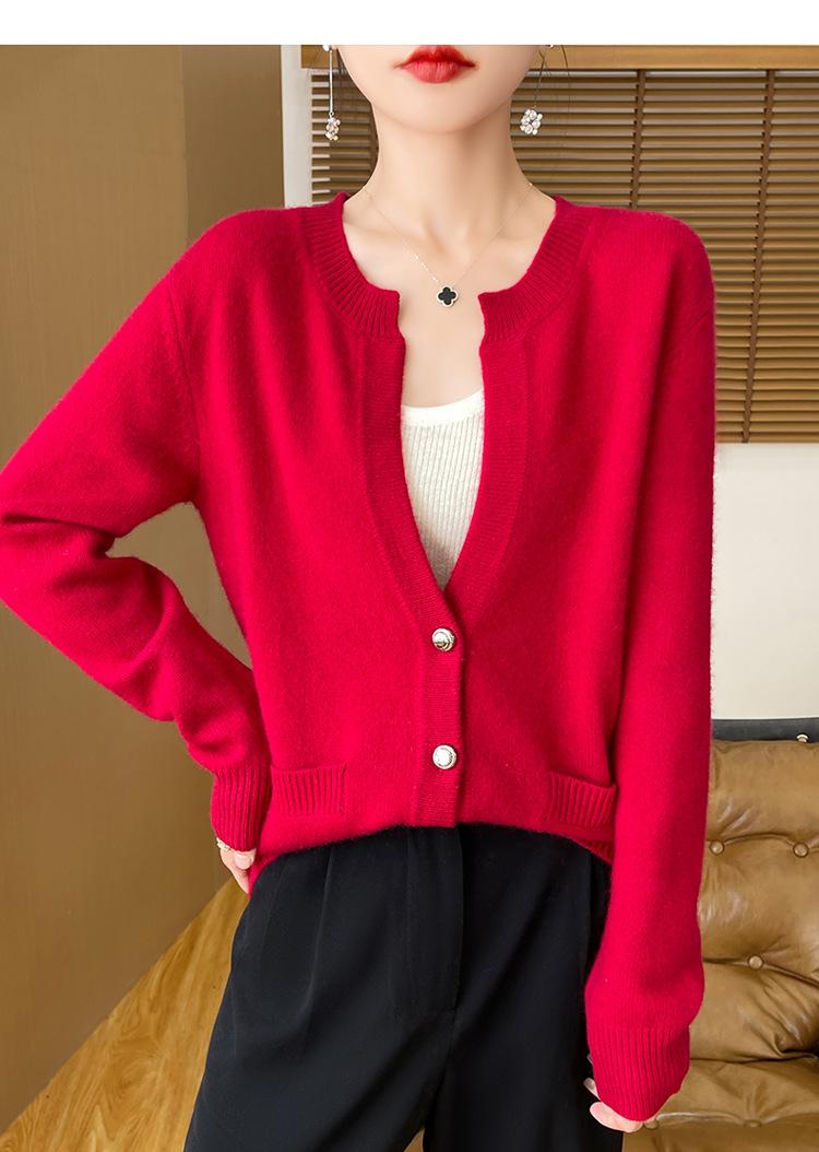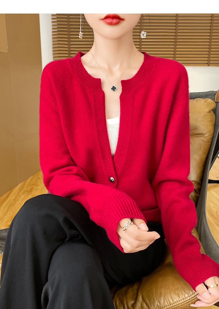 Otoño e Invierno Nuevo Cuello en V Lana Pura Engrosado Abrigo Suelto Suéter Tejido Rojo Elegante Top Cárdigan de Lana Mujer