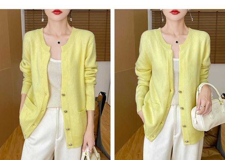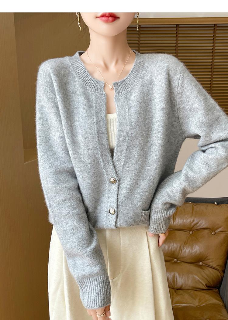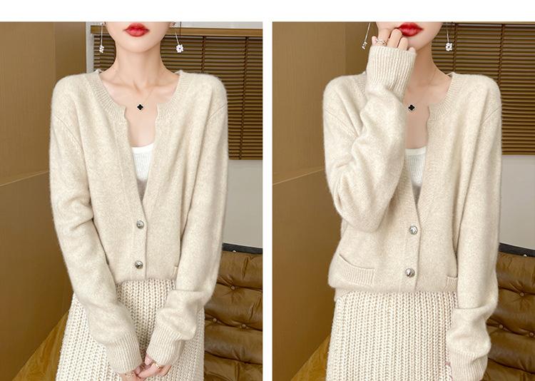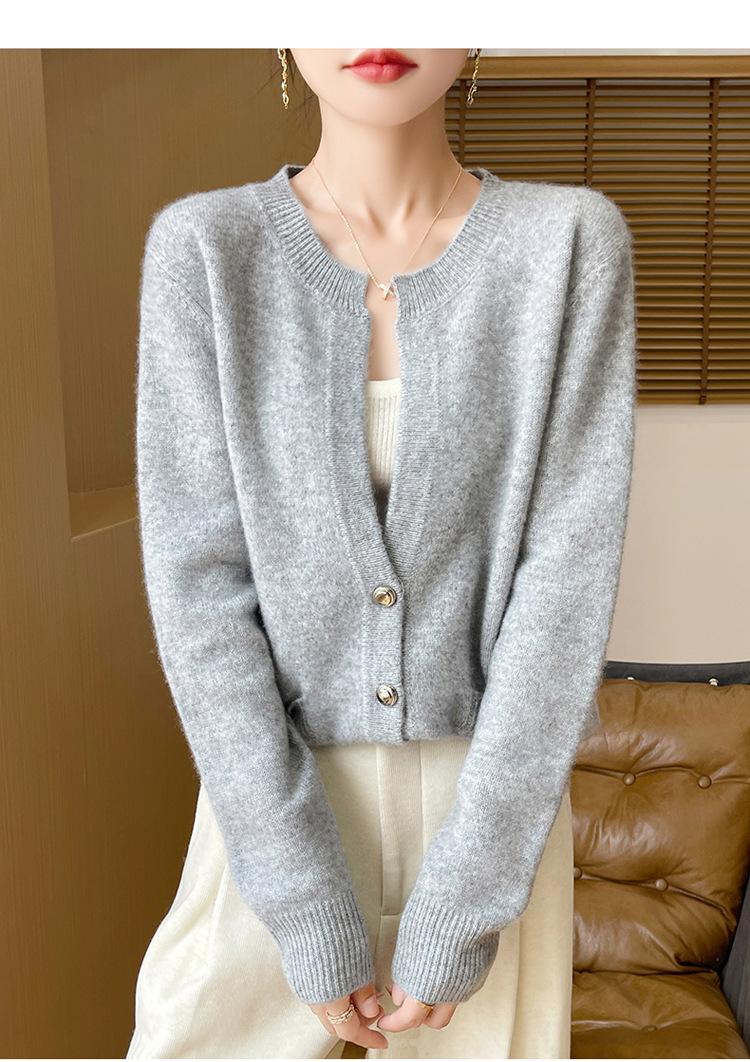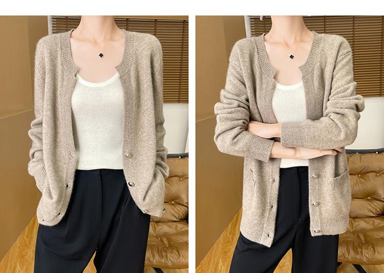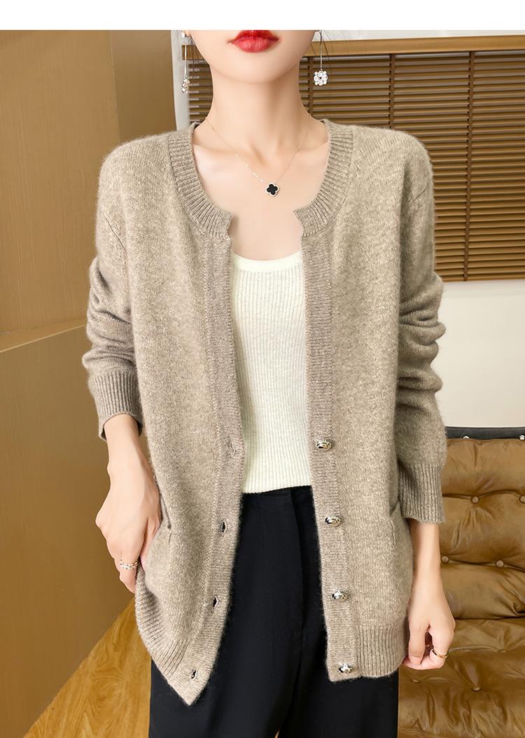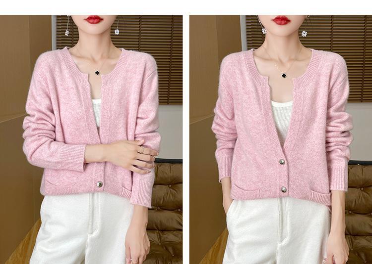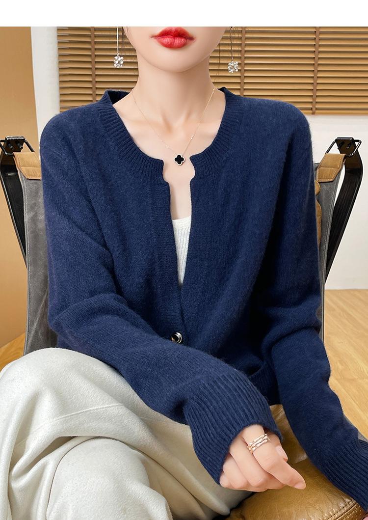 Otoño e Invierno Nuevo Cuello en V Lana Pura Engrosado Abrigo Suelto Suéter Tejido Rojo Elegante Top Cárdigan de Lana Mujer